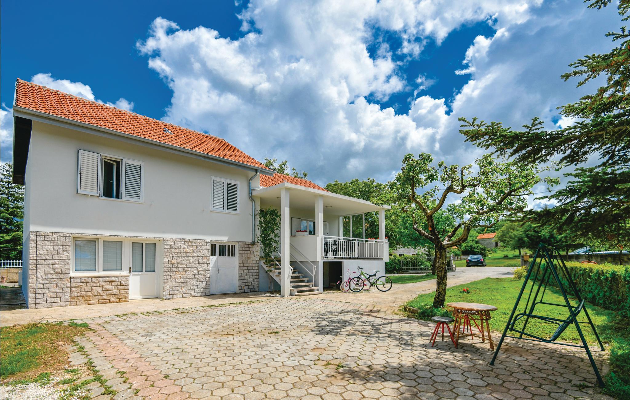 Dieses einfach eingerichtete Ferienhaus mit Pool liegt im idyllischen Landesinneren von Mitteldalmatien, nur wenige Minuten mit dem Auto von Imotski entfernt. Die Unterkunft erstreckt sich auf das Erdgeschoß. Entspannen Sie am Pool, während sich die Kleinsten im Spielbereich unterhalten. Erleben Sie gesellige Stunden bei Grillabenden. Zu den herrlichen Kiesstränden in Makarska, Brela und Baška Voda brauchen Sie etwa eine halbe Stunde Autofahrt. Wenn Sie an Golf interessiert sind, besuchen Sie den schön angelegten Golf Club in Posušje im benachbarten Bosnien und Herzegowina, etwa 3,5km entfernt (www.golfklubposusje.net). Radler werden sich an den zur Verfügung stehenden Fahrrädern erfreuen, mit denen Sie die wunderschöne Natur erkunden können.