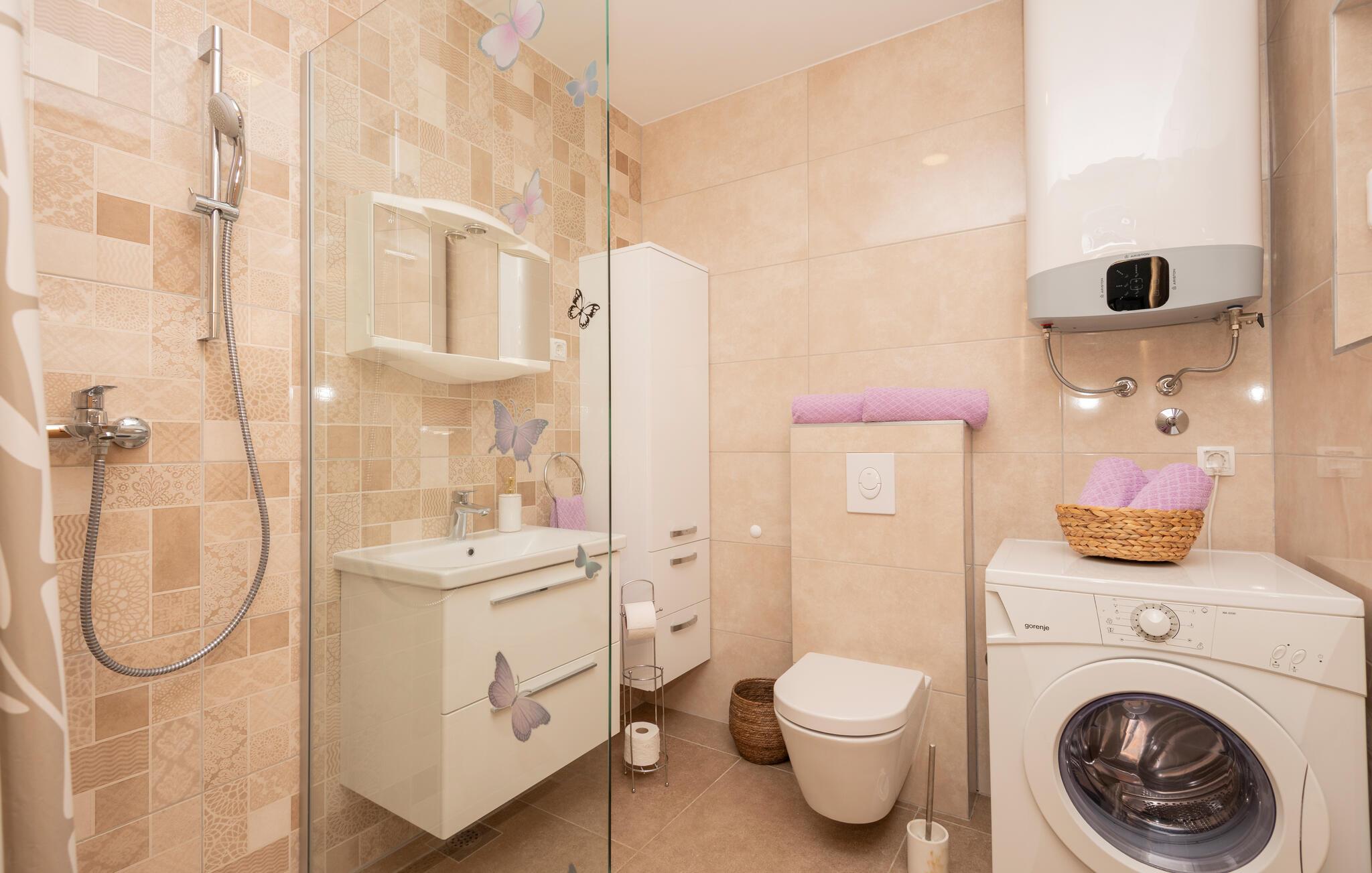 - WC mit warmem und kaltem Wasser, Dusche