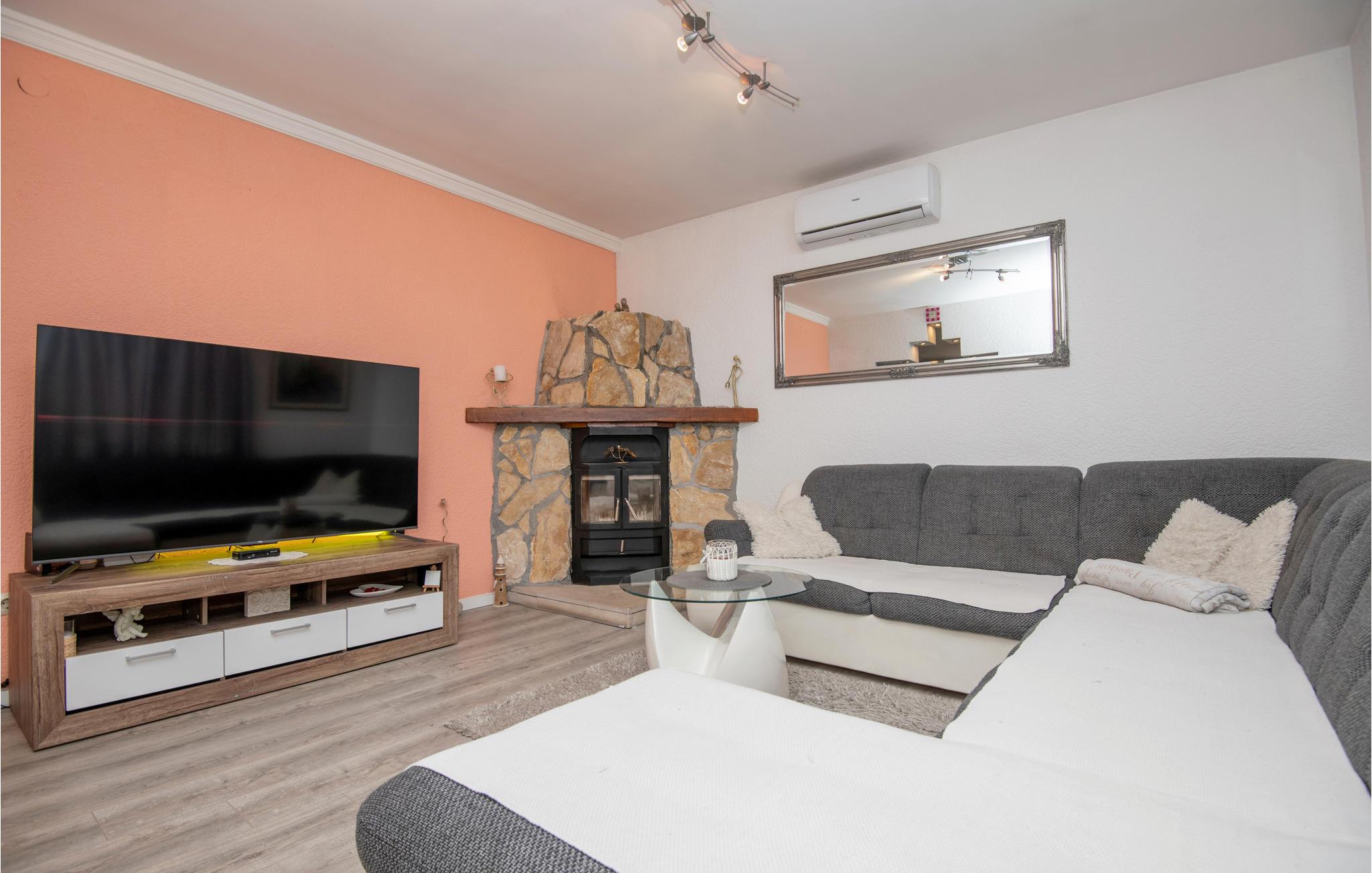 Dieses schön eingerichtete Ferienhaus in Zmijavci, liegt in der Nähe der Stadt Imotski. Im Erdgeschoss des Hauses befinden sich ein Schlafzimmer, ein Wohnraum (der zugleich ein Aktivitätsraum ist,) zwei Badezimmer und die Küche mit Wohnbereich, während sich im Obergeschoss drei Schlafzimmer und ein Badezimmer befinden. Im Dachgeschoss ist noch ein weiteres Schlafzimmer (Dachschräge auf 80 cm). Die Terrasse mit Grill ist ideal für gesellige Stunden. Der Pool sorgt jederzeit für Erfrischung. Schöne Strände finden Sie an der etwa 25 km entfernten Makarska Riviera.