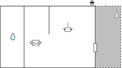 Badezimmer 4m2 (nr. 1) - WC. Warmes und kaltes Wasser. Dusche
