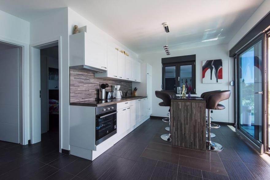 Traumhafte Design Luxus Ferienwohnungen, sowie beste Ausstattungen erwarten Sie. Der Strand befindet sich direkt vor dem Haus. Die Luxuswohnungen Nahe Zadar weisen jeweils eine Wohnfläche von 122 m2