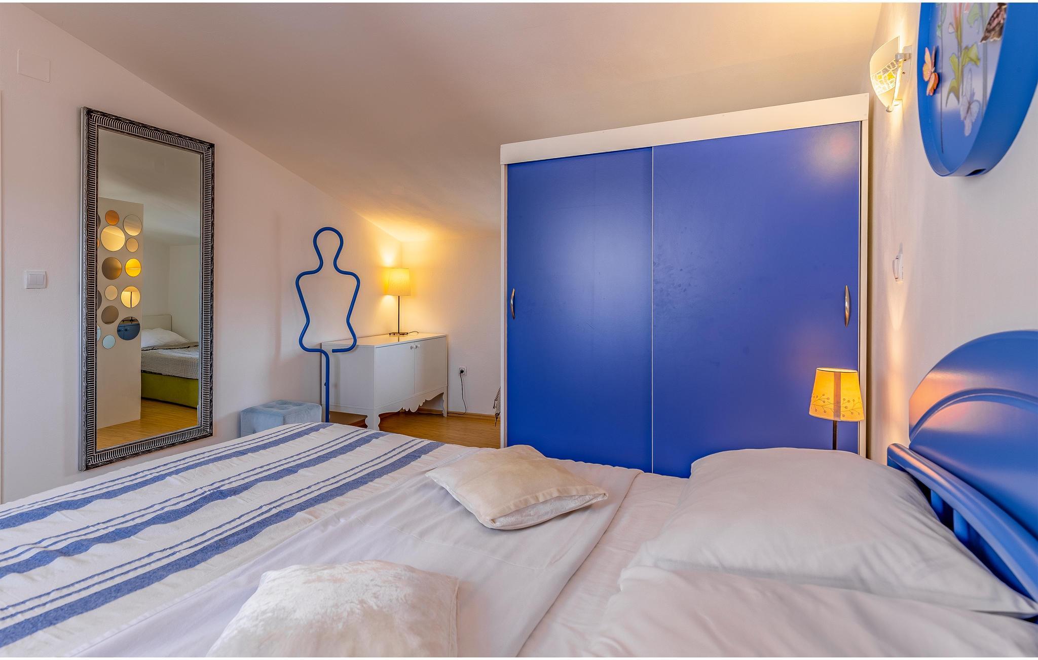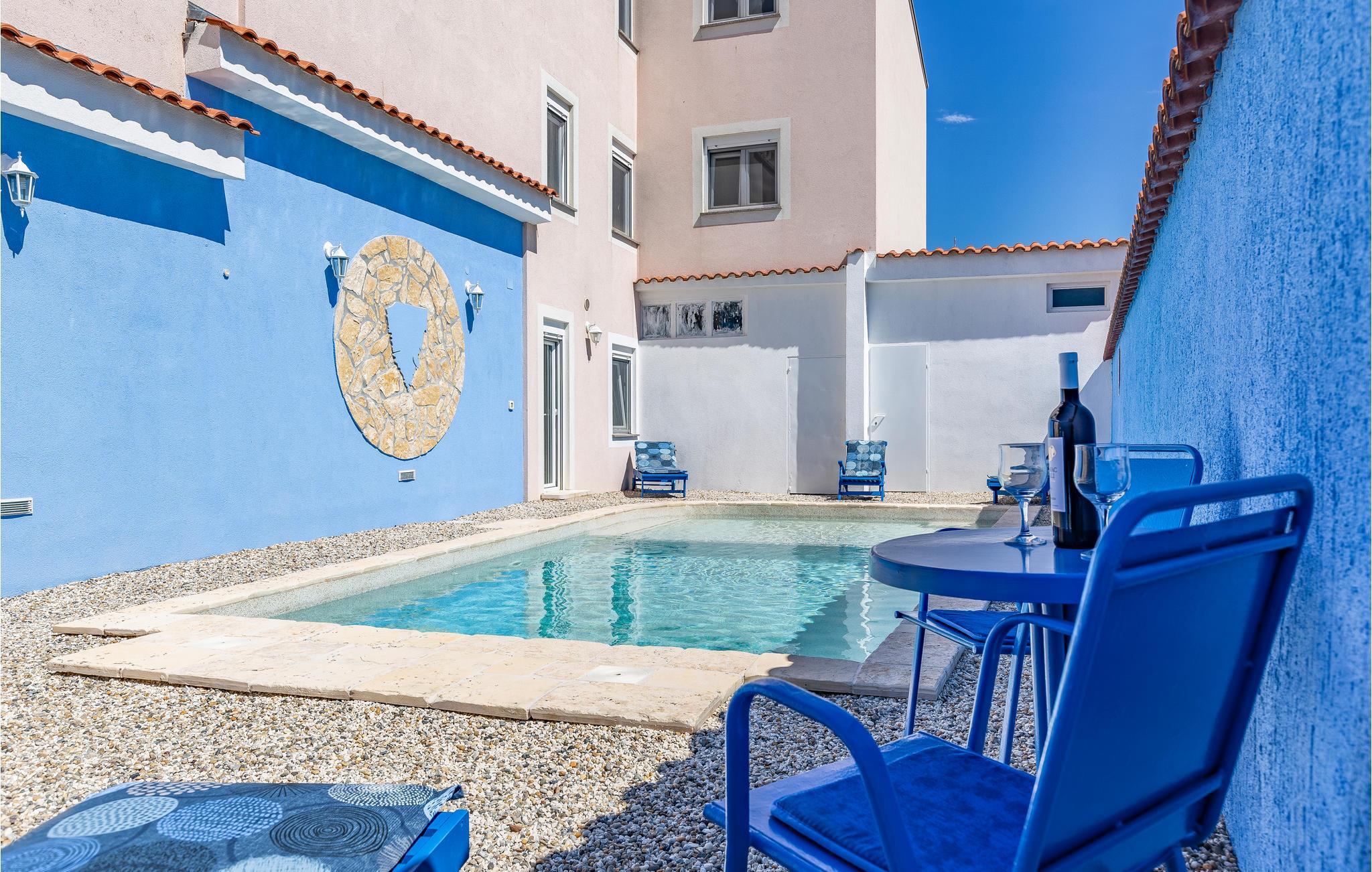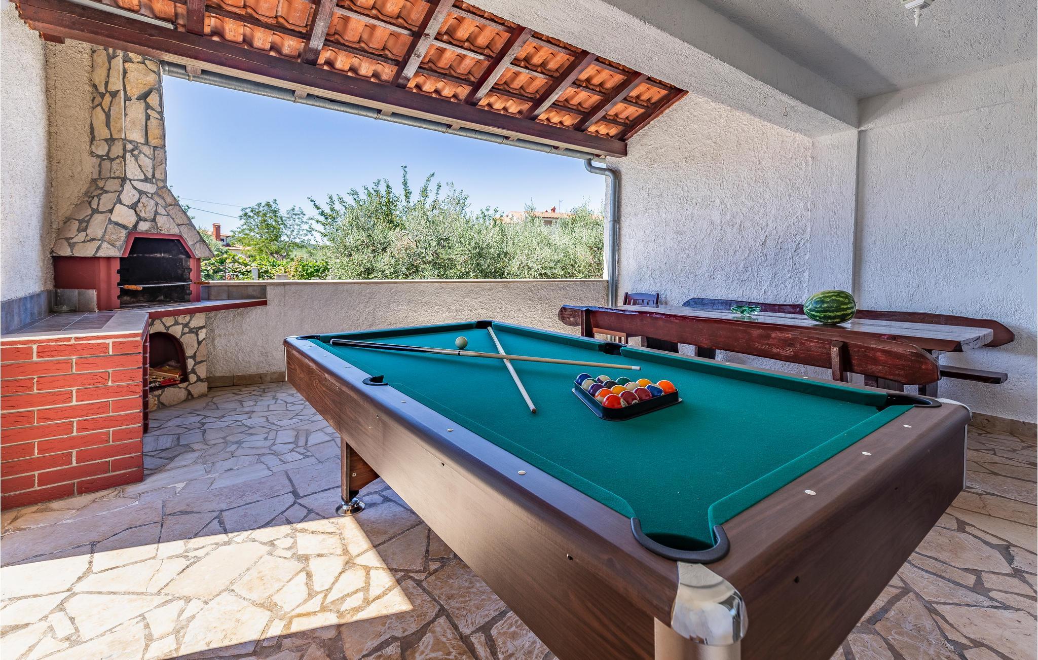 Dieses große Ferienhaus mit Swimmingpool, geeignet für große Gesellschaften oder mehrere Familien, befindet sich in Pomer in der Nähe von Medulin. Es besteht aus drei Etagen die durch Innenreppen miteinander verbunden sind. Jede Etage verfügt über eine voll ausgestattete Küche, Esszimmer und Wohnzimmer mit Ausgang zur Terrasse. Die Gäste können Spaß haben mit Aktivitäten wie Tischfußball oder Billard auf der Terrasse im zweiten Stock mit Blick auf das Meer und die Bucht von Pomer. Besuchen Sie ein lokales Restaurant oder das nahe gelegene Medulin, das viele Freizeitmöglichkeiten bietet. Niedrigste Deckenhöhe im Dachgeschoss 160 cm.