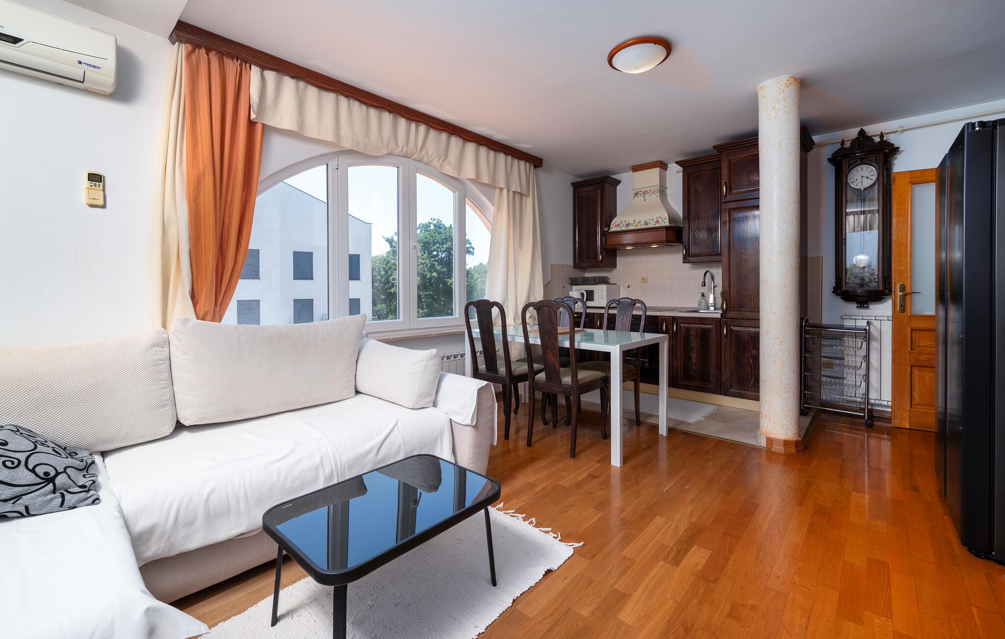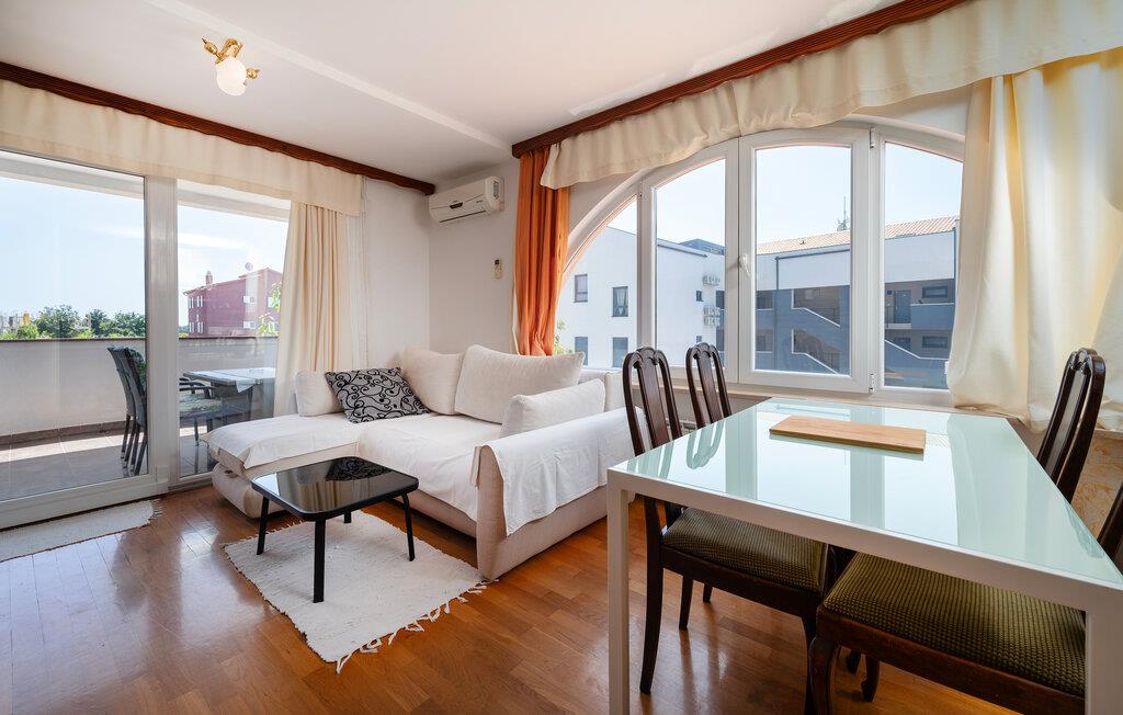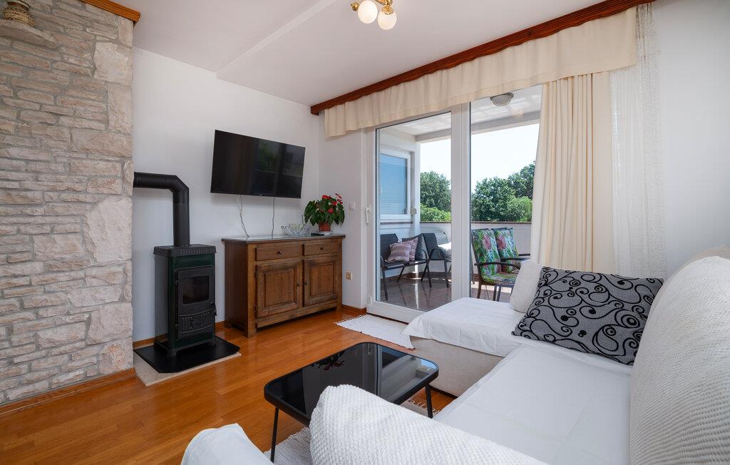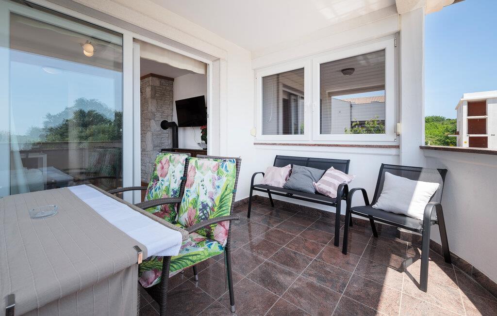 In einem Mehrfamilienhaus im Ort Medulin befinden sich diese komfortablen Ferienwohnungen (CIM287, CIM288, CIM361, CIM402). Treten Sie ein in eine komfortable Unterkunft, in der Sie ein rustikal-uriges Ambiente erwartet, in dem Sie sich direkt wohlfühlen werden. Hier können Sie im behaglichen Wohnraum gemeinsam fernsehen, Ihren Wein genießen, Karten spielen oder spannende Unterhaltungen mit Ihren Lieben führen. Vom Wohnzimmer aus erreichen Sie den großzügigen Balkon mit einem Rundblick über die Landschaft, sowie einem Tisch der Ihnen ausreichend Fläche bietet, um Ihr Frühstück oder anderweitige Mahlzeiten im Freien zu genießen.
