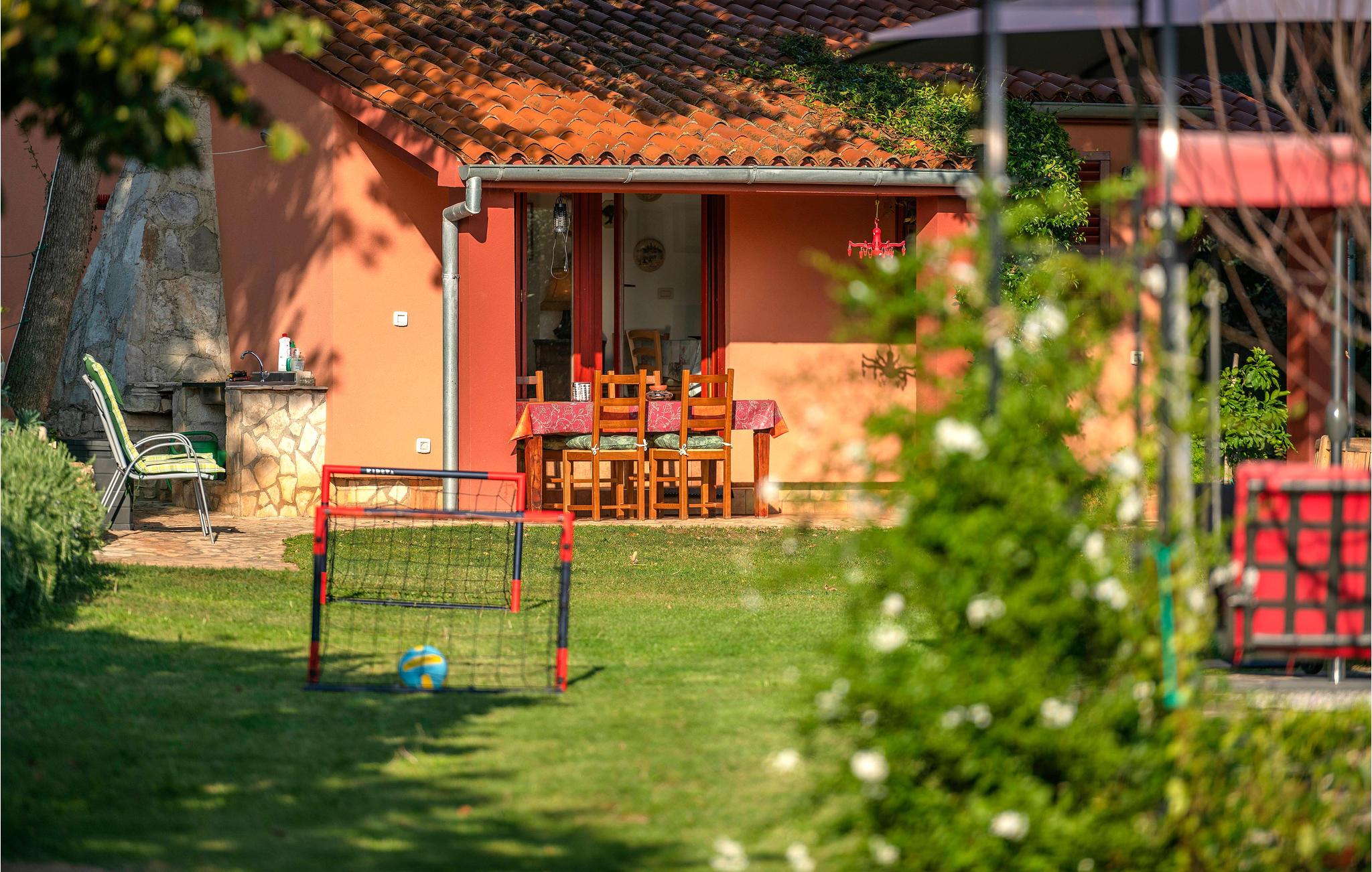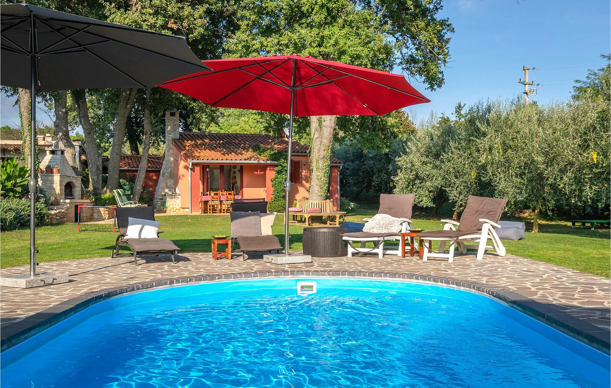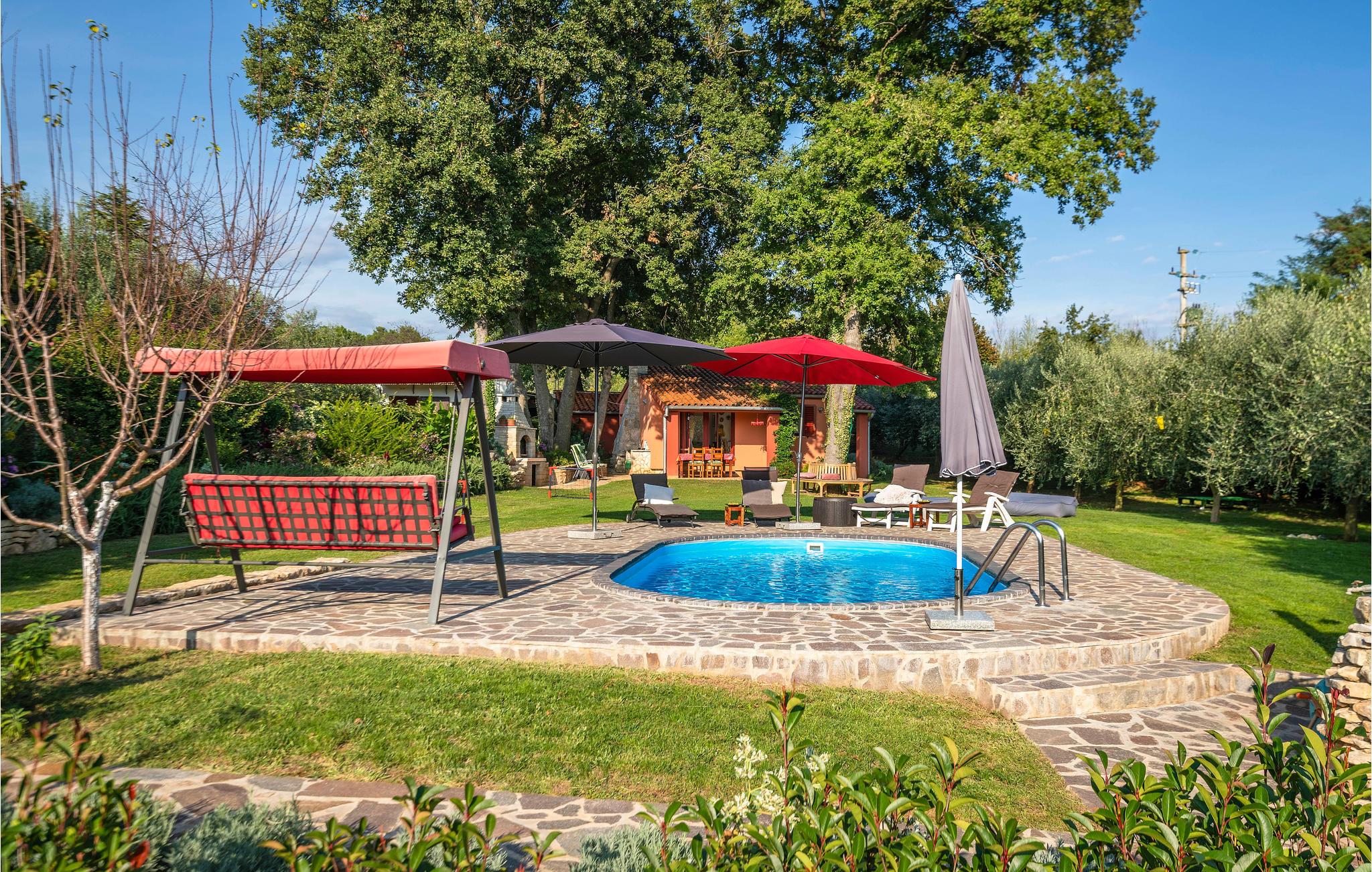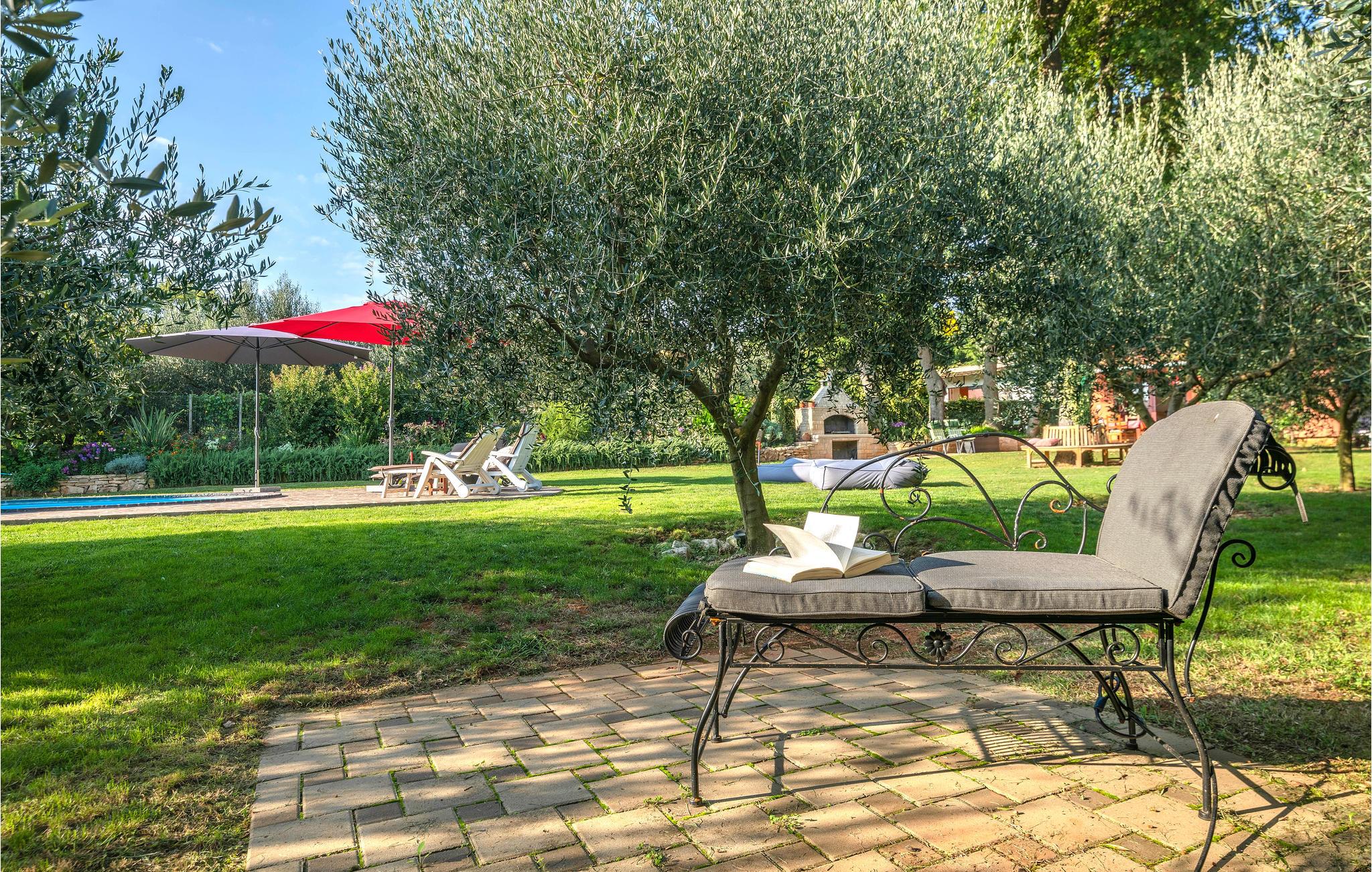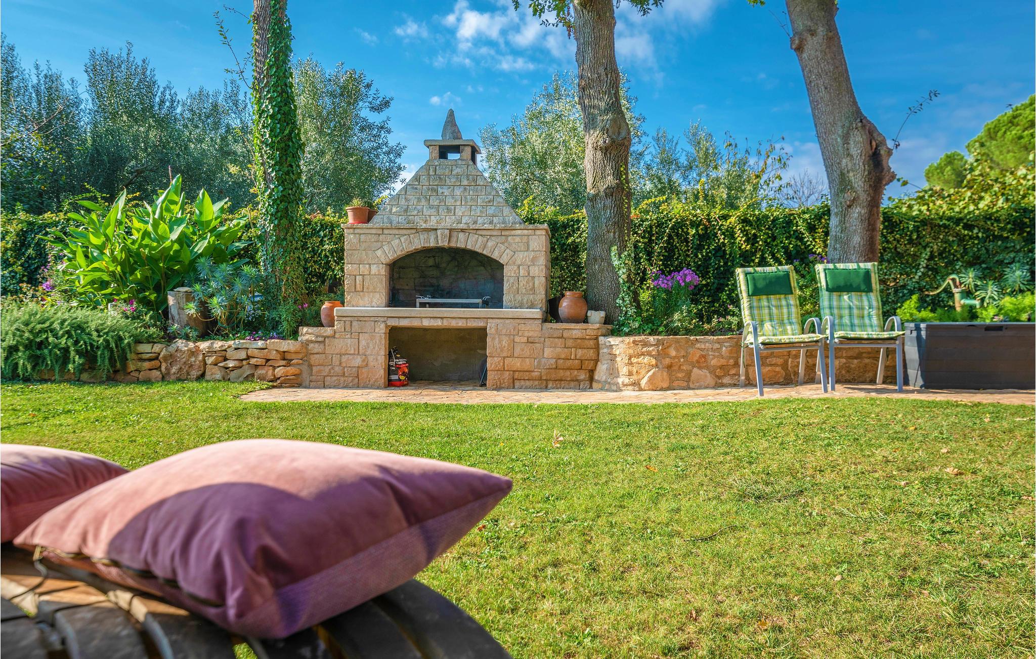 Dieses kleine und sympathische Ferienhaus liegt abseits vom Trubel und dennoch ist es nur wenige Autominuten vom beliebten Touristenort Medulin mit seiner romantischen Uferpromenade und dem Sandstrand entfernt. Genießen Sie die ruhige Lage im umzäunten, grünen Garten mit Olivenbäumen und den schattenspendenden alten Eichen. Neben den einfach eingerichteten Innenräumen steht Ihnen auch eine überdachte Terrasse für erholsame Stunden im Freien zur Verfügung. Besichtigen Sie die antiken Sehenswürdigkeiten der Stadt Pula, wie das bekannte Amphitheater und kosten die traditionellen Spezialitäten in einem der vielen Restaurants.