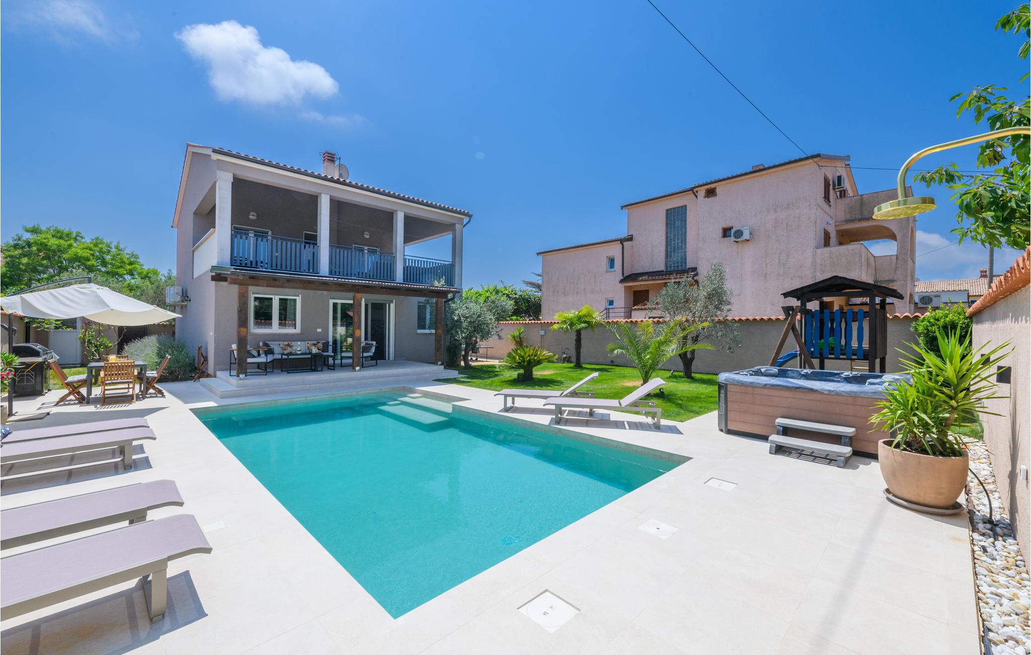 Das attraktive Ferienhaus liegt in der Touristenstadt Medulin und bietet Ihnen alles, was den Urlaub mit Familie und Freunden erholsam und gemütlich macht. Behaglicher Wohnkomfort, Whirlpool zum Wohlfühlen und Entspannen, die Nähe zum Meer und zu Freizeitangeboten sind nur einige Vorzüge dieses traumhaften Domizils. Von vier Schlafzimmern haben drei eine Klimaanlage, jedes Zimmer ist mit Fernseher ausgestattet und auf dem umzäunten Grundstück erwarten verschiedene Kinderspielgeräte die jüngeren Gäste. Hier können Sie Ihr Auto beruhigt geparkt lassen, da ausgezeichnete Restaurants und Badestrände in Reichweite sind. Empfehlenswert ist ein Besuch des Amphitheaters in der Stadt Pula, in dem viele Sommerkonzerte stattfinden.