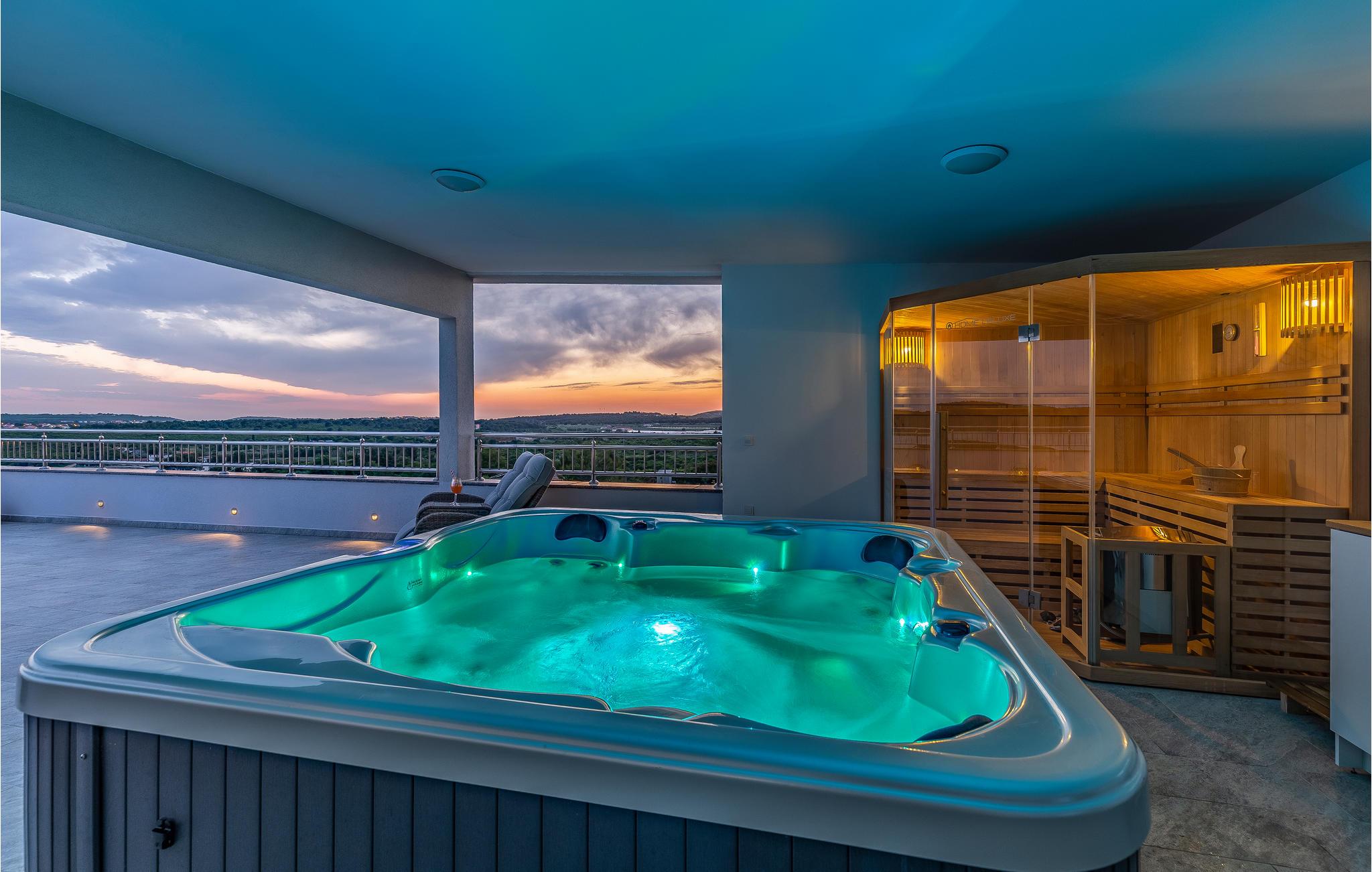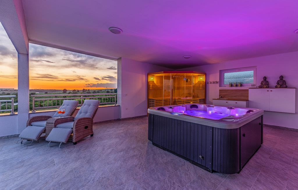 Dieses komfortable Ferienhaus ist ideal für einen Familienurlaub mit Sonne, Strand und Meer. Dank Whirlpool, Sauna und dem großen Pool lässt es sich in diesem Haus wunderbar entspannen und den Alltag vergessen. Auf mehreren Etagen erwartet Sie im Inneren des Hauses eine komfortable und stilvolle Einrichtung.