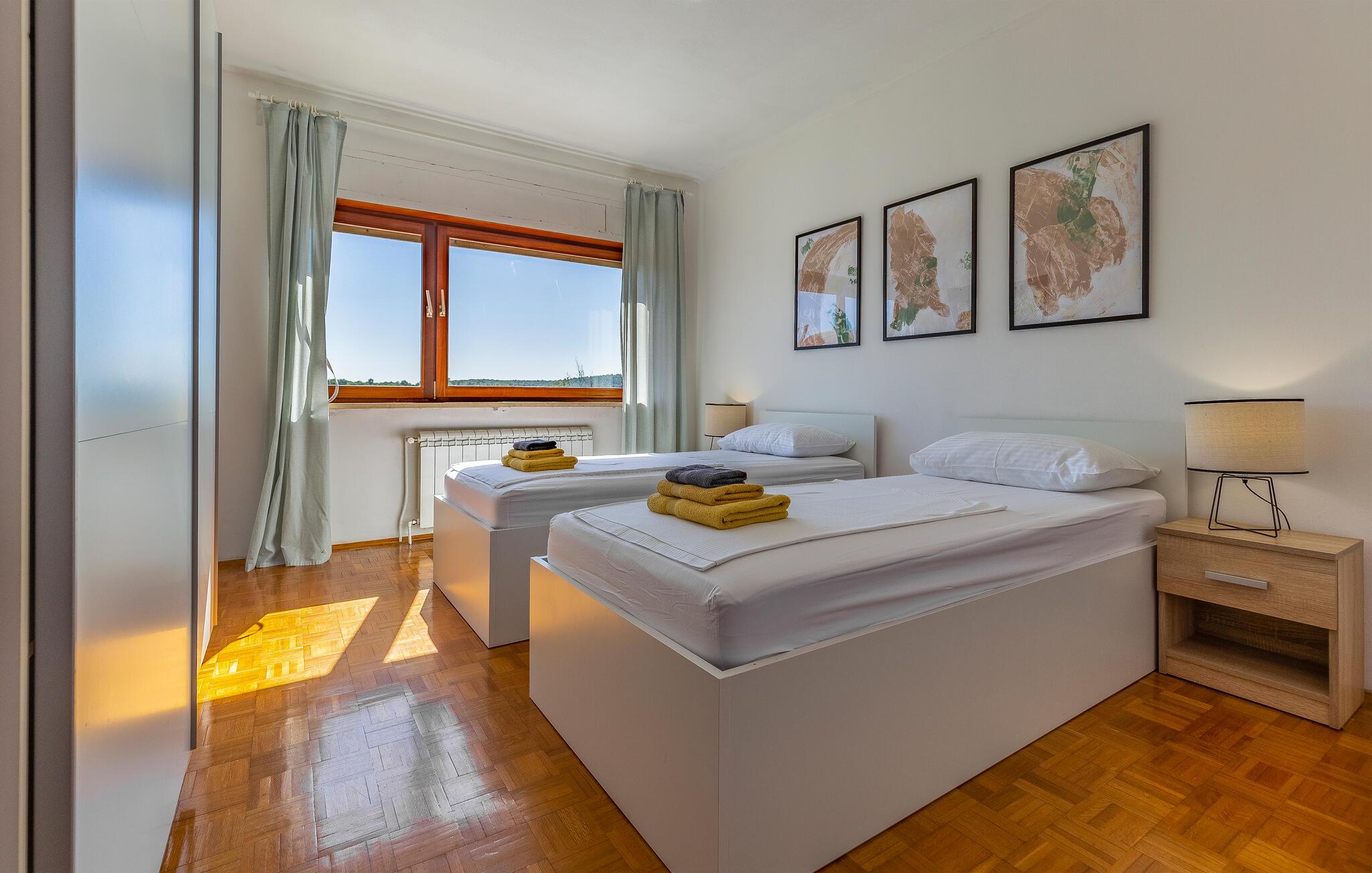 Das Haus besteht aus zwei intern verbundene Apartments und ist damit ideal für einen Urlaub mit mehreren Familien oder einer größeren Gruppe von Freunden geeignet. Es verfügt über 5 Schlafzimmer, 3 Badezimmer, 2 Toiletten, 2 geräumige Wohnzimmer und zwei Küchen. Dank Klimaanlage genießen Sie hier auch an warmen Tagen angenehme Temperaturen.