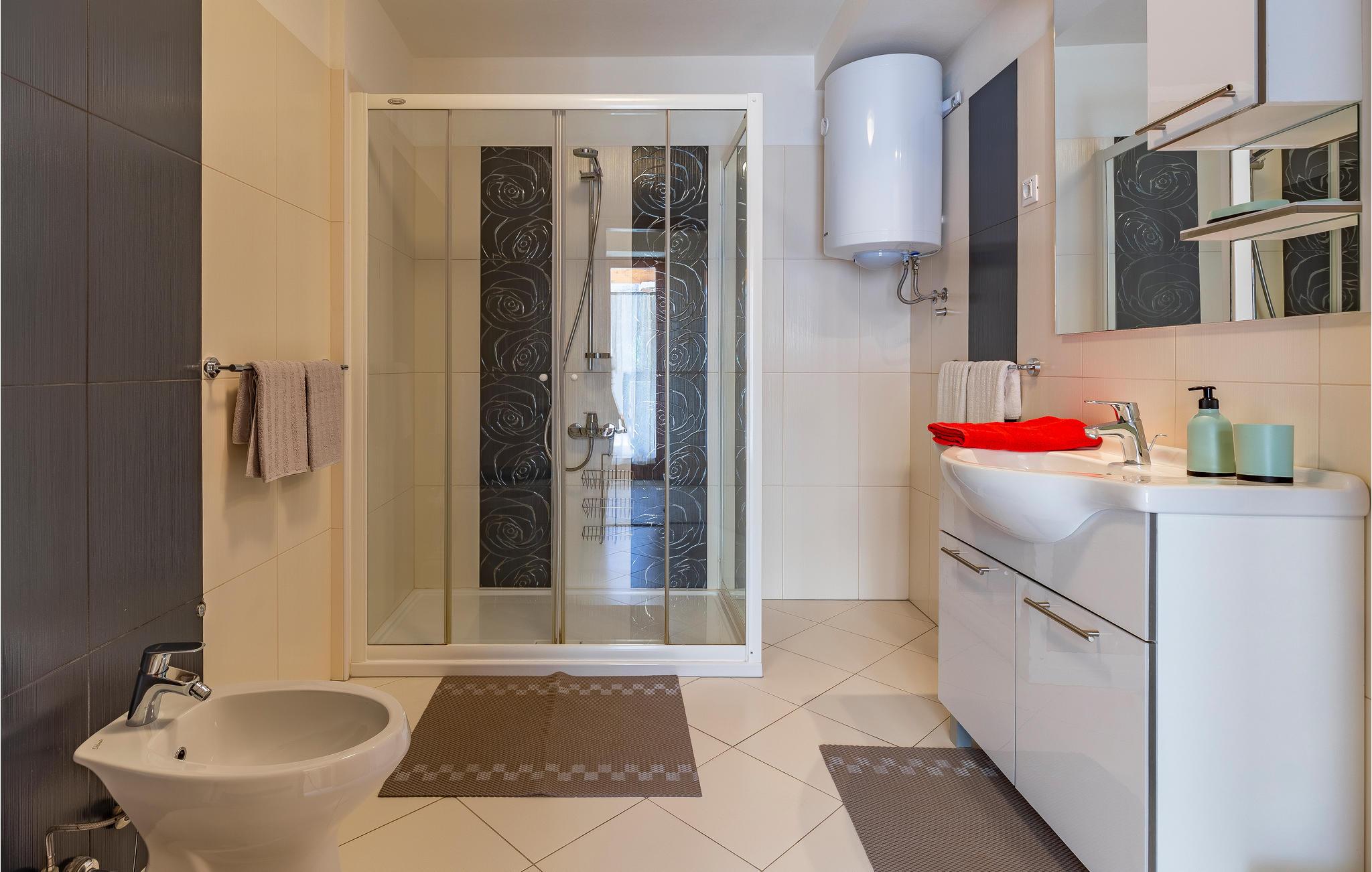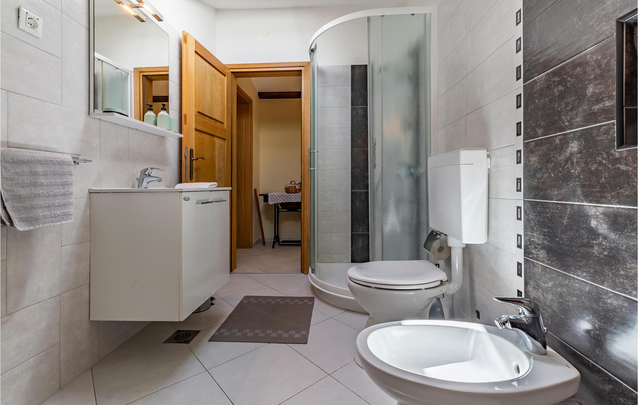 - WC mit warmem und kaltem Wasser, Dusche