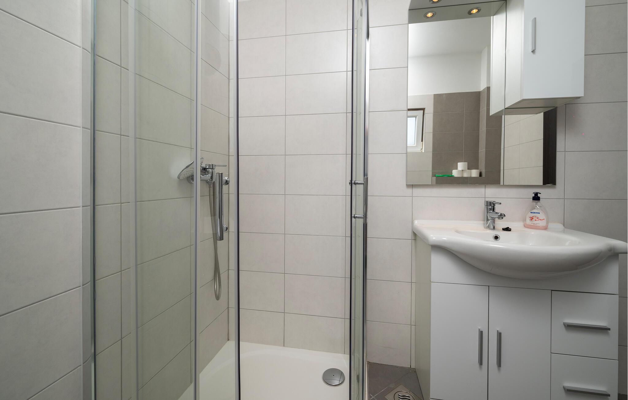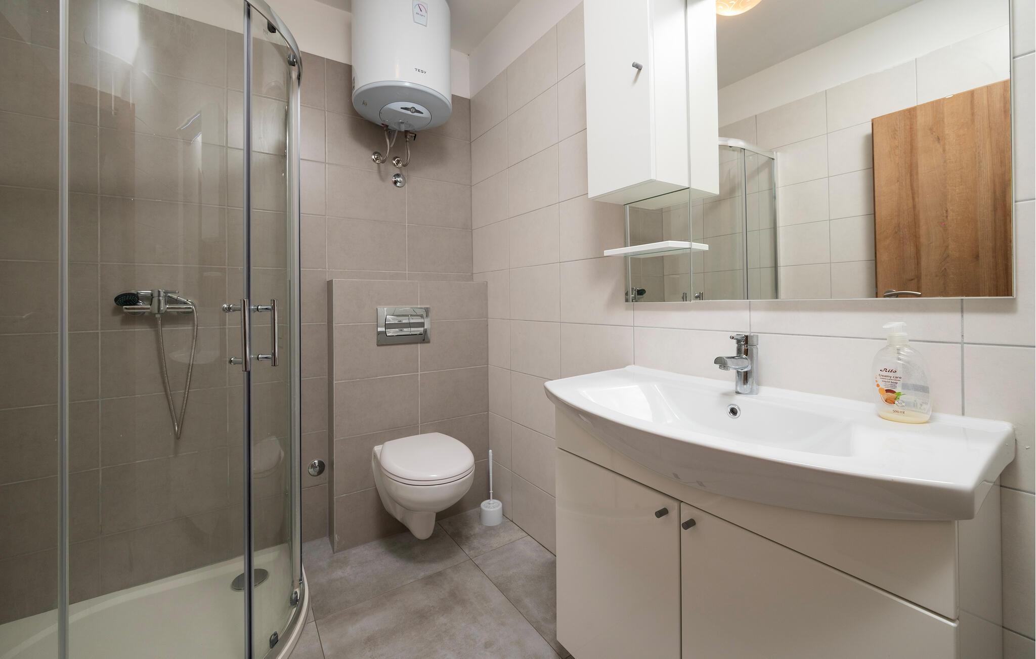 - WC mit warmem und kaltem Wasser, Dusche