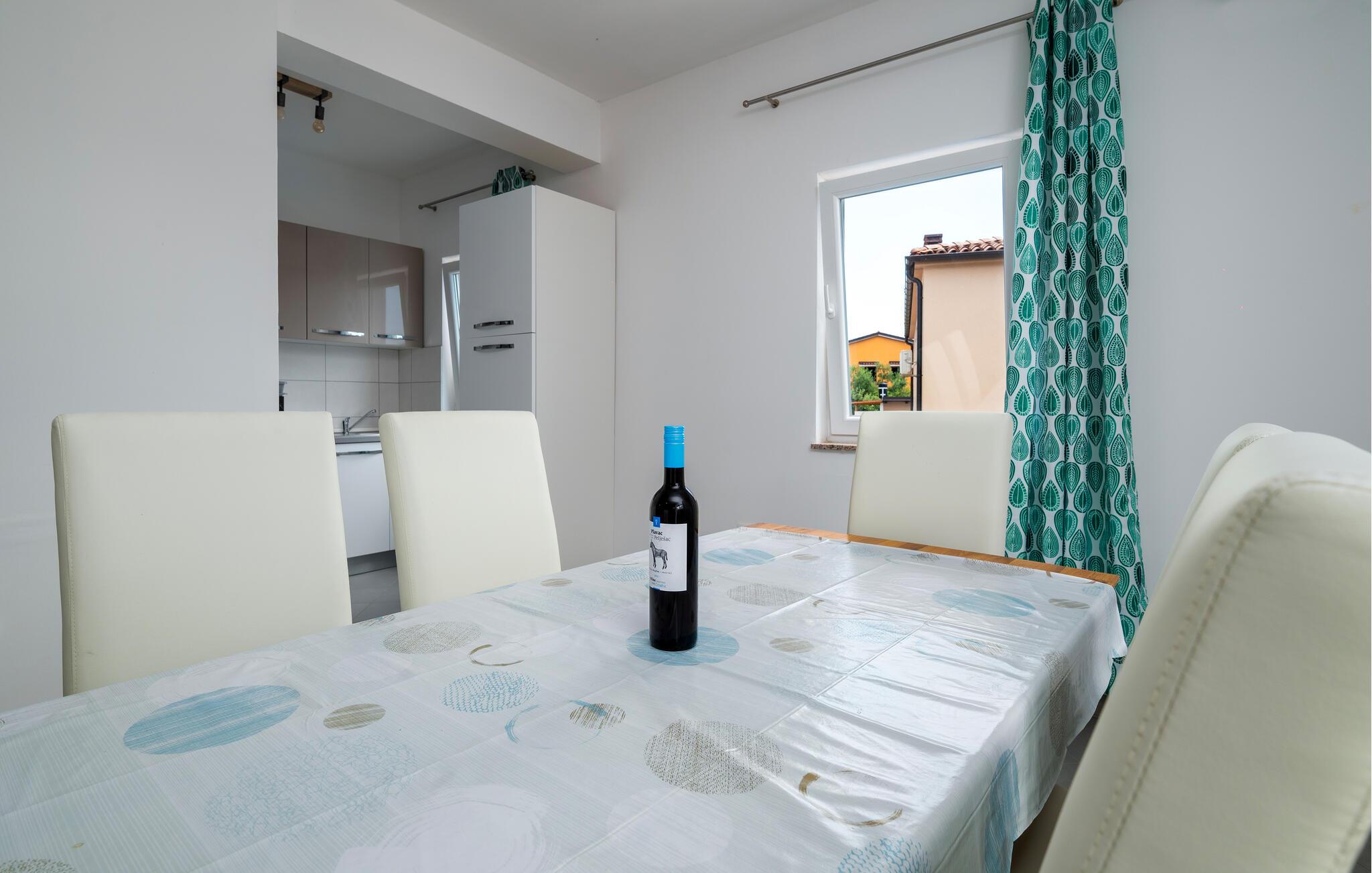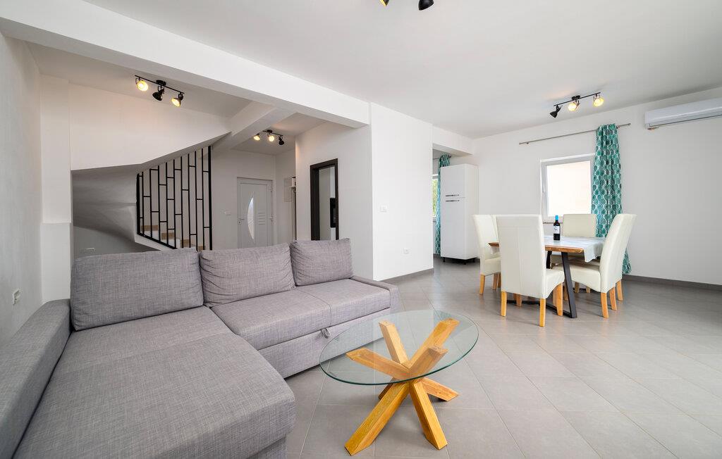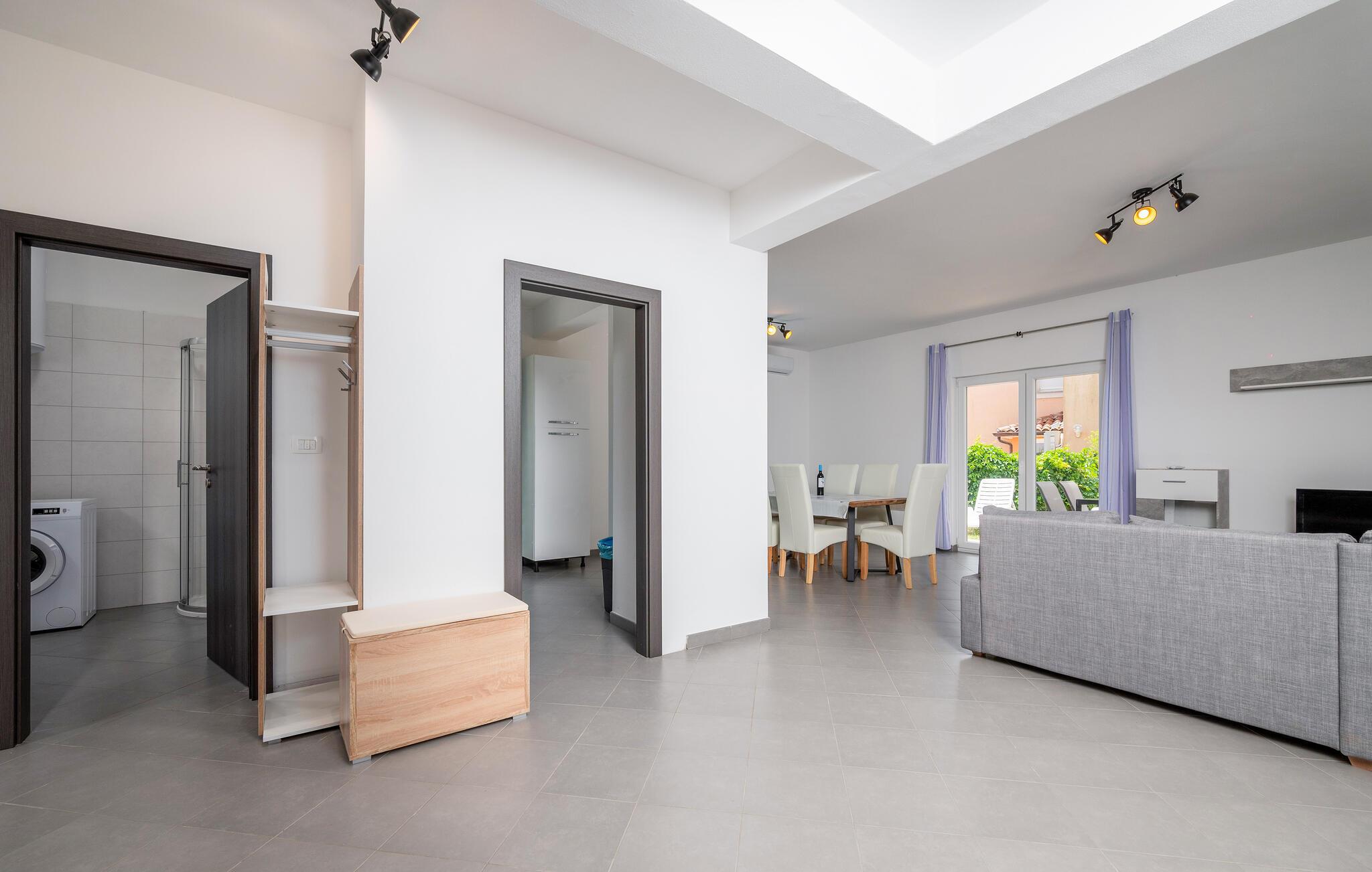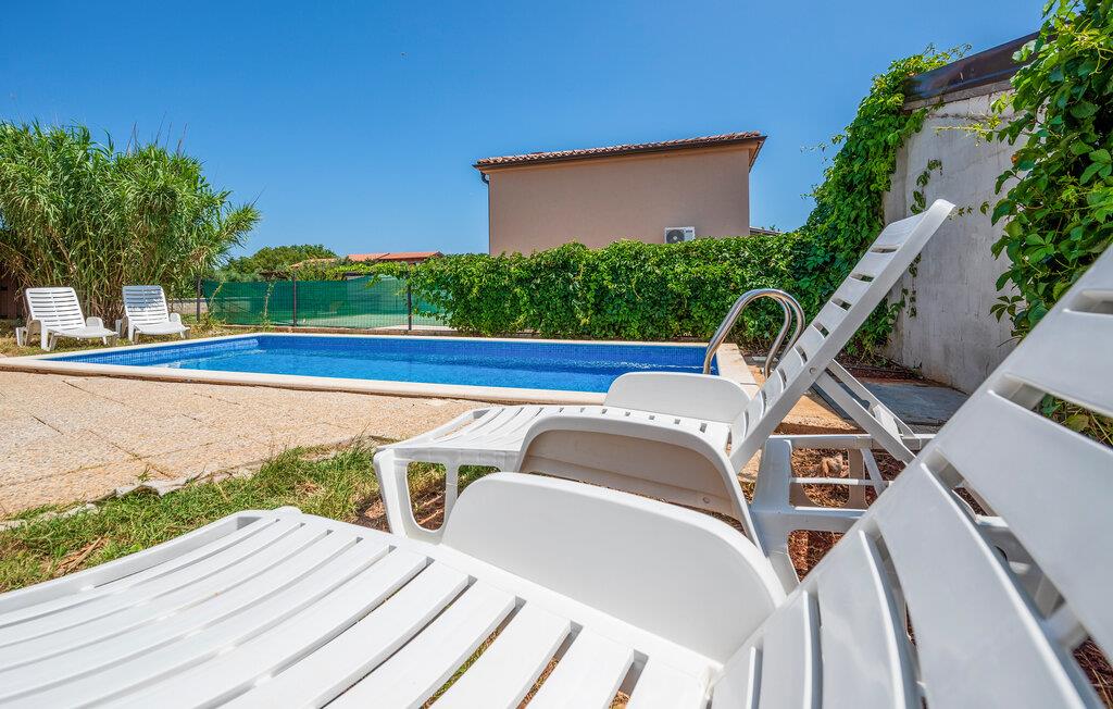 Ihr modernes Ferienhaus befindet sich in einer ruhigen Lage und bietet Ihnen den idealen Ausgangspunkt, um sowohl die historische Stadt Pula als auch die charmante Küstenstadt Medulin zu erkunden. Starten Sie Ihren Tag mit einem Sprung in den privaten Pool, der von bequemen Liegestühlen umgeben ist. Genießen Sie die Sonne, während Sie auf der Terrasse entspannen oder ein köstliches Frühstück im Freien einnehmen. Bereiten Sie Ihre Mahlzeiten in der praktisch eingerichteten Küche zu. Das großzügige Wohnzimmer bietet Ihnen viel Platz zum Entspannen. Lehnen Sie sich auf dem gemütlichen Sofa zurück und genießen Sie die Ruhe oder schauen Sie einen Film in dieser einladenden Atmosphäre.