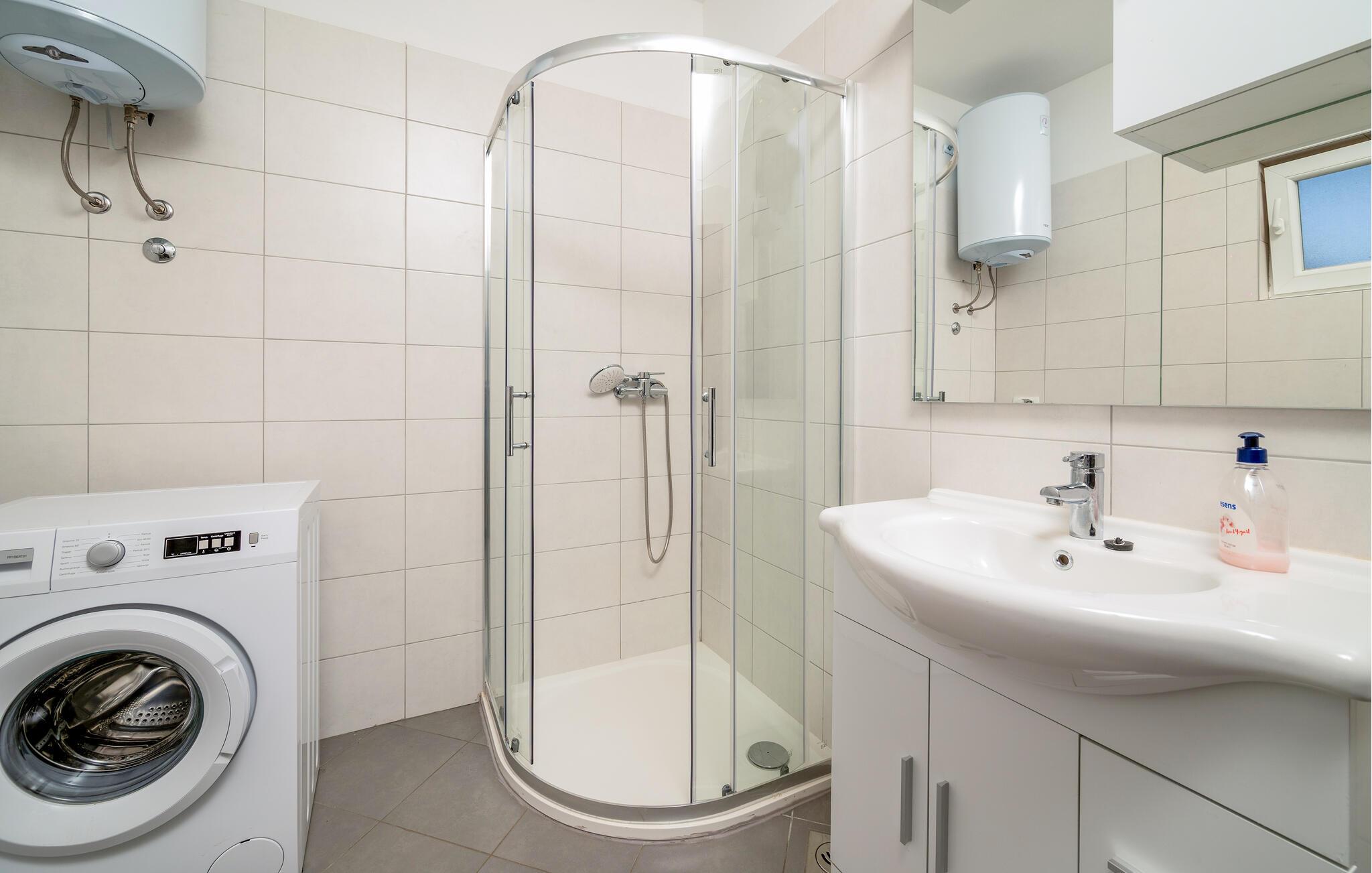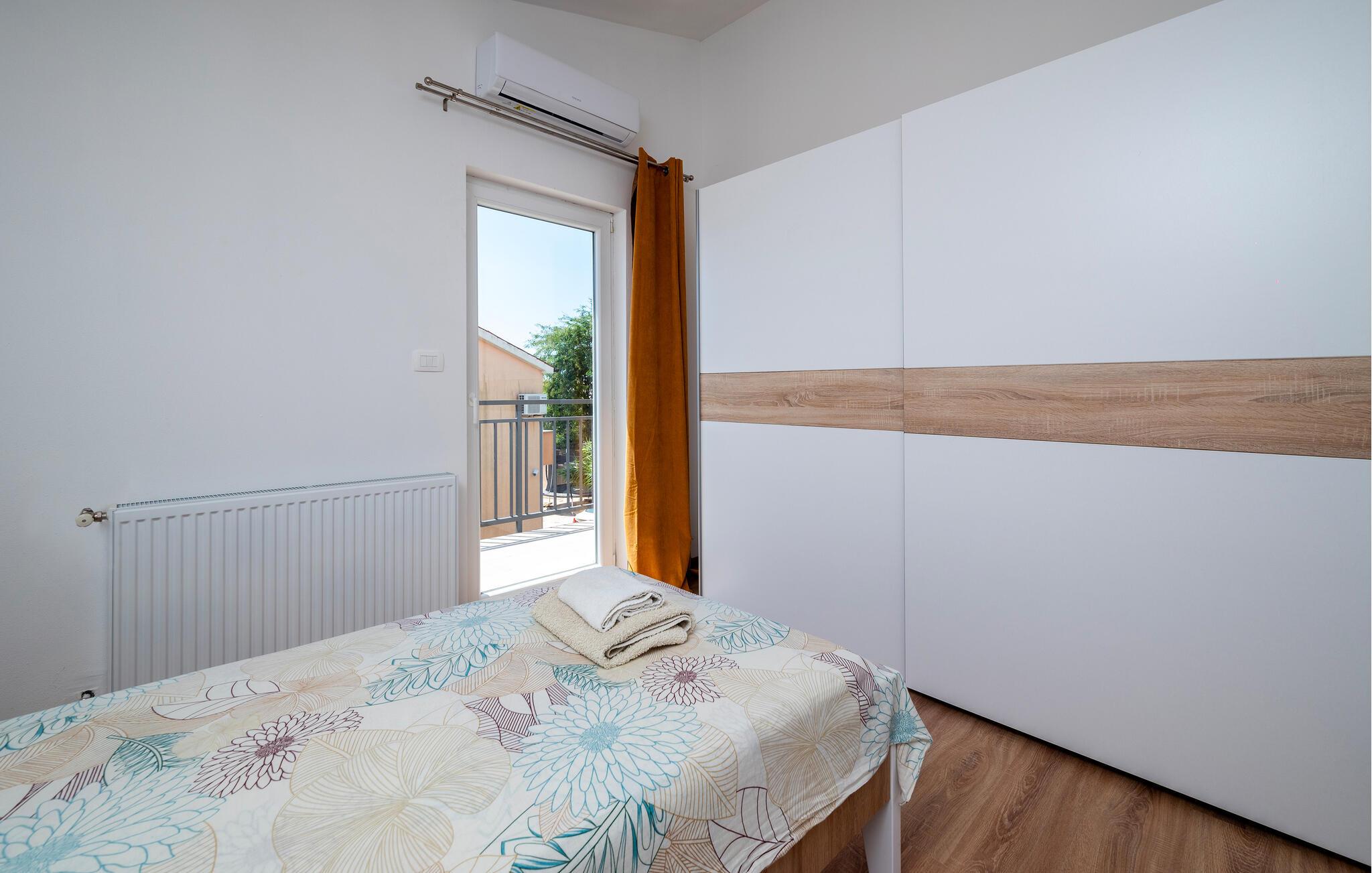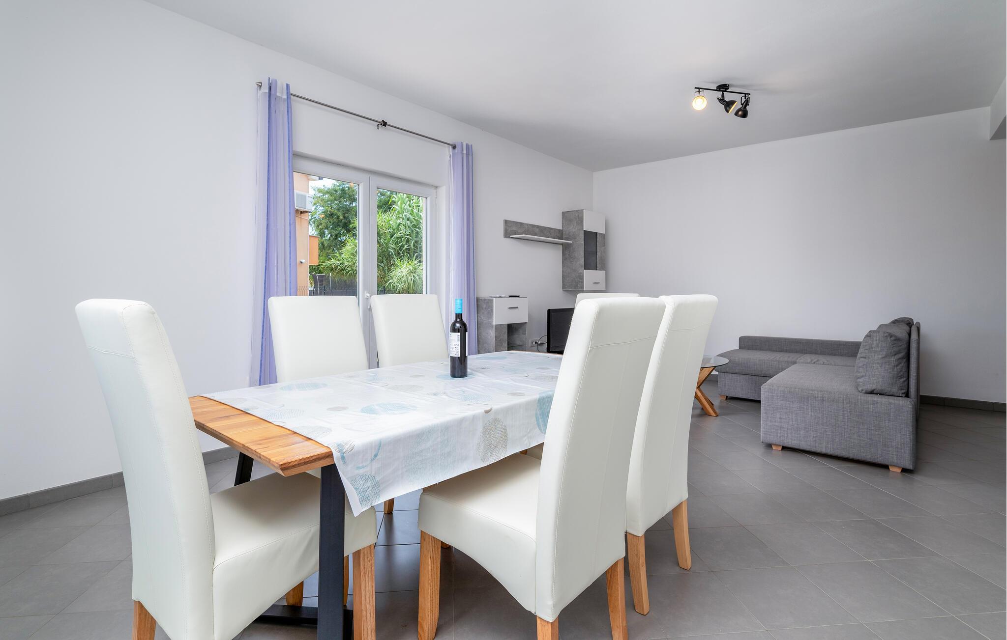Ihr modernes Ferienhaus befindet sich in einer ruhigen Lage und bietet Ihnen den idealen Ausgangspunkt, um sowohl die historische Stadt Pula als auch die charmante Küstenstadt Medulin zu erkunden. Starten Sie Ihren Tag mit einem Sprung in den privaten Pool, der von bequemen Liegestühlen umgeben ist. Genießen Sie die Sonne, während Sie auf der Terrasse entspannen oder ein köstliches Frühstück im Freien einnehmen. Bereiten Sie Ihre Mahlzeiten in der praktisch eingerichteten Küche zu. Das großzügige Wohnzimmer bietet Ihnen viel Platz zum Entspannen. Lehnen Sie sich auf dem gemütlichen Sofa zurück und genießen Sie die Ruhe oder schauen Sie einen Film in dieser einladenden Atmosphäre.