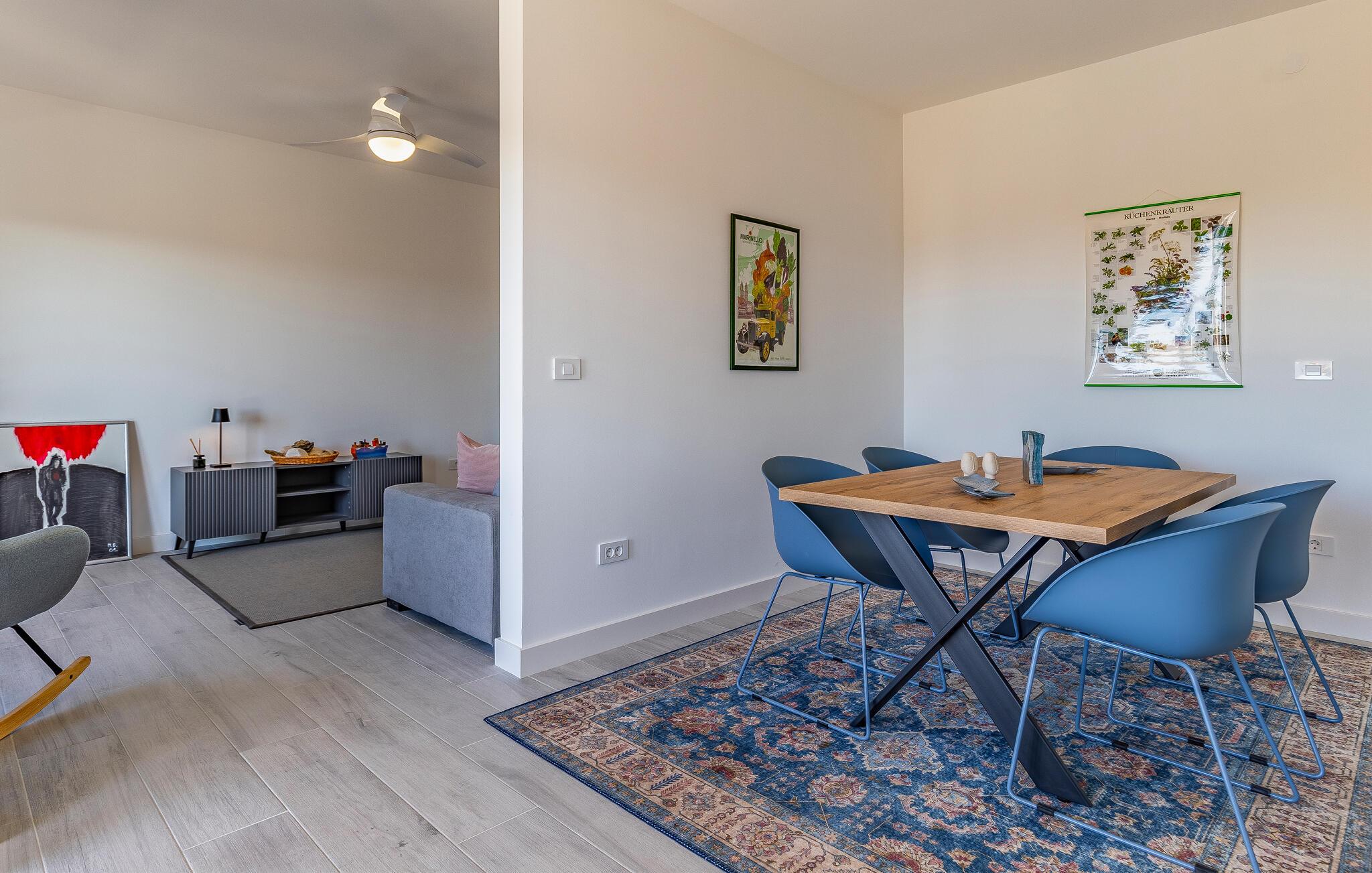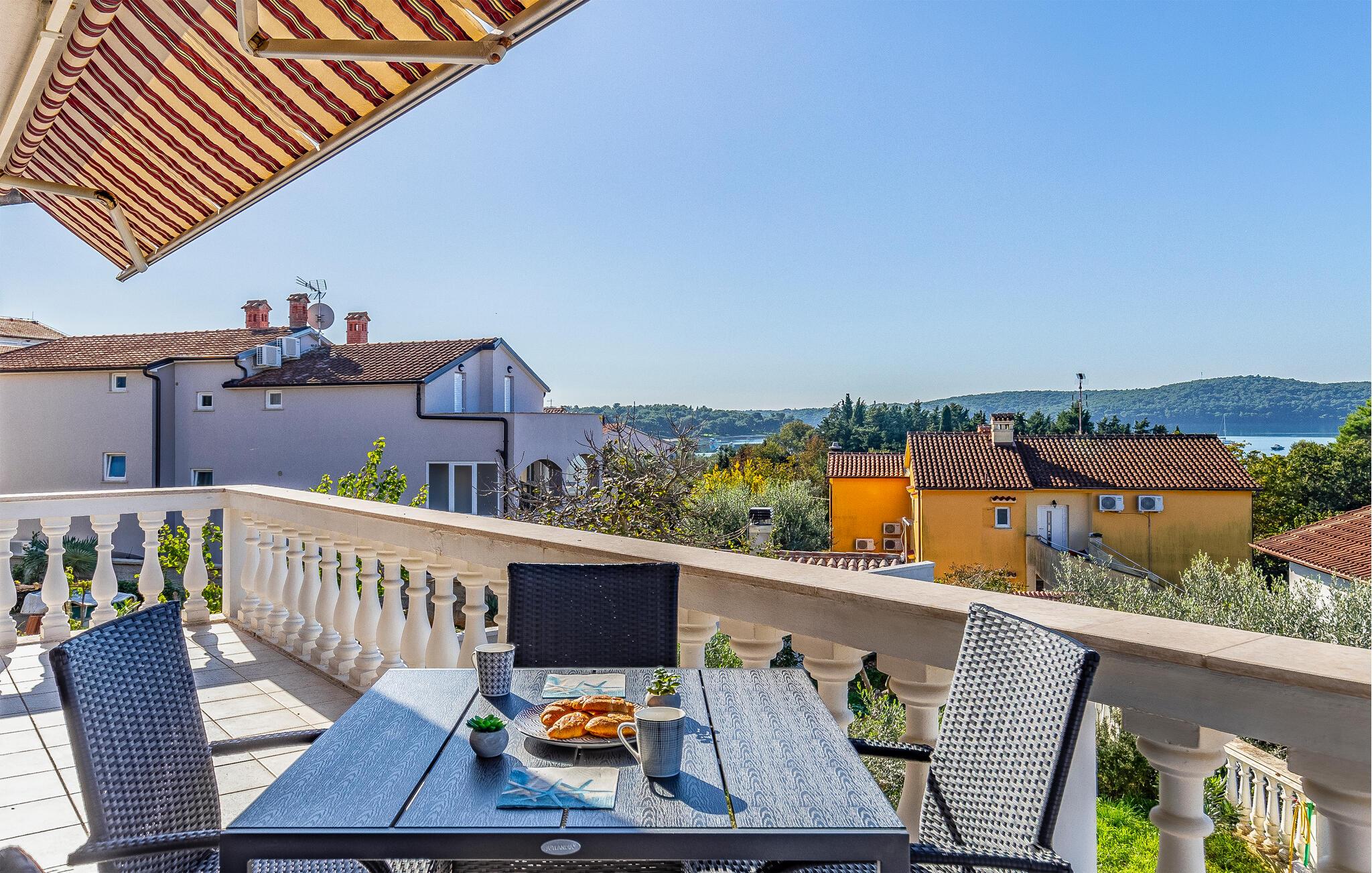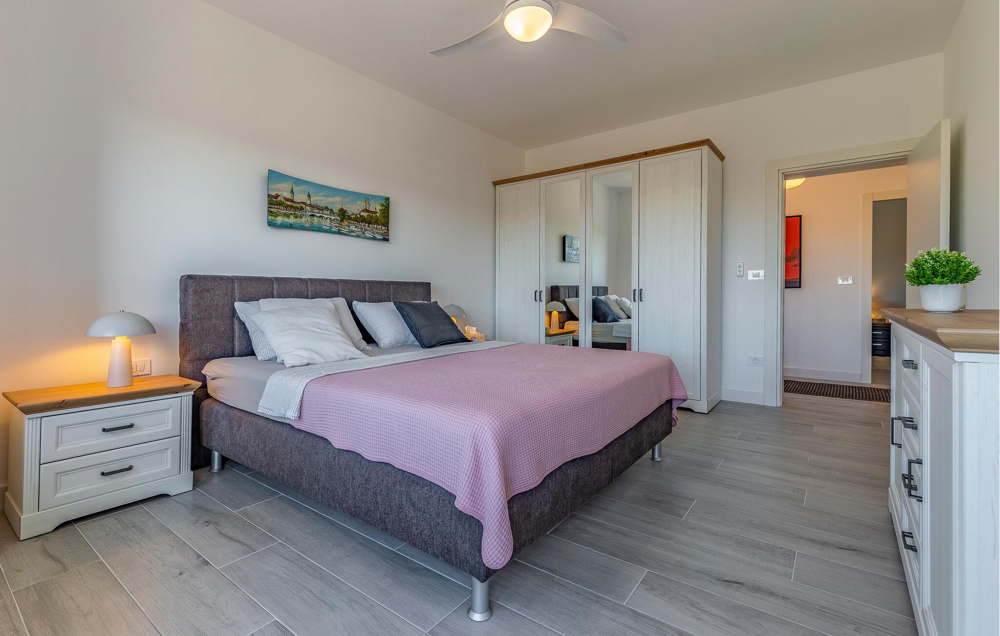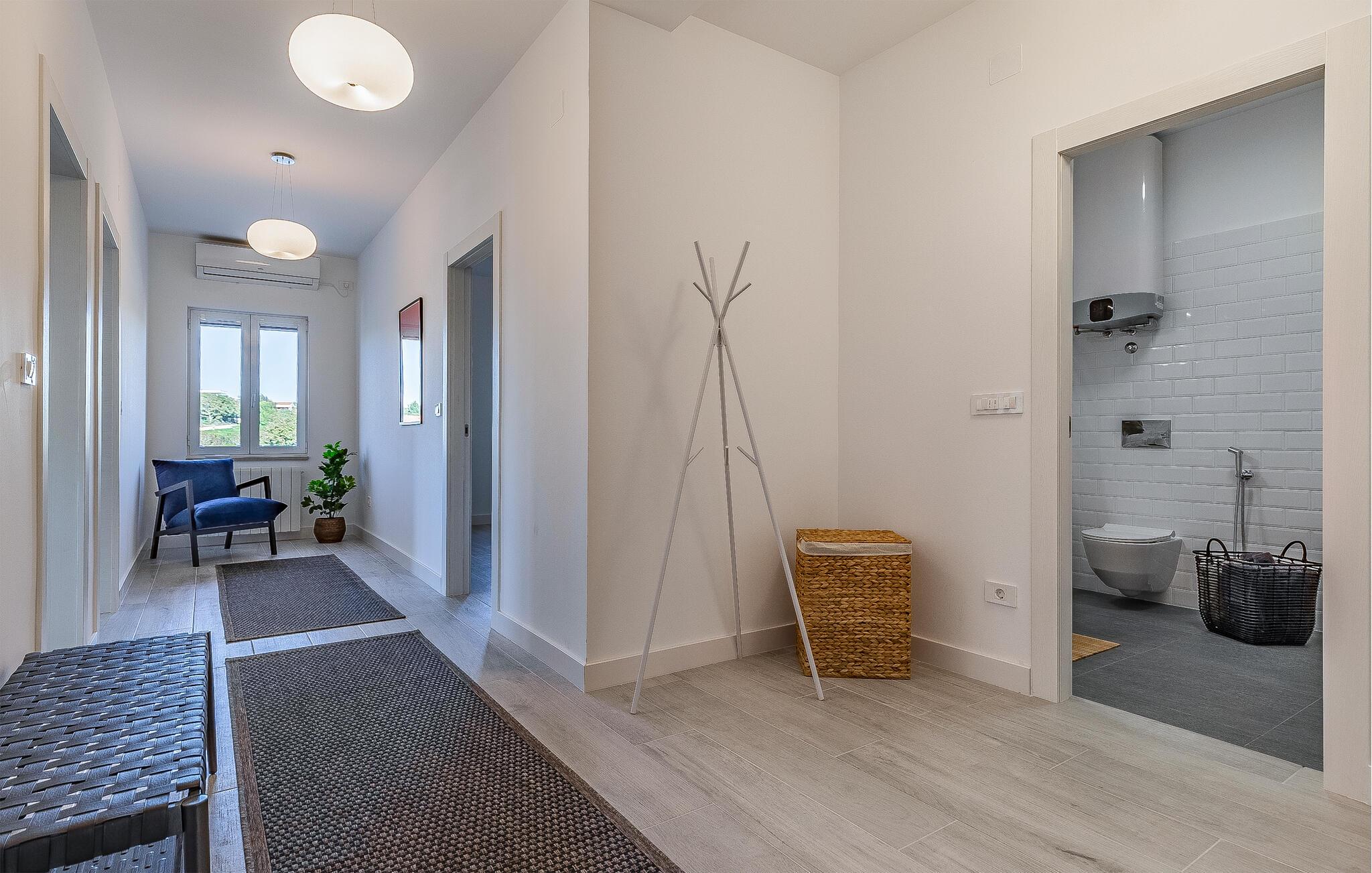 Diese stilvolle und helle Ferienwohnung in Medulin bietet Ihnen und Ihrer Familie eine einladende Atmosphäre und eine geschmackvolle Einrichtung. Im Haus befinden sich zwei weitere Ferienwohnung, sodass einem gemeinsamen Urlaub mit der Großfamilie oder Freunden nichts im Wege steht. Großzügige Fenster lassen viel Tageslicht herein und geben den Blick auf die malerische Umgebung und das glitzernde Meer frei. Ob beim Kochen in der gut ausgestatteten Küche oder beim Entspannen im gemütlichen Wohnbereich – hier werden Sie sich wie zuhause fühlen. Auf dem Balkon können Sie Ihren Morgenkaffee genießen und die Urlaubsstimmung in vollen Zügen auskosten.