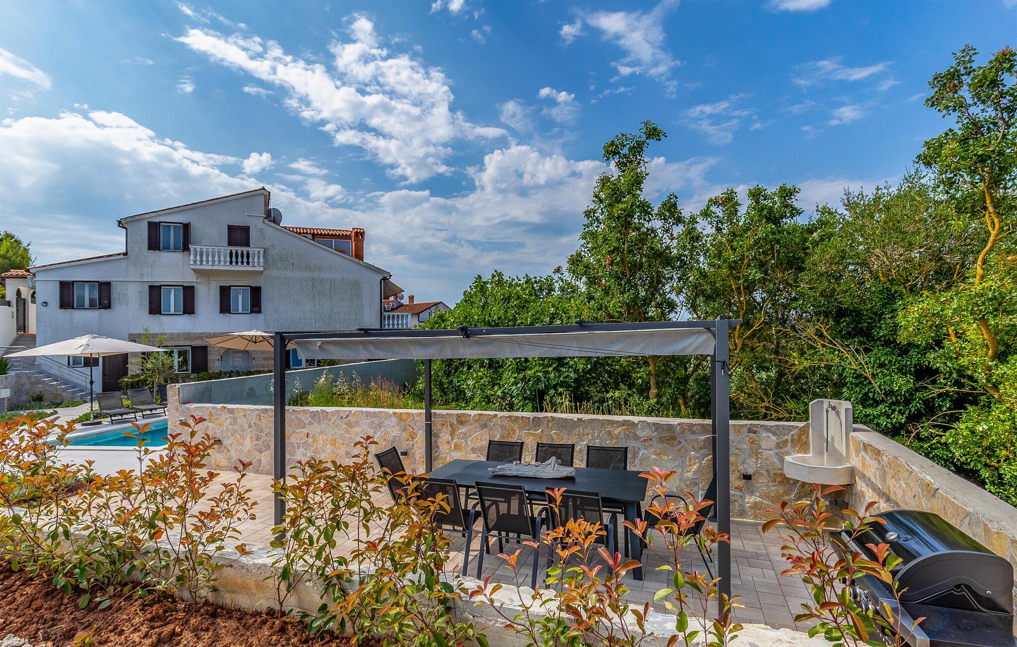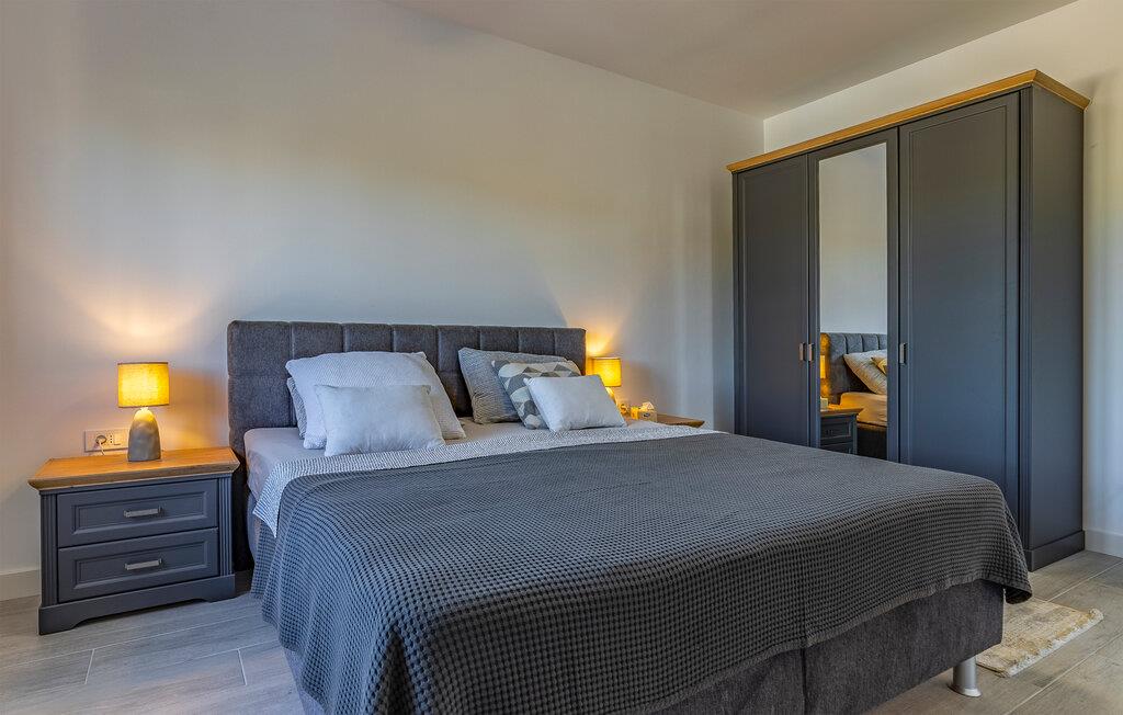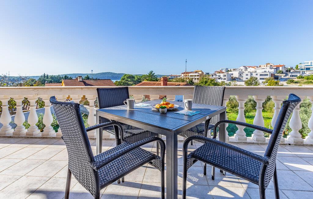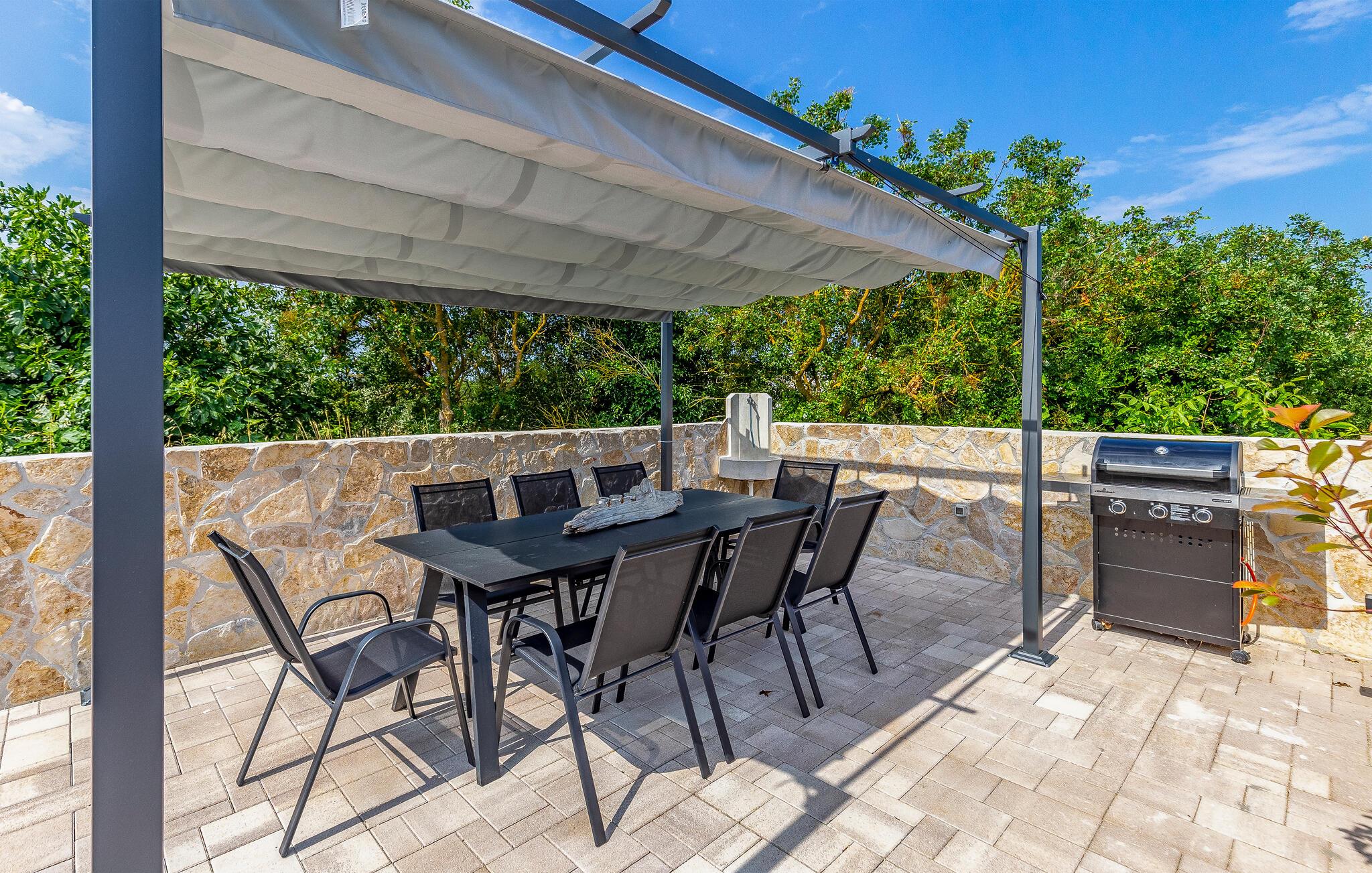 Diese stilvolle und helle Ferienwohnung in Medulin bietet Ihnen und Ihrer Familie eine einladende Atmosphäre und eine geschmackvolle Einrichtung. Im Haus befinden sich zwei weitere Ferienwohnung, sodass einem gemeinsamen Urlaub mit der Großfamilie oder Freunden nichts im Wege steht. Großzügige Fenster lassen viel Tageslicht herein und geben den Blick auf die malerische Umgebung und das glitzernde Meer frei. Ob beim Kochen in der gut ausgestatteten Küche oder beim Entspannen im gemütlichen Wohnbereich – hier werden Sie sich wie zuhause fühlen. Auf dem Balkon können Sie Ihren Morgenkaffee genießen und die Urlaubsstimmung in vollen Zügen auskosten.