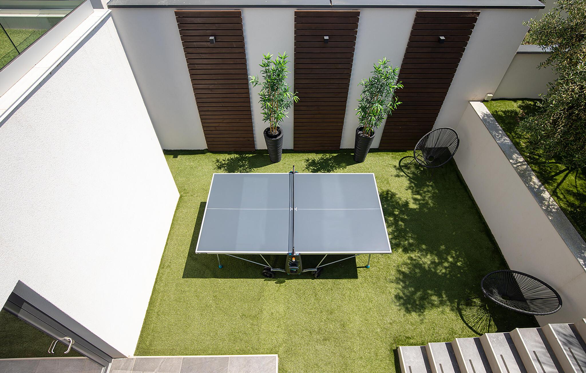 Nehmen Sie ein erfrischendes Bad im Pool oder entspannen Sie sich auf den Sonnenliegen. Suchen Sie sich ein schattiges Plätzchen und vertiefen Sie sich in ein gutes Buch. Wenn Sie Lust auf sportliche Aktivitäten haben, spielen Sie eine Runde Tischtennis. Für gemeinsame Mahlzeiten im Freien steht Ihnen ein Grill zur Verfügung – ideal für gesellige BBQ-Abende mit Familie oder Freunden.