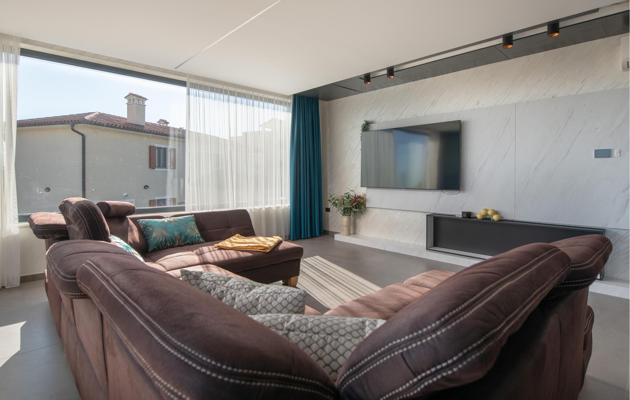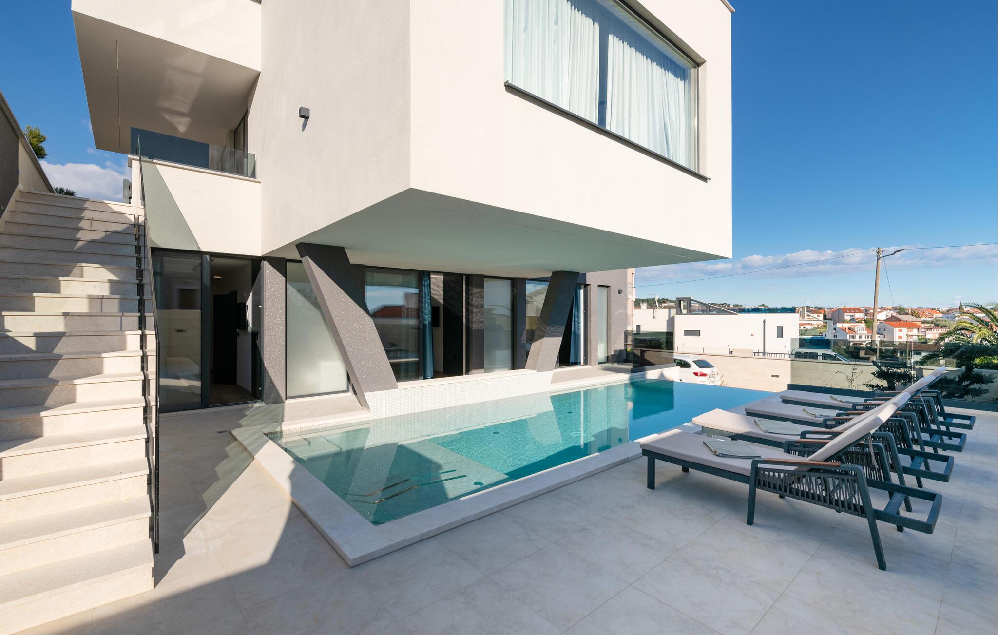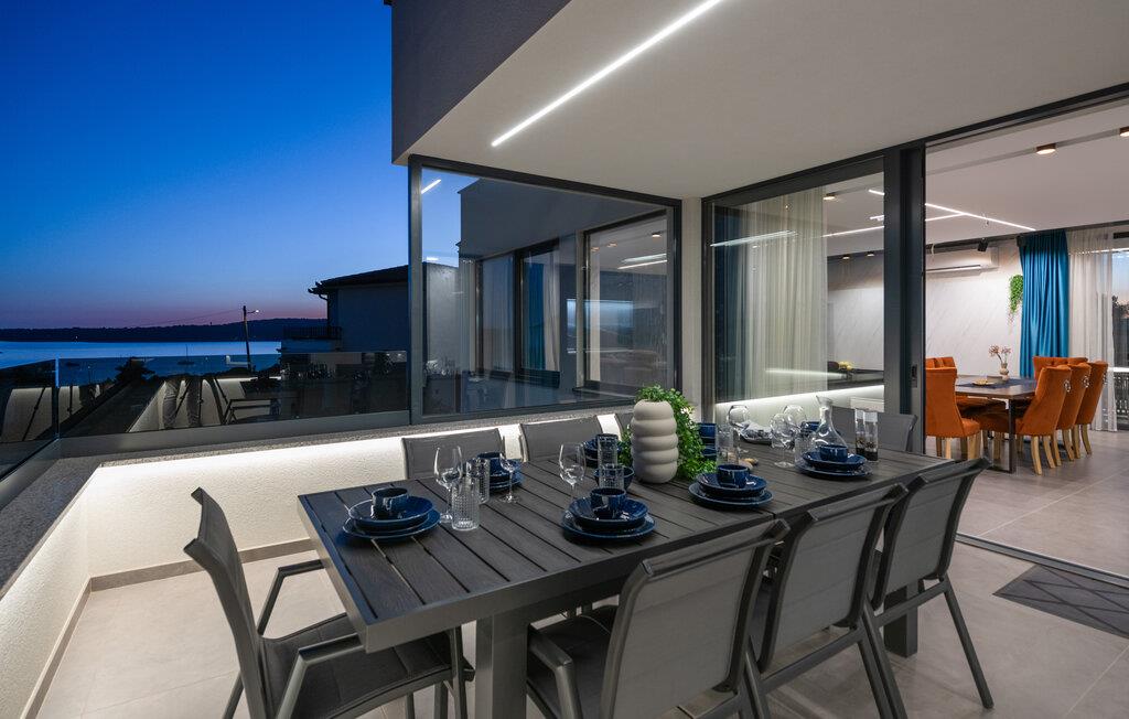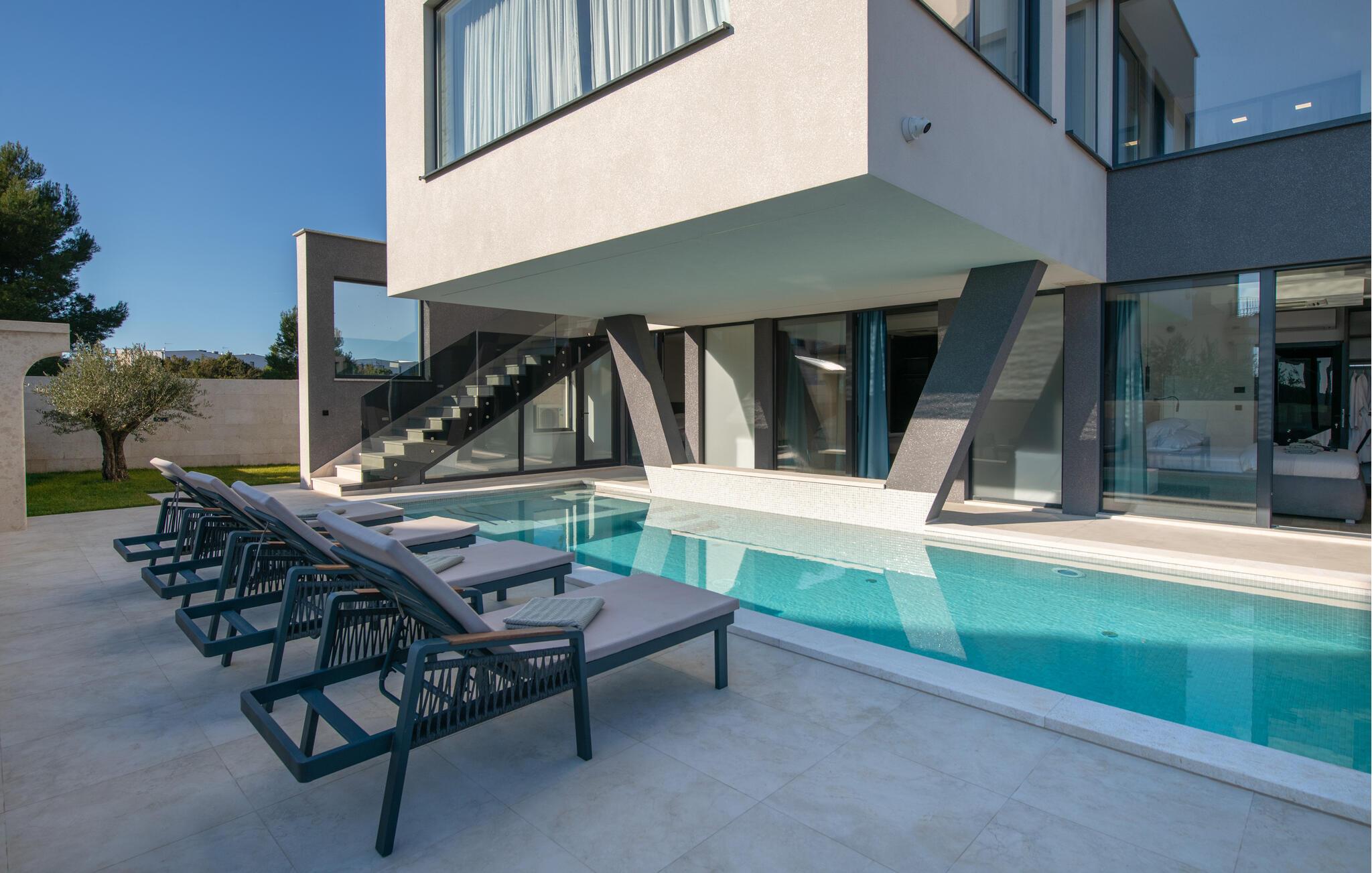 Tanken Sie neue Energie in dieser stilvollen Villa, die modernes Ambiente mit zeitloser Eleganz verbindet. Dank der bodentiefen Fenster fällt der Blick immer wieder auf das Meer, die mediterrane Umgebung und den fantastischen Poolbereich. Machen Sie es sich auf den hochwertigen Sofas gemütlich, schmökern Sie in einem spannenden Buch, genießen Sie einen Film oder entspannen Sie ganz in Ruhe bei einem Glas Wein. In der geschmackvollen Designküche lassen sich kulinarische Highlights zaubern – ideal für genussvolle Abende im kleinen oder großen Kreis.