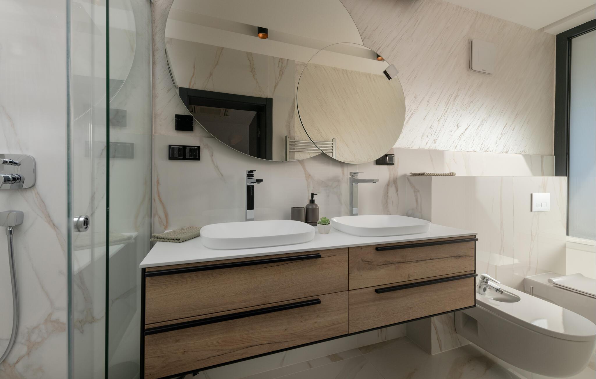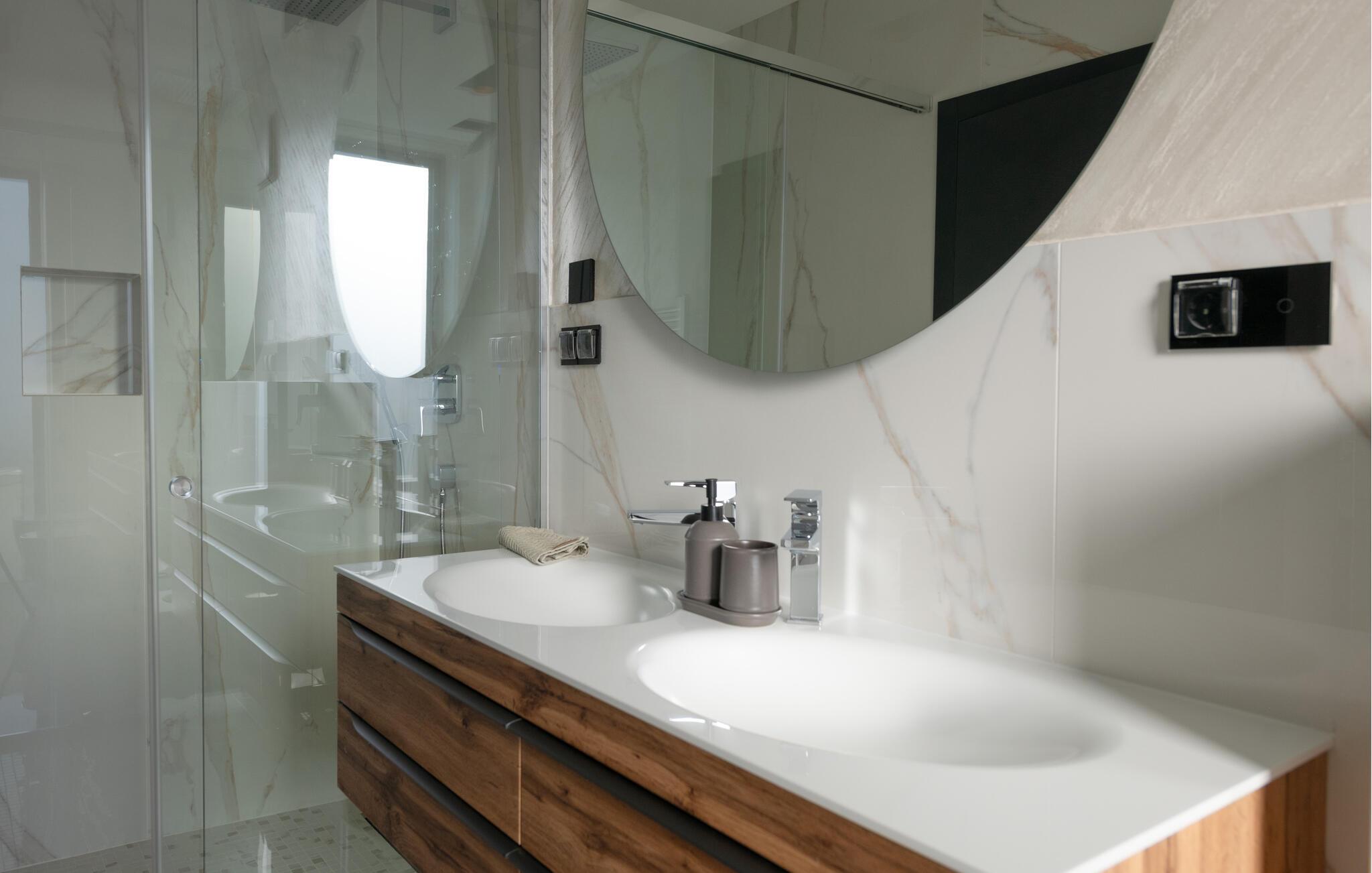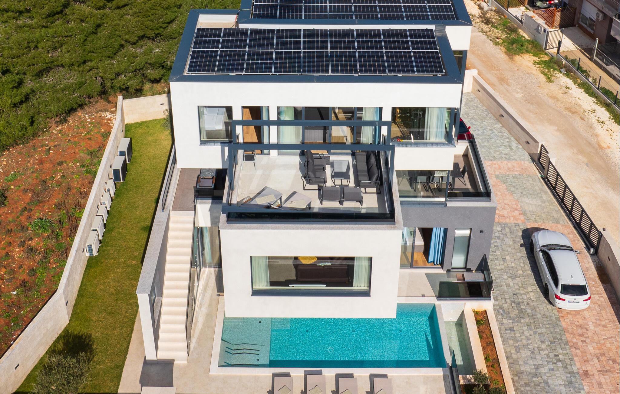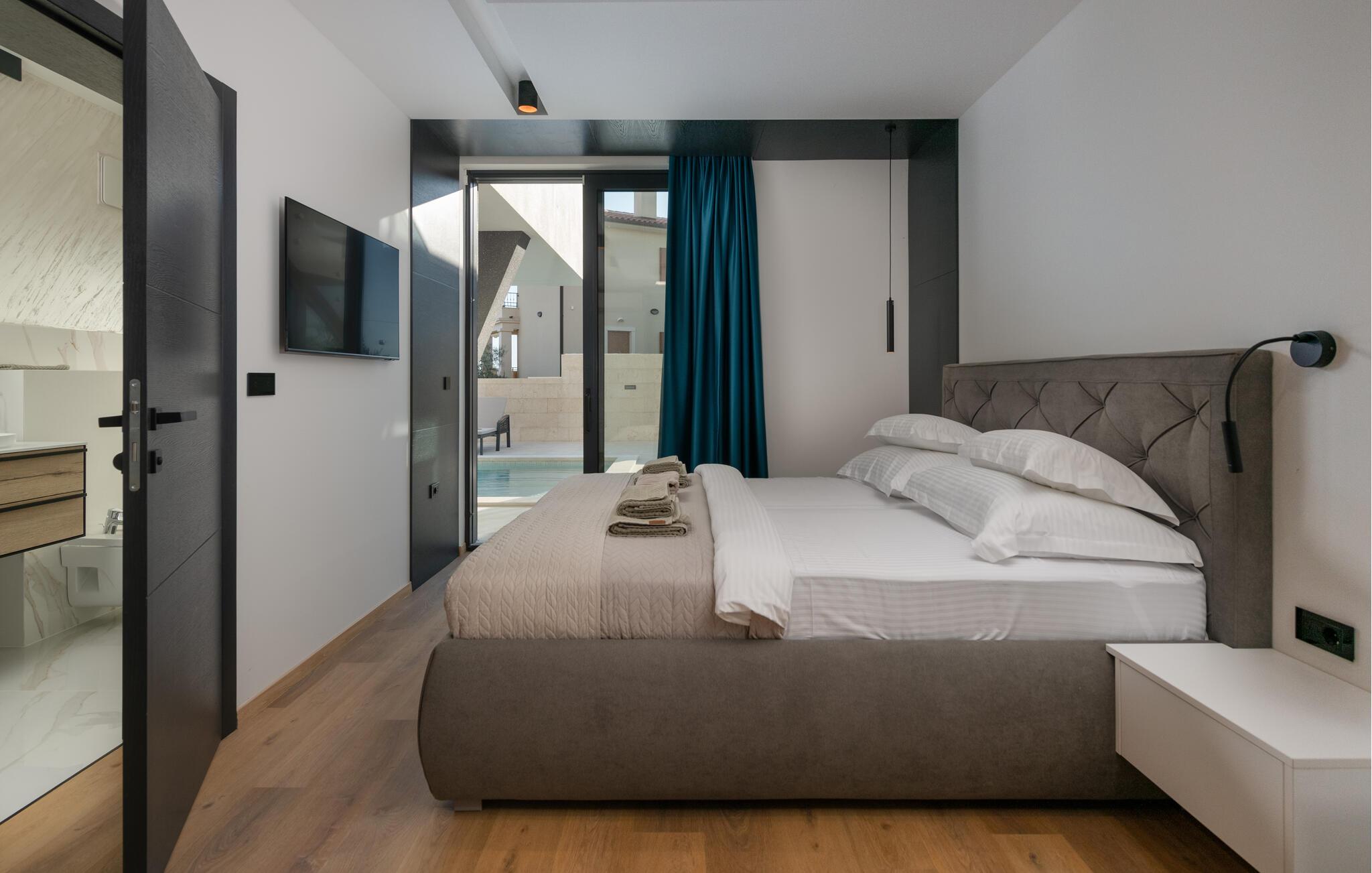 Tanken Sie neue Energie in dieser stilvollen Villa, die modernes Ambiente mit zeitloser Eleganz verbindet. Dank der bodentiefen Fenster fällt der Blick immer wieder auf das Meer, die mediterrane Umgebung und den fantastischen Poolbereich. Machen Sie es sich auf den hochwertigen Sofas gemütlich, schmökern Sie in einem spannenden Buch, genießen Sie einen Film oder entspannen Sie ganz in Ruhe bei einem Glas Wein. In der geschmackvollen Designküche lassen sich kulinarische Highlights zaubern – ideal für genussvolle Abende im kleinen oder großen Kreis.