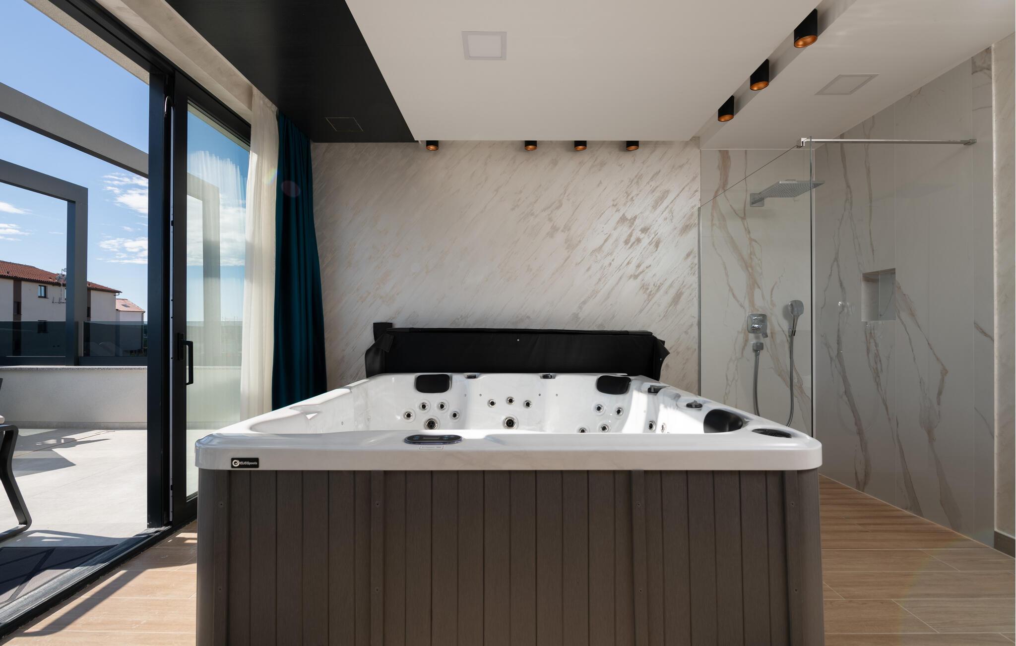 Gönnen Sie sich eine erfrischende Abkühlung im Pool oder entspannen Sie auf einer der Sonnenliegen unter Kroatiens Himmel. Genießen Sie Ruhe und Entspannung in der Sauna oder im Whirlpool. Wenn Sie aktiver sein möchten, kommen Sie im Fitnessraum in Bewegung. Lassen Sie anschließend den Tag bei guten Gesprächen und mit Blick in den Sonnenuntergang über dem Meer ausklingen.