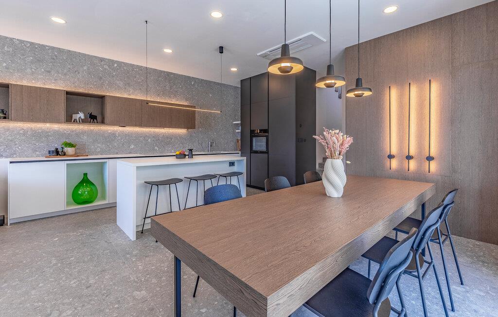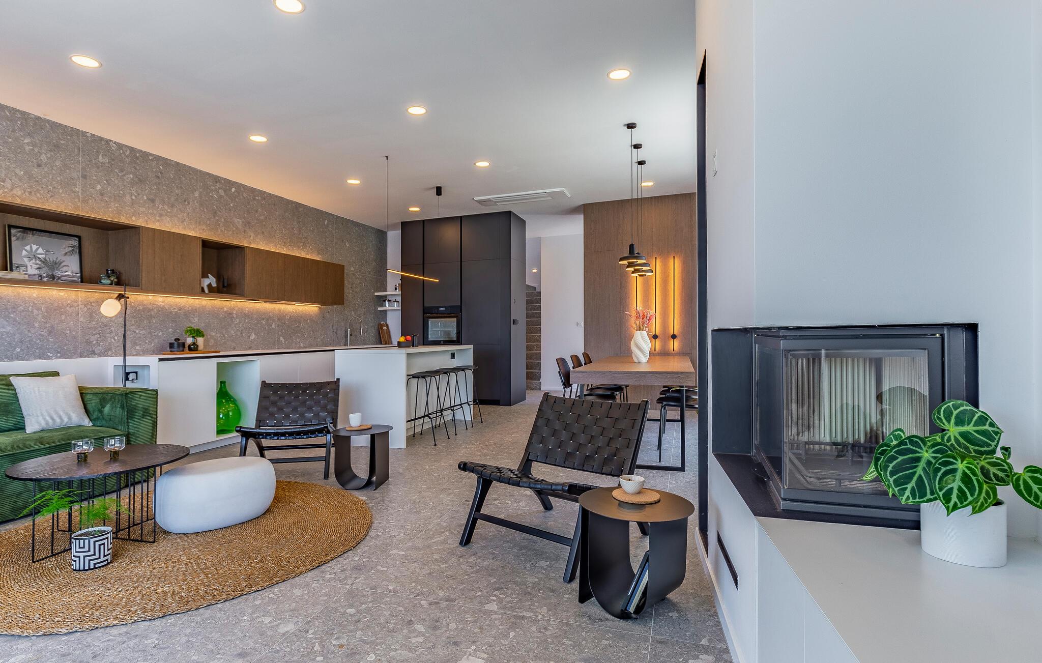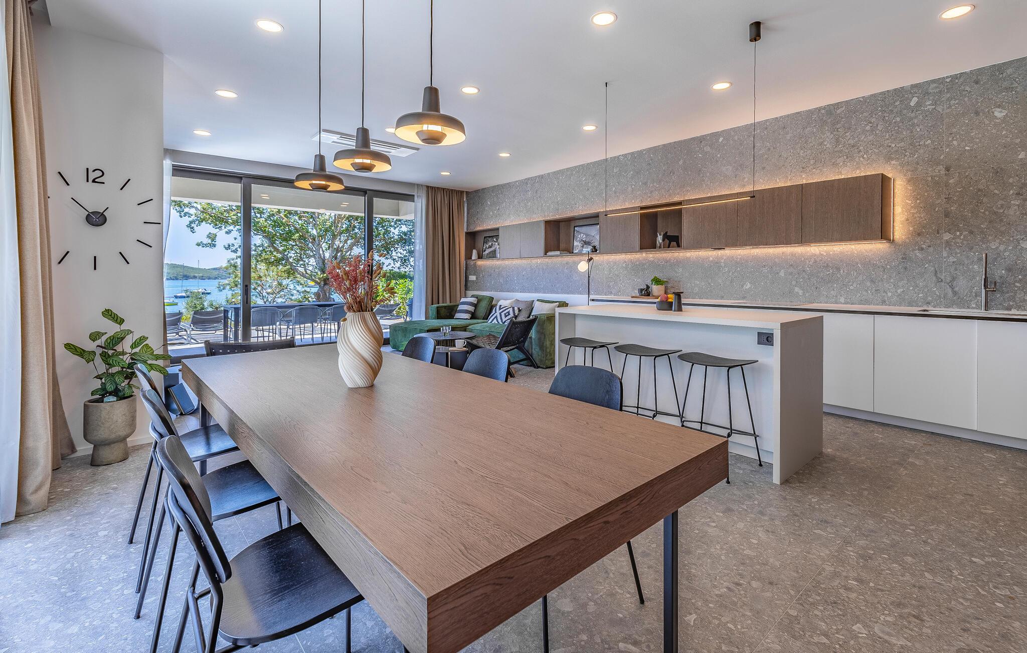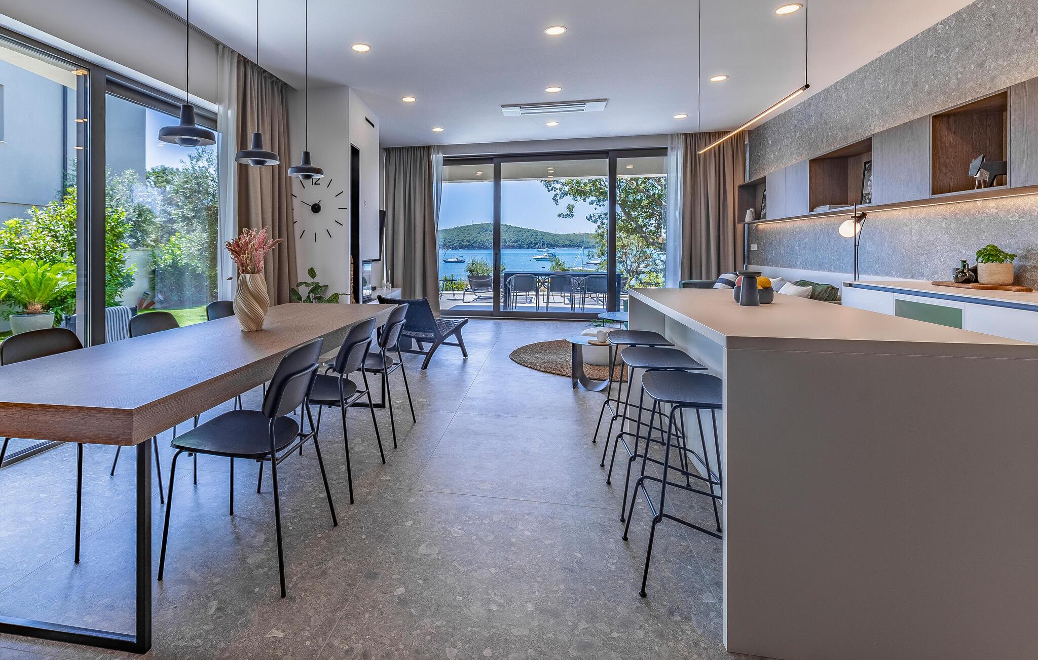 Dieses stilvoll eingerichtete Haus garantiert Ihnen Ferien auf höchstem Niveau. Geschmackvolles Interieur, eine komfortable Sofalandschaft und eine bestens ausgestattete Küche laden dazu ein, zur Ruhe zu kommen und neue Energie zu tanken. Machen Sie es sich mit Blick aufs Meer durch die bodentiefen Fenster gemütlich und schenken Sie sich ein Glas Wein ein. Oder kochen Sie gemeinsam leckere Gerichte und servieren Sie diese am großen Esstisch.