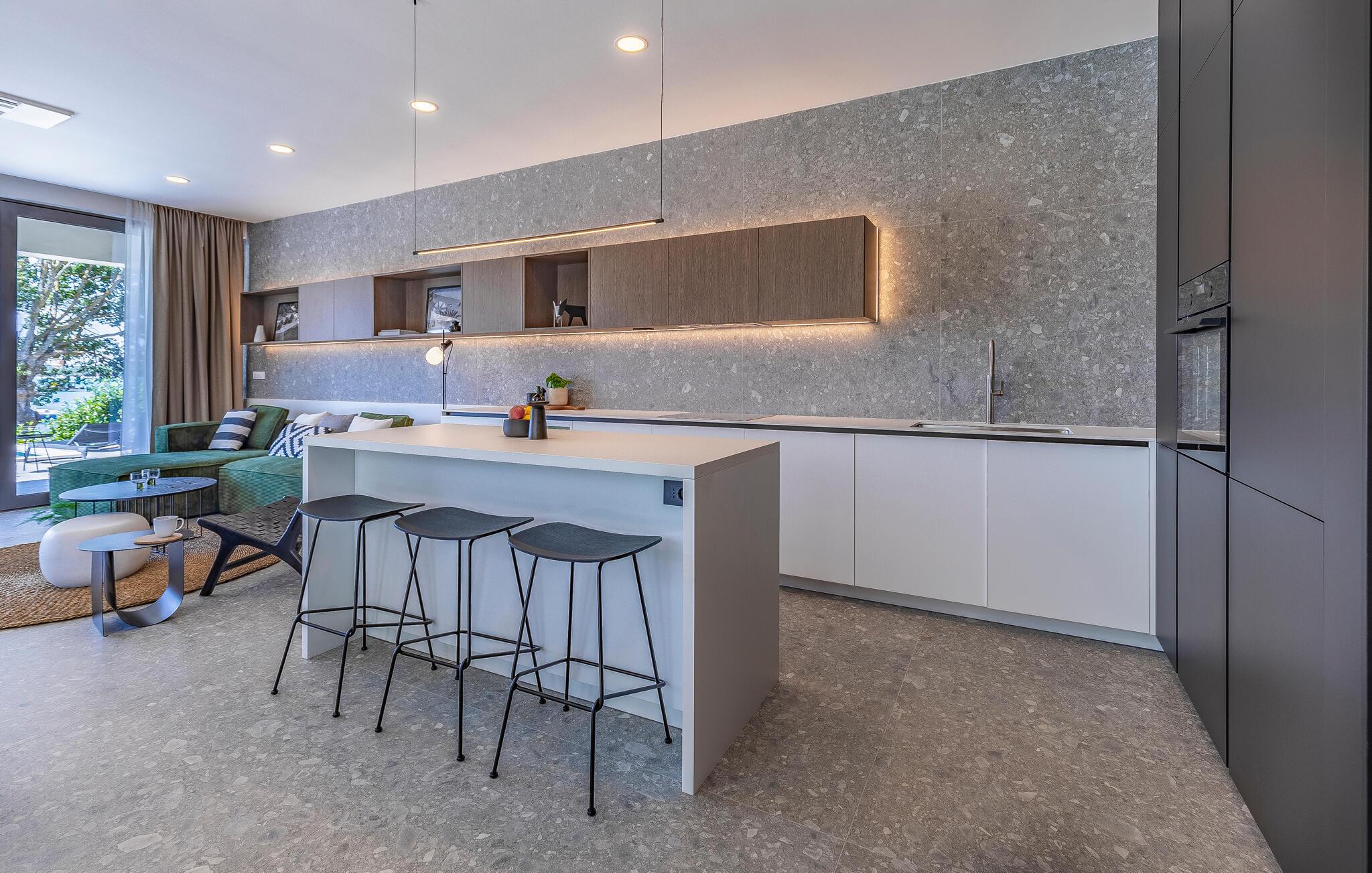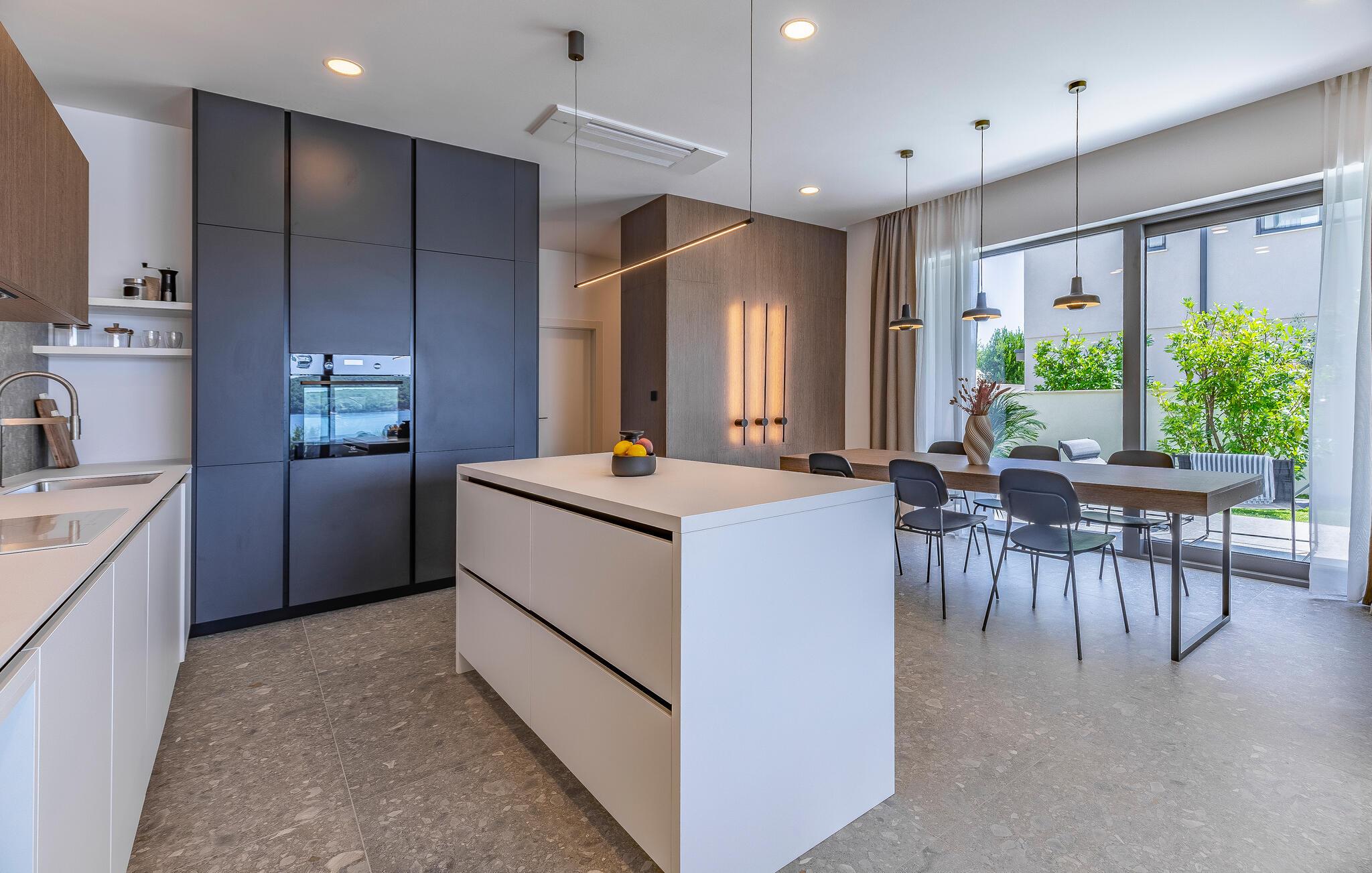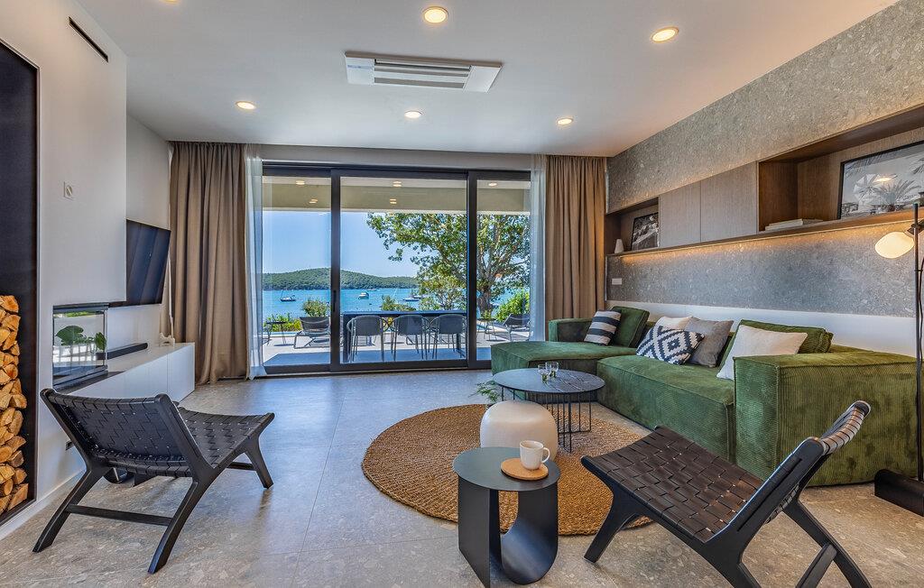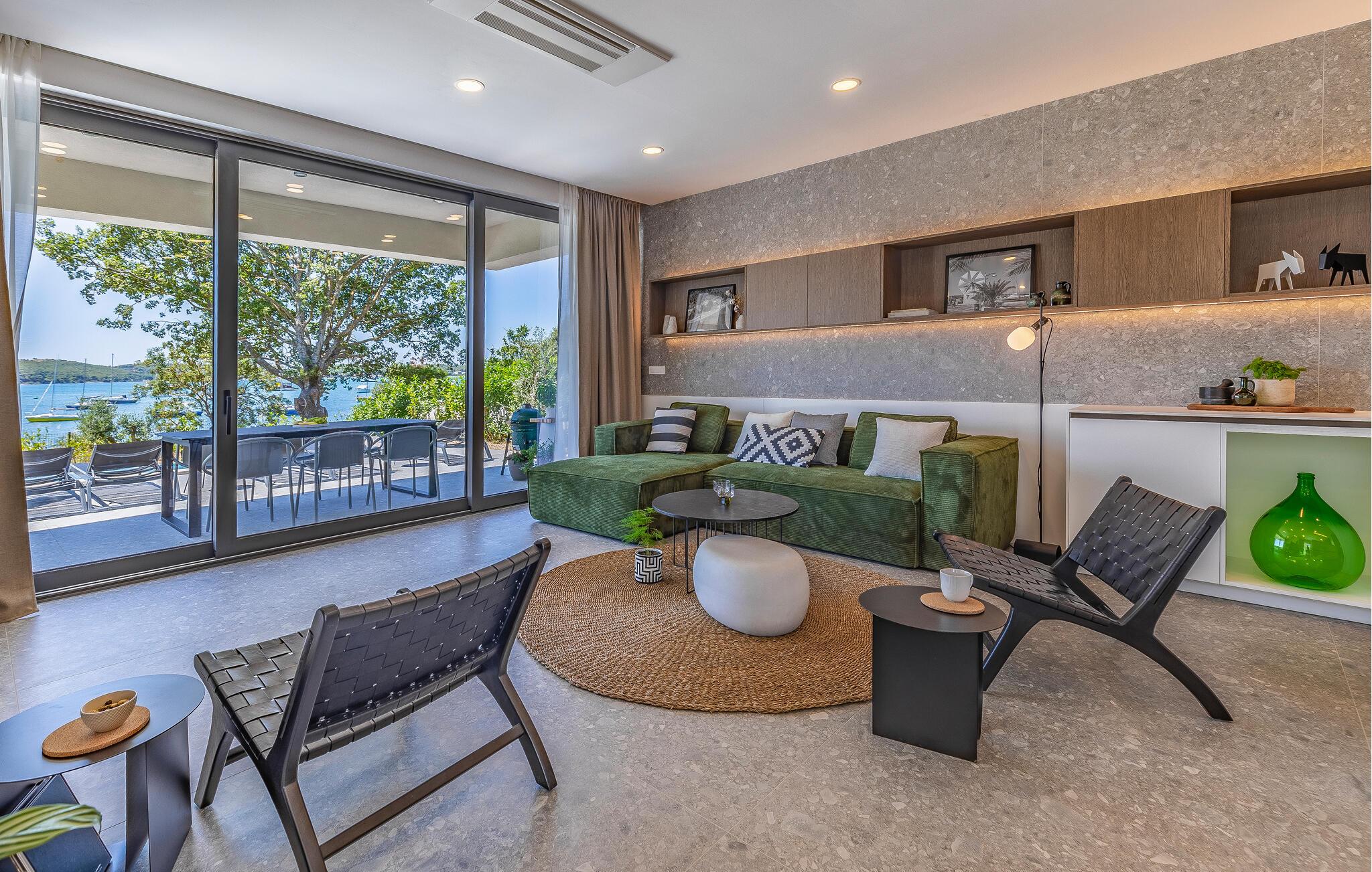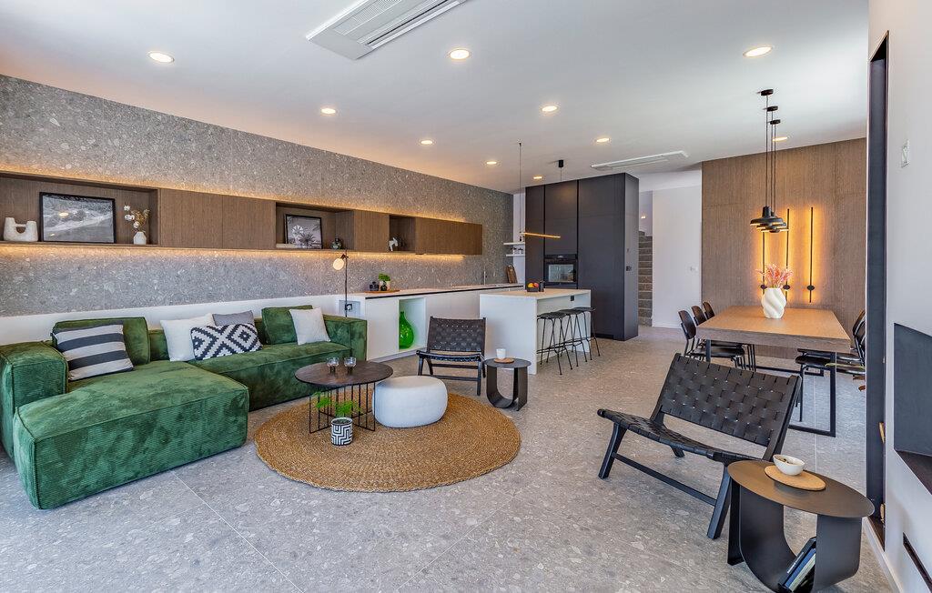 Dieses stilvoll eingerichtete Haus garantiert Ihnen Ferien auf höchstem Niveau. Geschmackvolles Interieur, eine komfortable Sofalandschaft und eine bestens ausgestattete Küche laden dazu ein, zur Ruhe zu kommen und neue Energie zu tanken. Machen Sie es sich mit Blick aufs Meer durch die bodentiefen Fenster gemütlich und schenken Sie sich ein Glas Wein ein. Oder kochen Sie gemeinsam leckere Gerichte und servieren Sie diese am großen Esstisch.