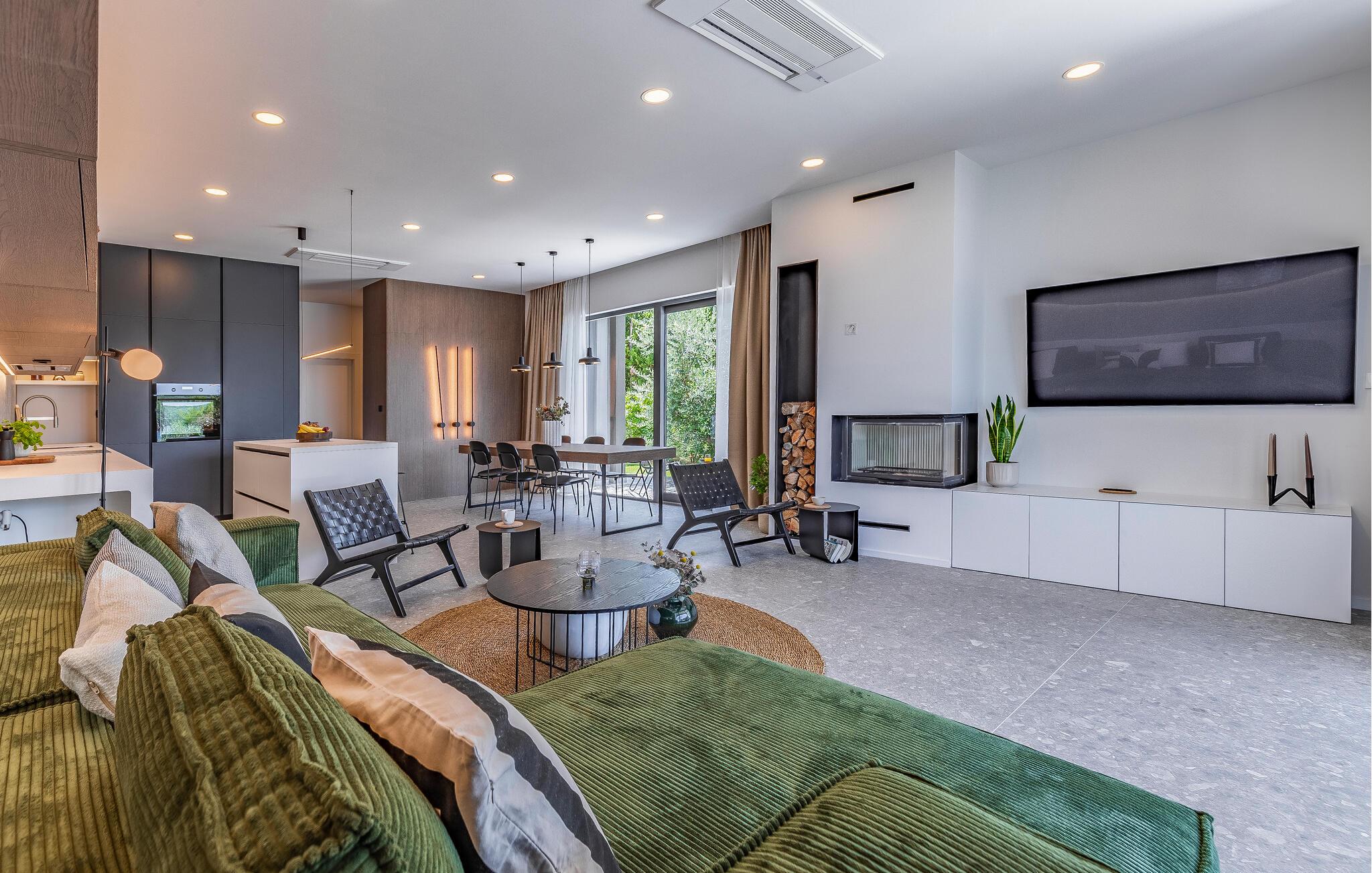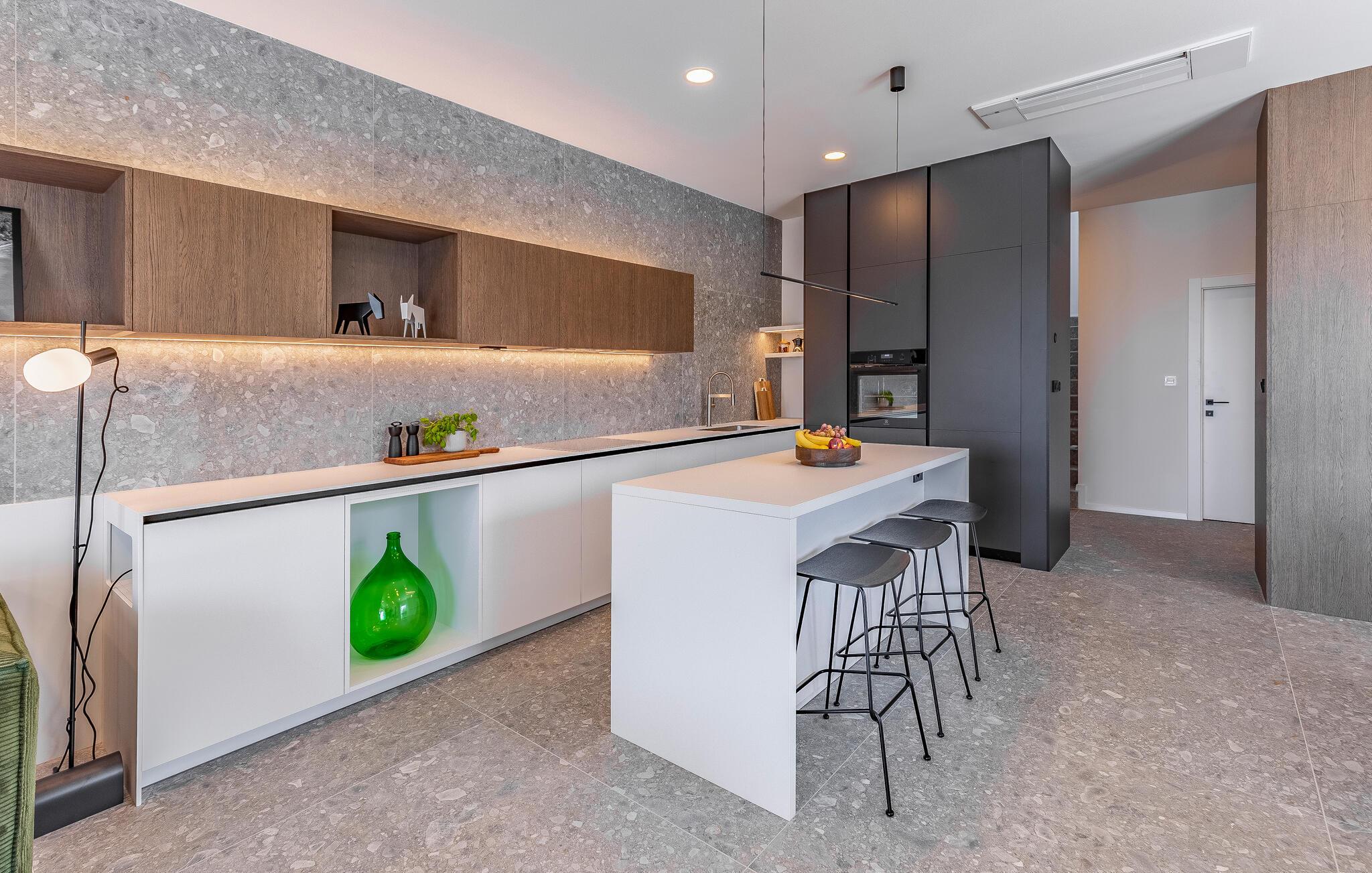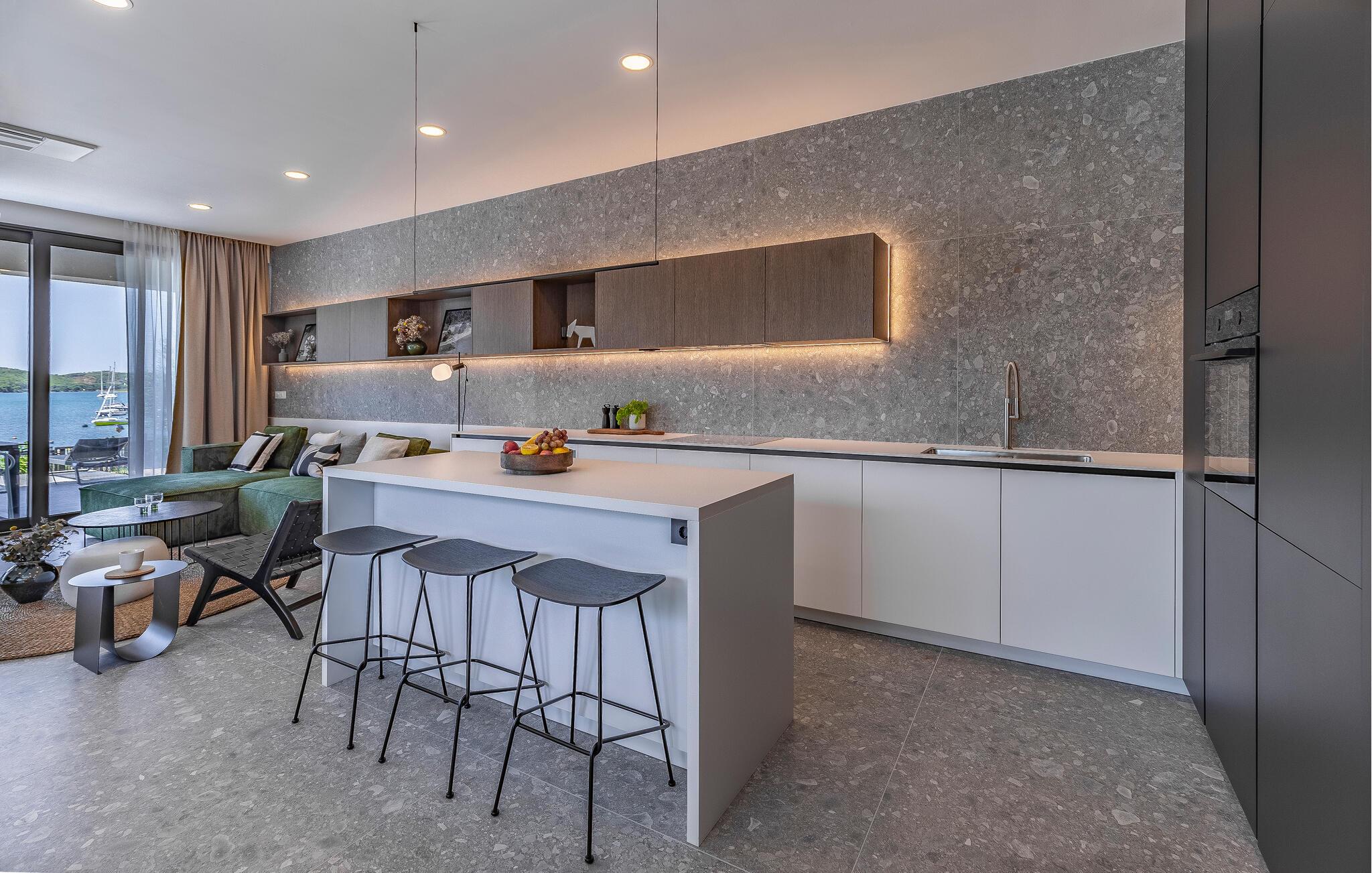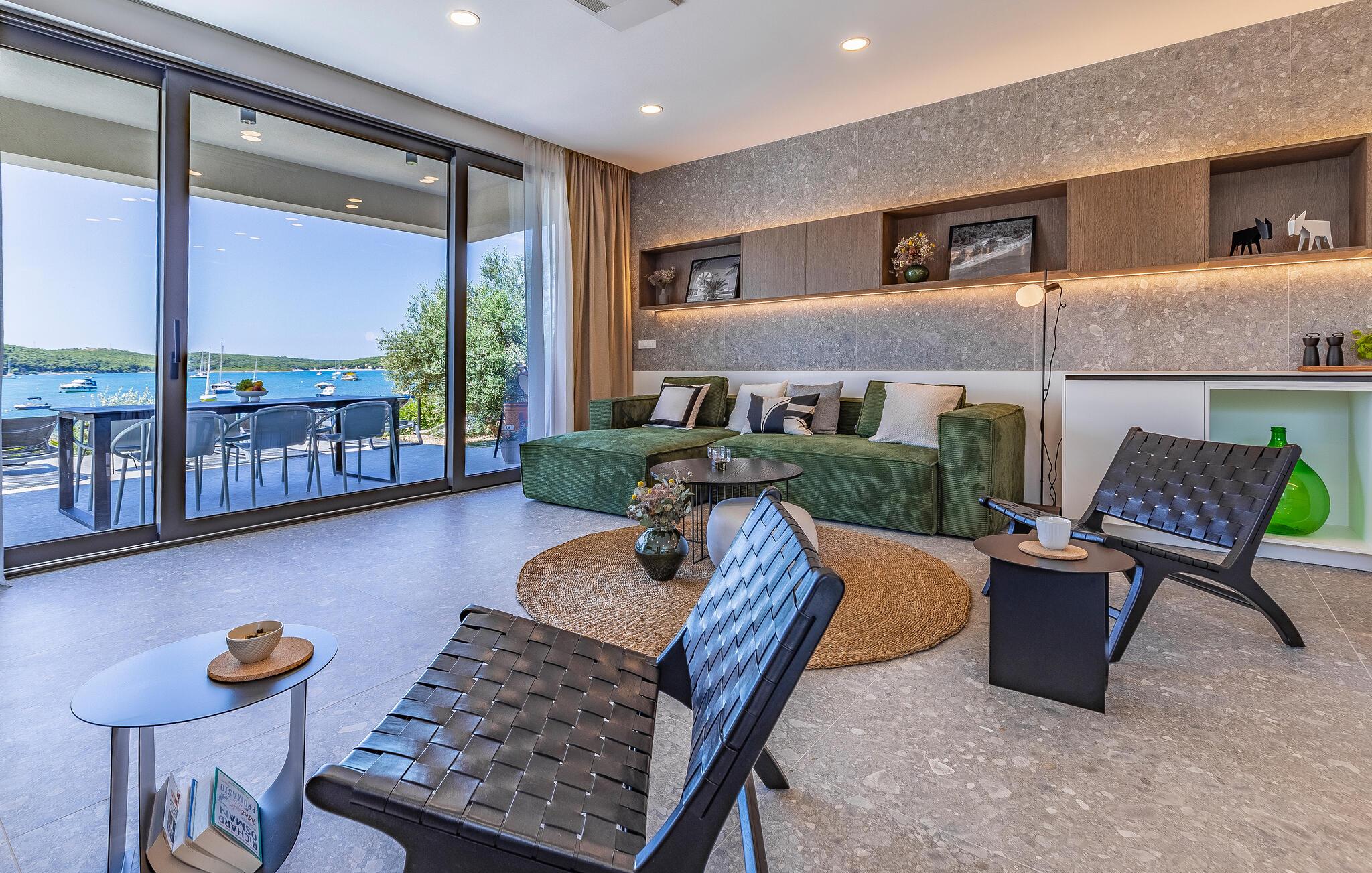 Die stilvolle Einrichtung, eine gemütliche Sofalandschaft, schönes Lichtdesign und eine sehr gut ausgestattete Küche schaffen eine Wohlfühlatmosphäre, in der Sie schnell entspannen und neue Kraft tanken können. Genießen Sie den Meerblick durch die bodentiefen Fenster bei einem Glas Wein, hören Sie Ihre Lieblingsmusik oder bereiten Sie gemeinsam köstliche Gerichte zu.