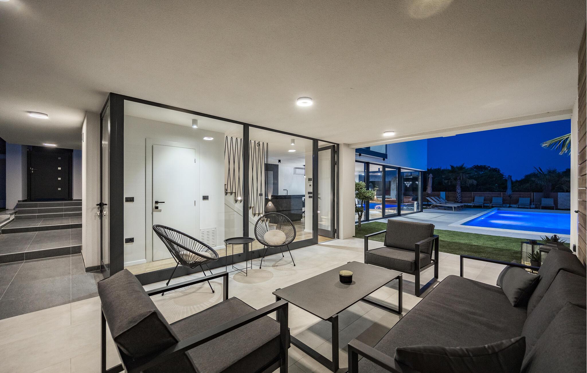 Gönnen Sie sich Tage voller Luxus in diesem komfortablen Ferienhaus mit Pool und Sauna.