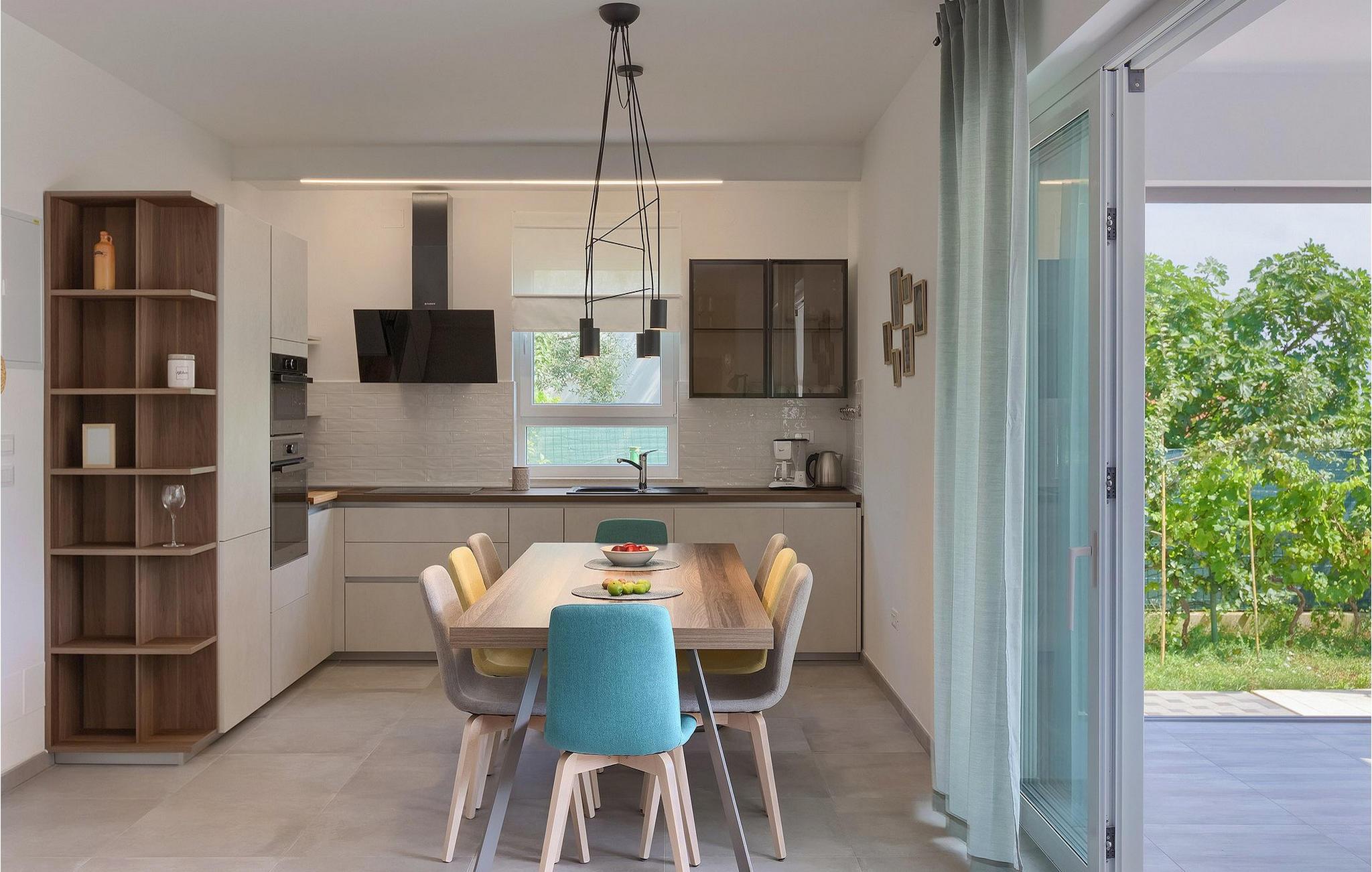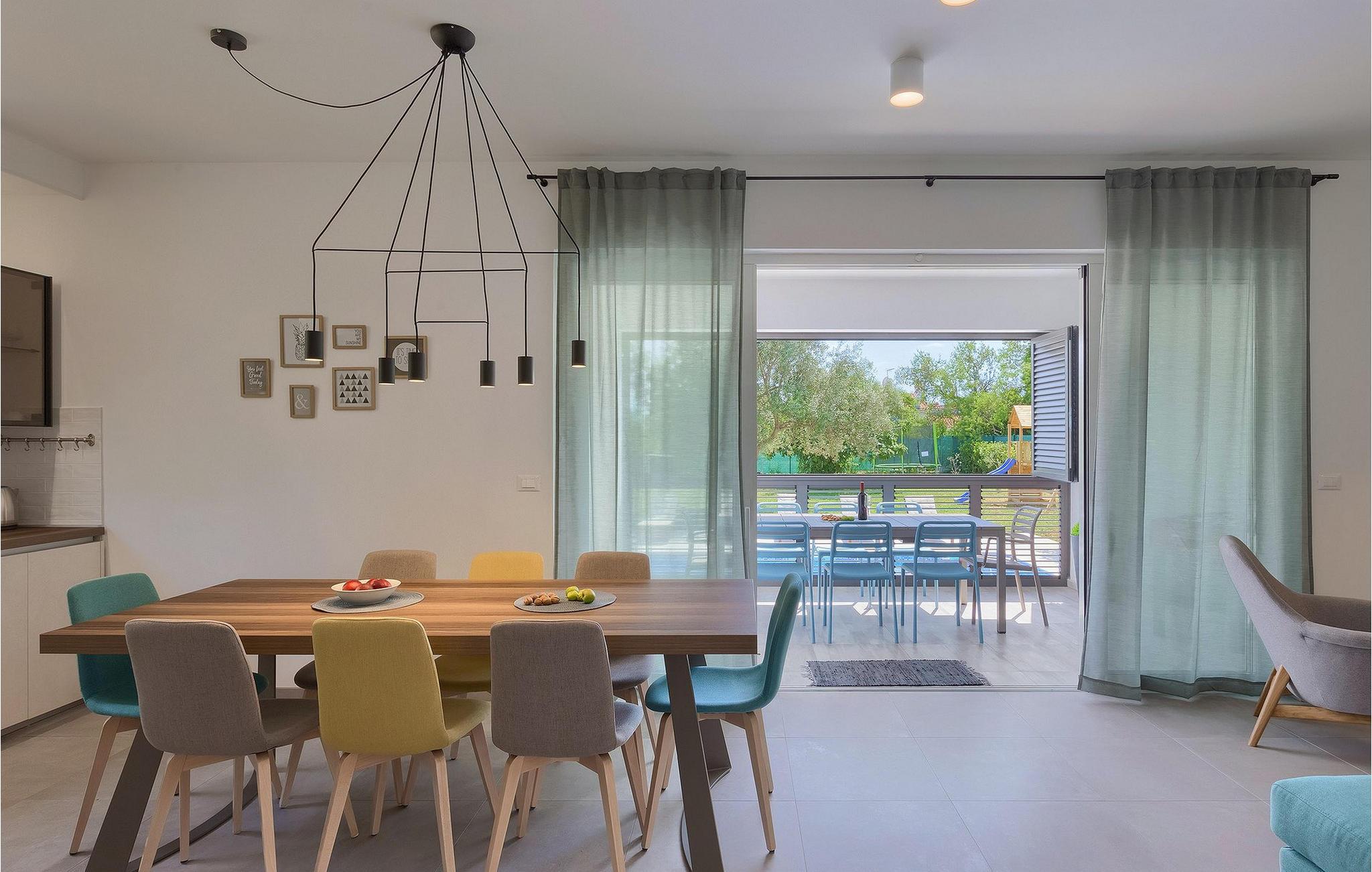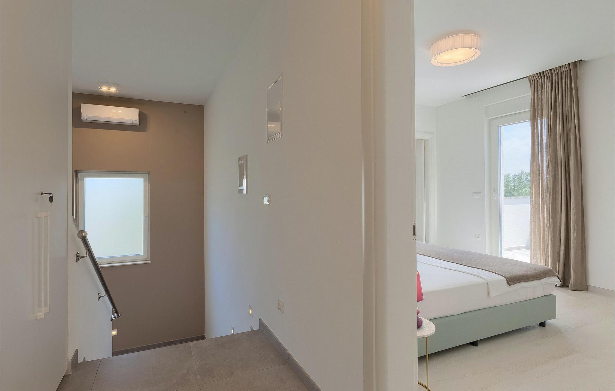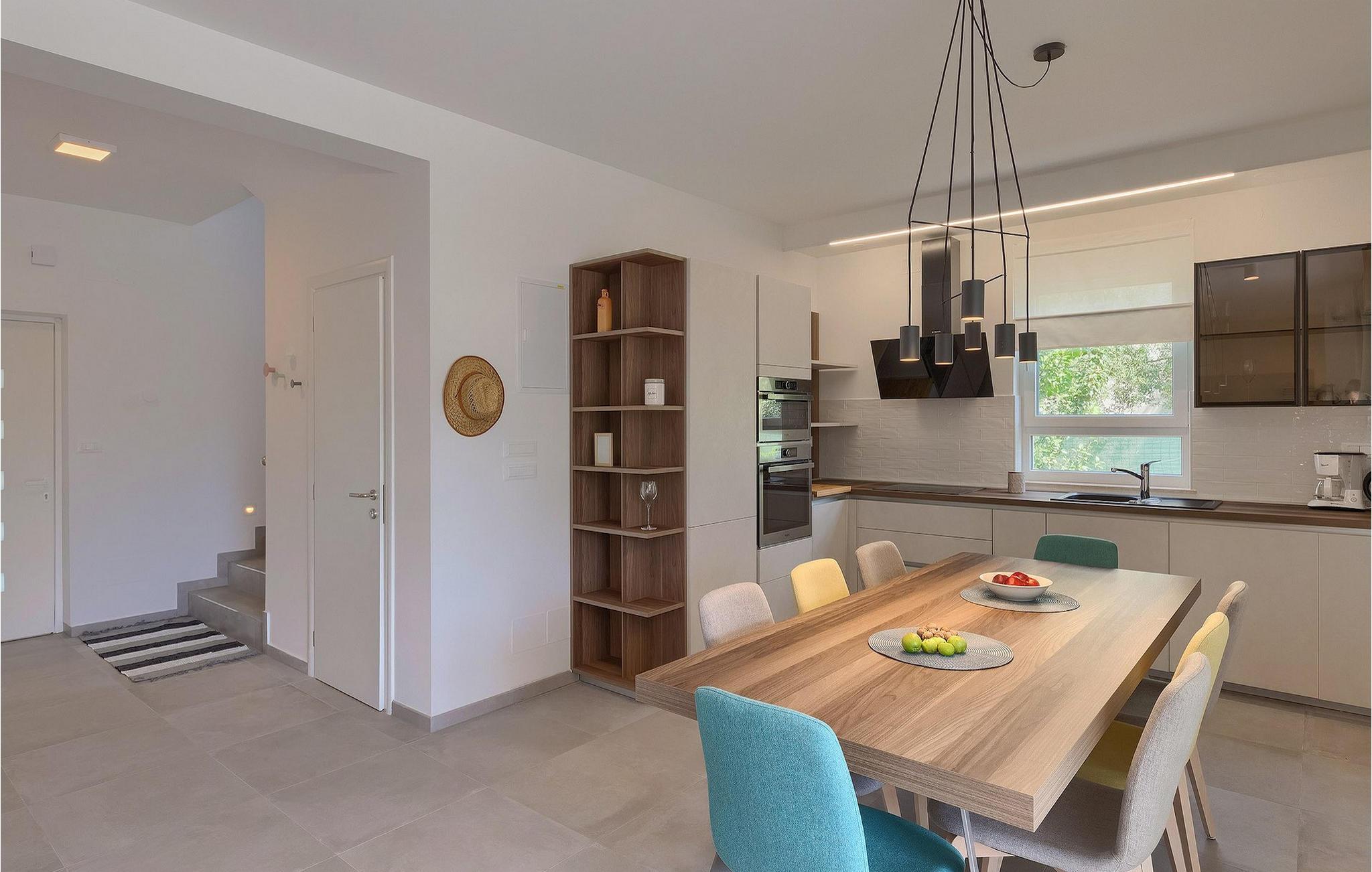 Die moderne Villa Elica ist die richtige Wahl, wenn Sie einen ruhigen Urlaub in der Nähe des Meeres im ruhigeren Teil des schönen Medulin verbringen möchten, besonders geeignet für Familien mit jüngeren Kindern. Villa Elica bietet Platz für bis zu 8 Personen. Das moderne Interieur bietet 4 komfortable, sonnendurchflutete Zimmer, die jeweils in verschiedenen dezenten Farben dekoriert sind was eine individuelle Note verleiht. Eines der Schlafzimmer verfügt über 2 Einzelbetten und befindet sich im Erdgeschoss. Die 3 anderen Schlafzimmer sind mit Doppelbetten ausgestattet und befinden sich im 1. Stock. Alle Schlafzimmer sind mit einem eigenen Bad ausgestattet.