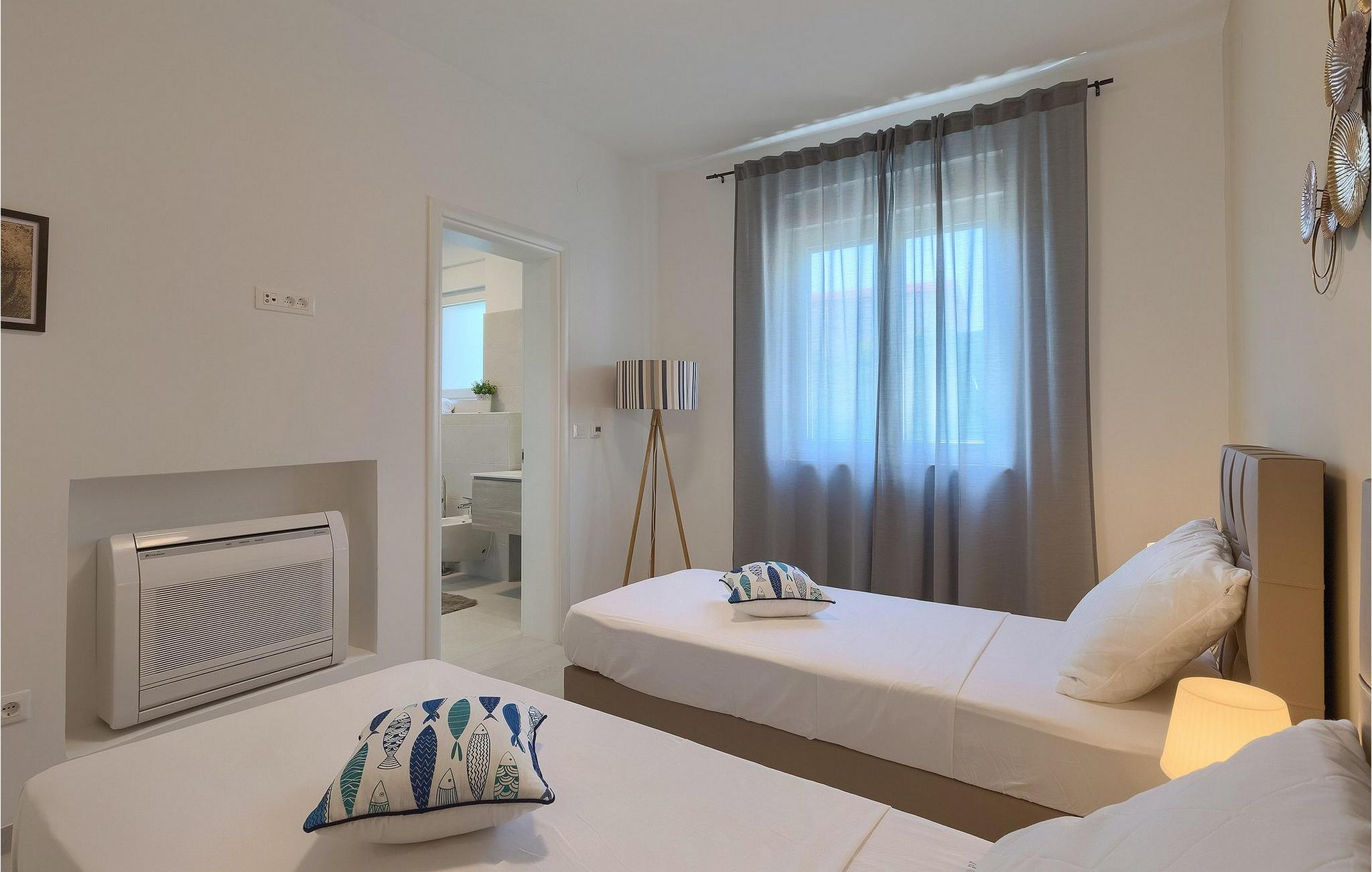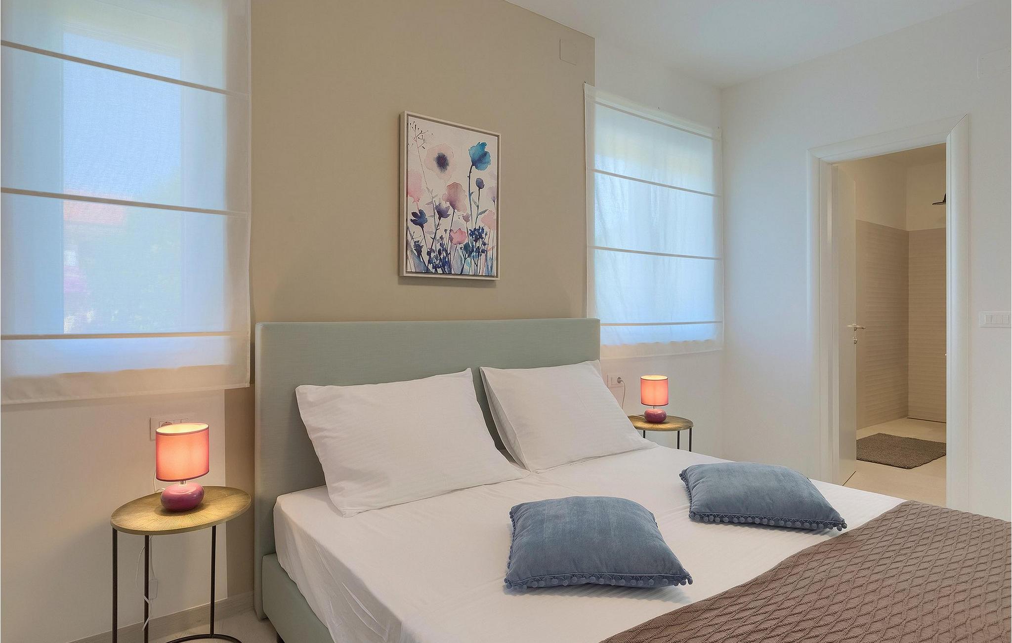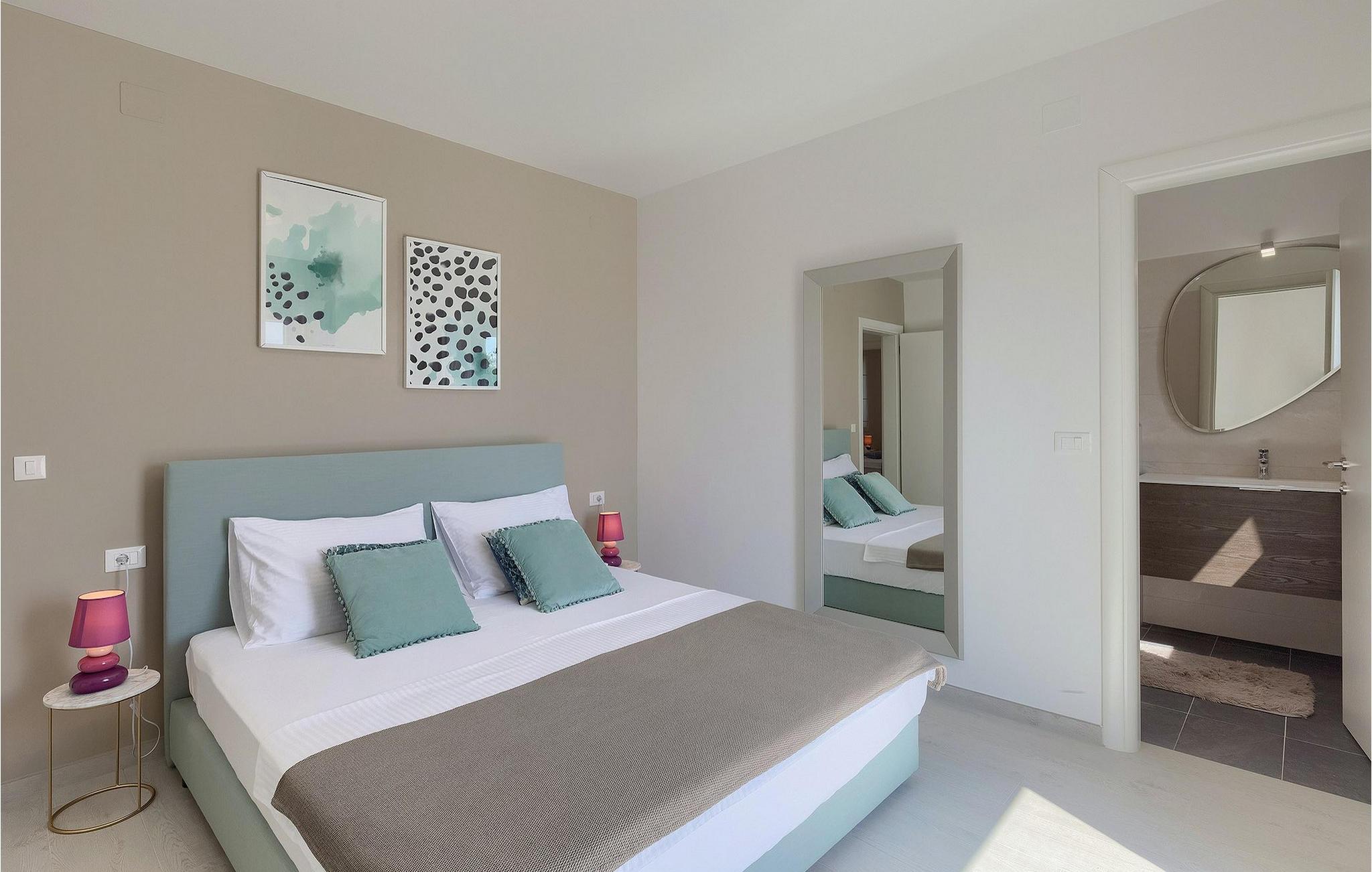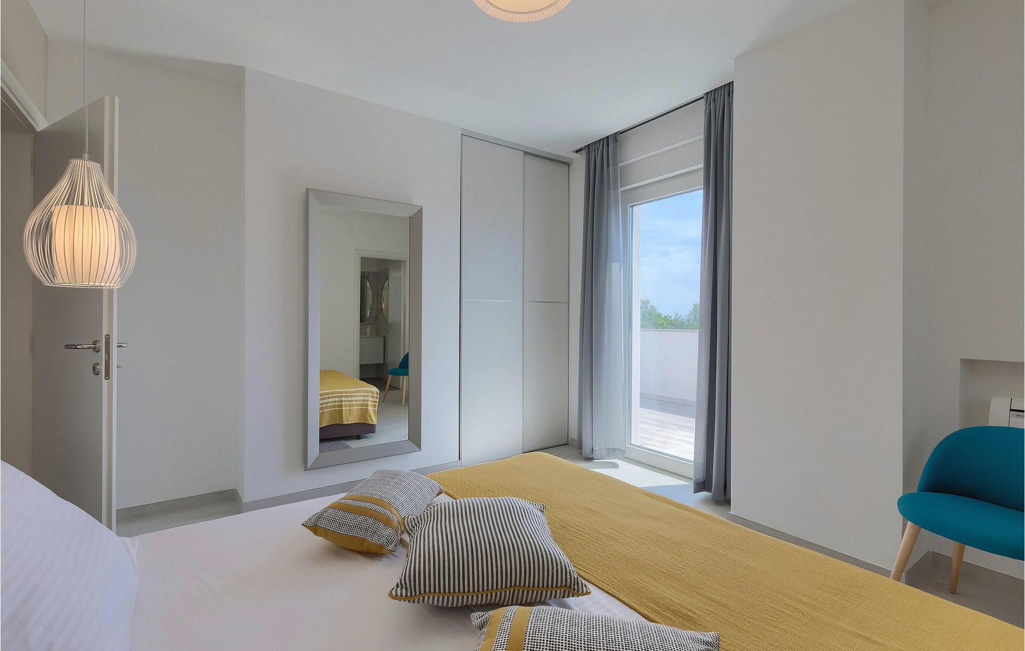 Die moderne Villa Elica ist die richtige Wahl, wenn Sie einen ruhigen Urlaub in der Nähe des Meeres im ruhigeren Teil des schönen Medulin verbringen möchten, besonders geeignet für Familien mit jüngeren Kindern. Villa Elica bietet Platz für bis zu 8 Personen. Das moderne Interieur bietet 4 komfortable, sonnendurchflutete Zimmer, die jeweils in verschiedenen dezenten Farben dekoriert sind was eine individuelle Note verleiht. Eines der Schlafzimmer verfügt über 2 Einzelbetten und befindet sich im Erdgeschoss. Die 3 anderen Schlafzimmer sind mit Doppelbetten ausgestattet und befinden sich im 1. Stock. Alle Schlafzimmer sind mit einem eigenen Bad ausgestattet.