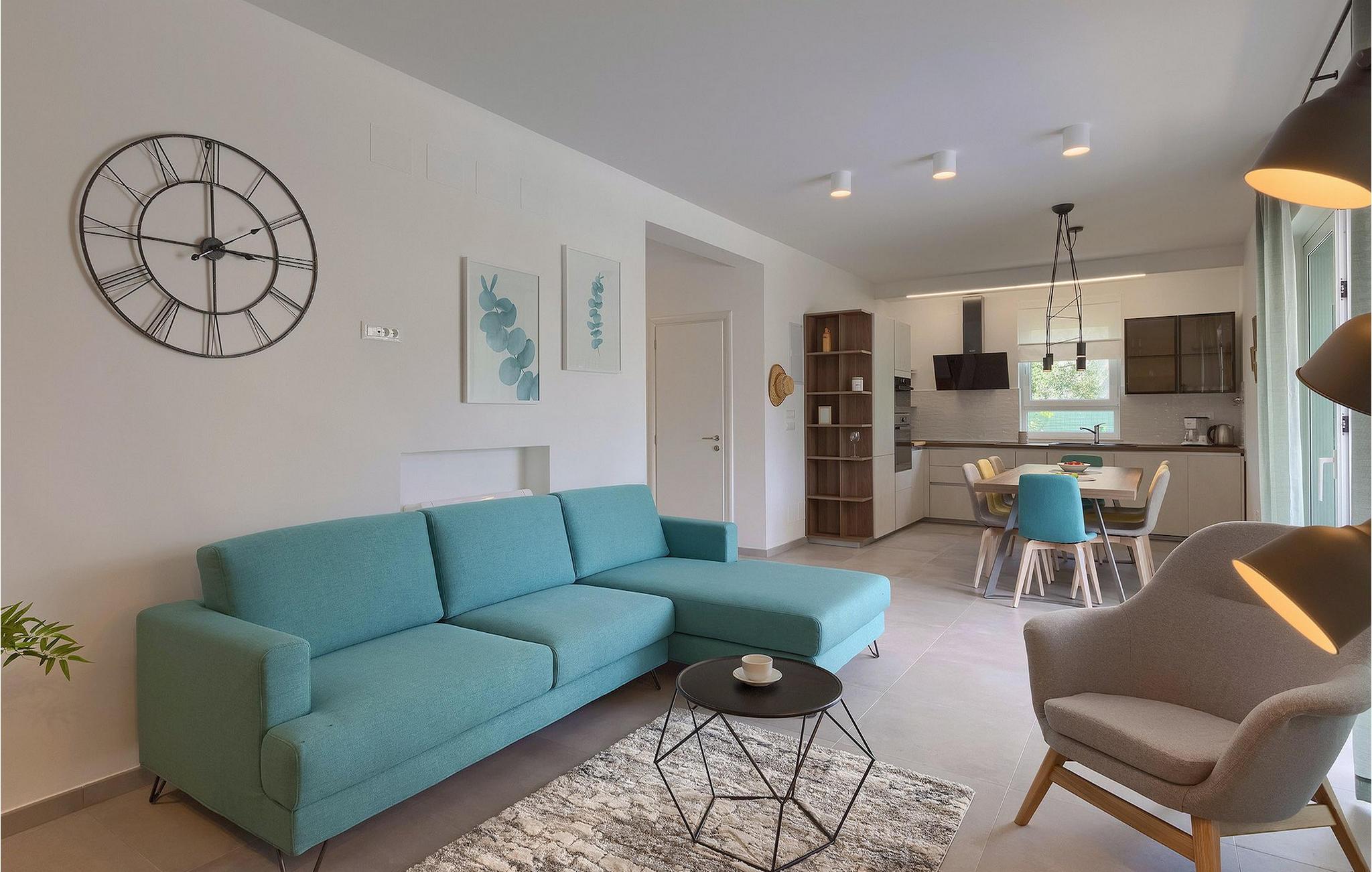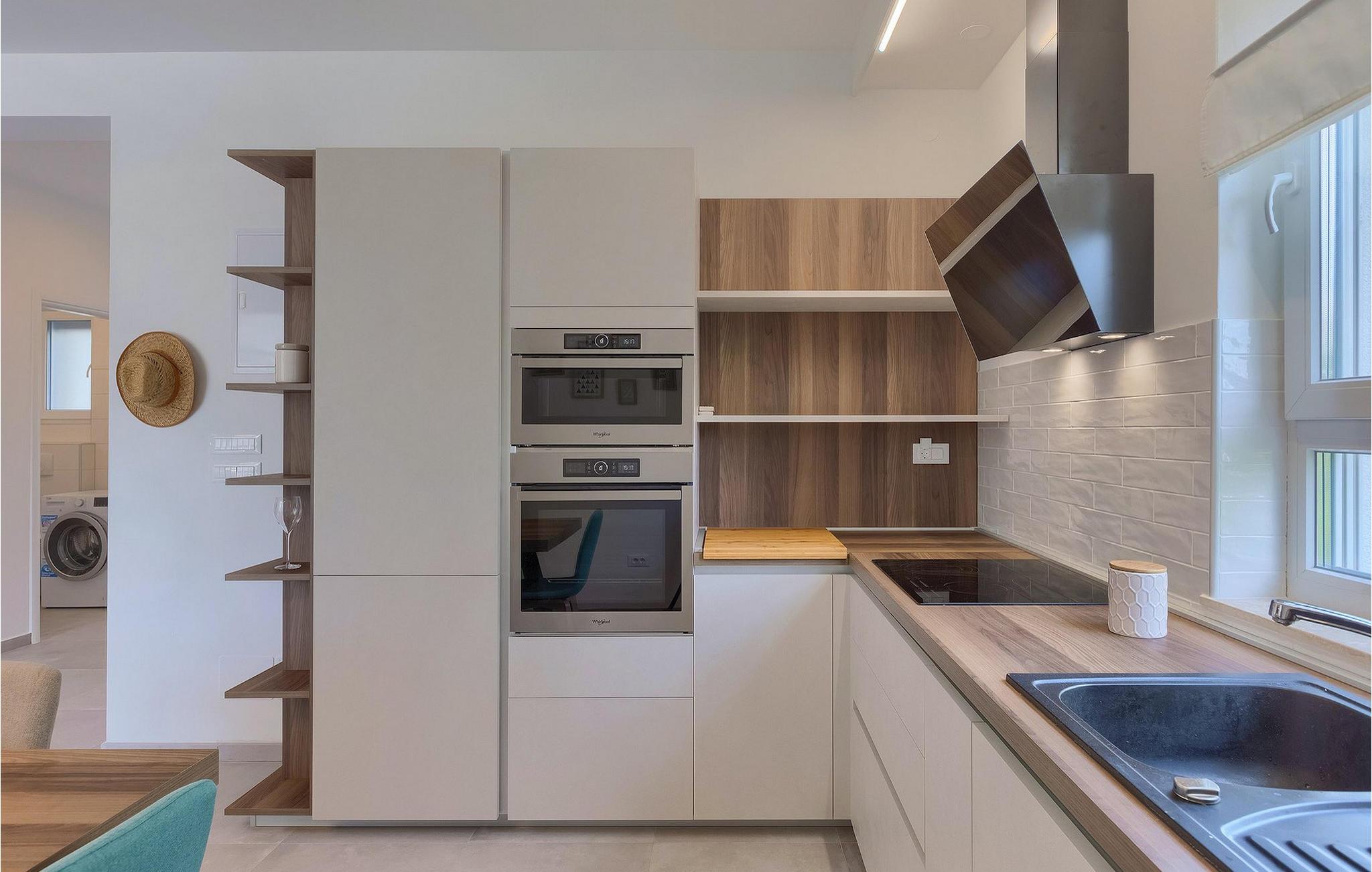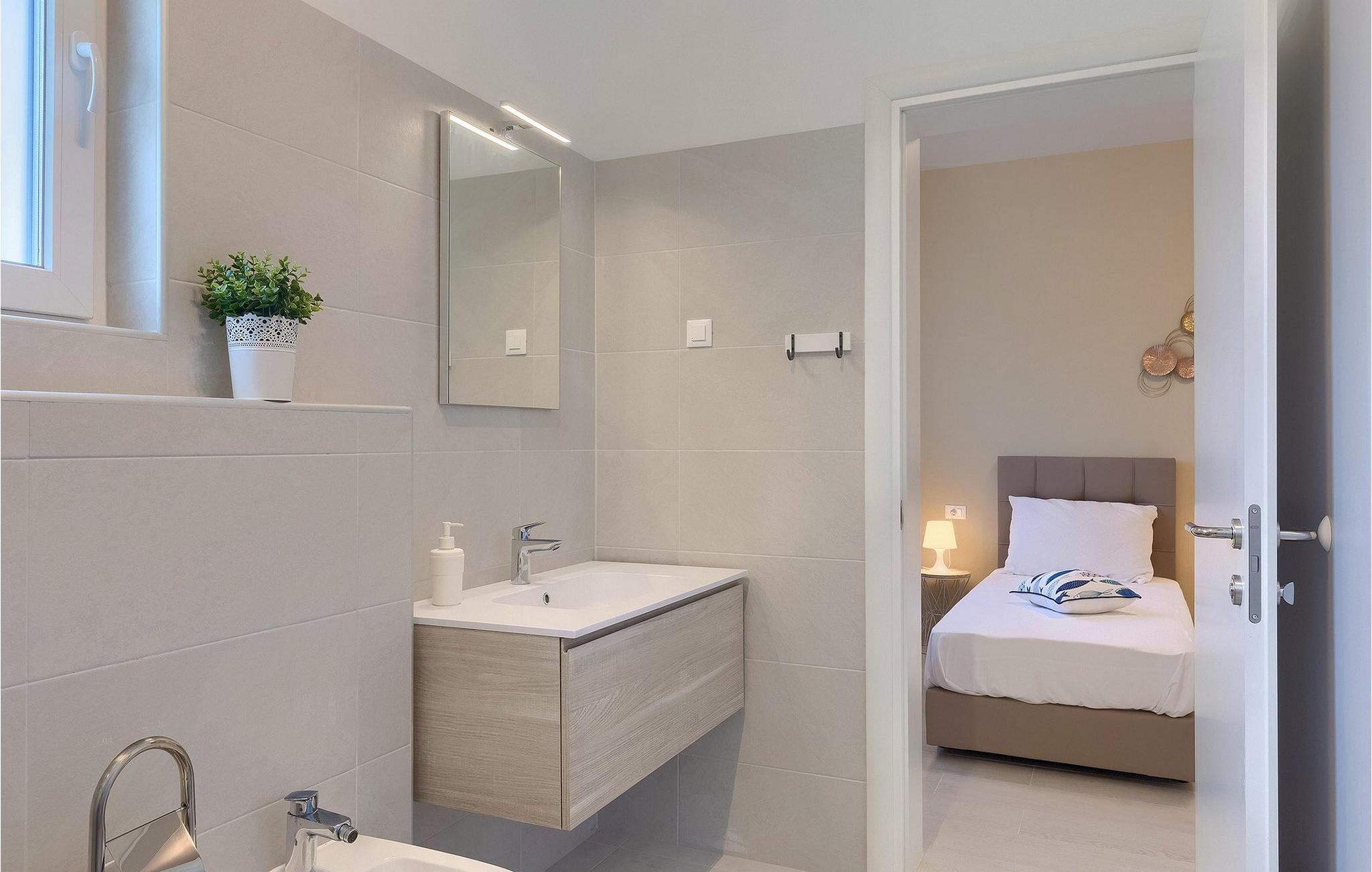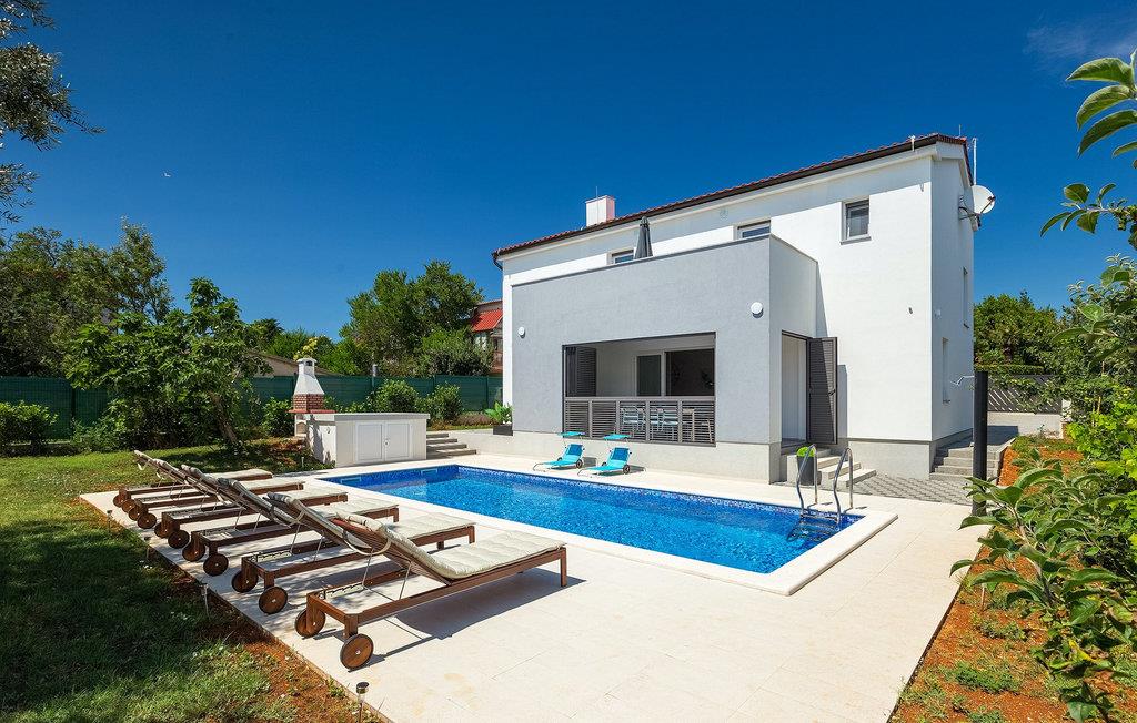 Die moderne Villa Elica ist die richtige Wahl, wenn Sie einen ruhigen Urlaub in der Nähe des Meeres im ruhigeren Teil des schönen Medulin verbringen möchten, besonders geeignet für Familien mit jüngeren Kindern. Villa Elica bietet Platz für bis zu 8 Personen. Das moderne Interieur bietet 4 komfortable, sonnendurchflutete Zimmer, die jeweils in verschiedenen dezenten Farben dekoriert sind was eine individuelle Note verleiht. Eines der Schlafzimmer verfügt über 2 Einzelbetten und befindet sich im Erdgeschoss. Die 3 anderen Schlafzimmer sind mit Doppelbetten ausgestattet und befinden sich im 1. Stock. Alle Schlafzimmer sind mit einem eigenen Bad ausgestattet.