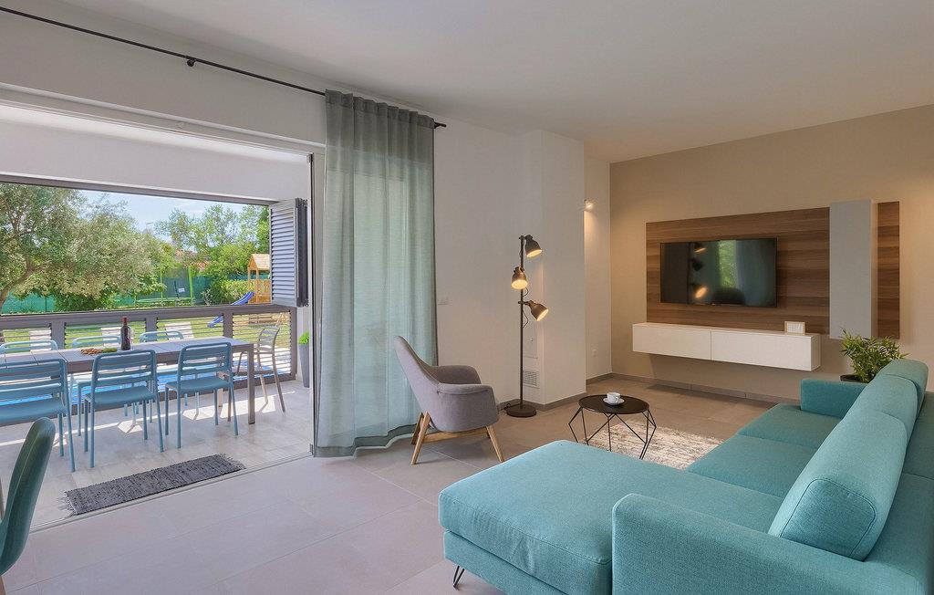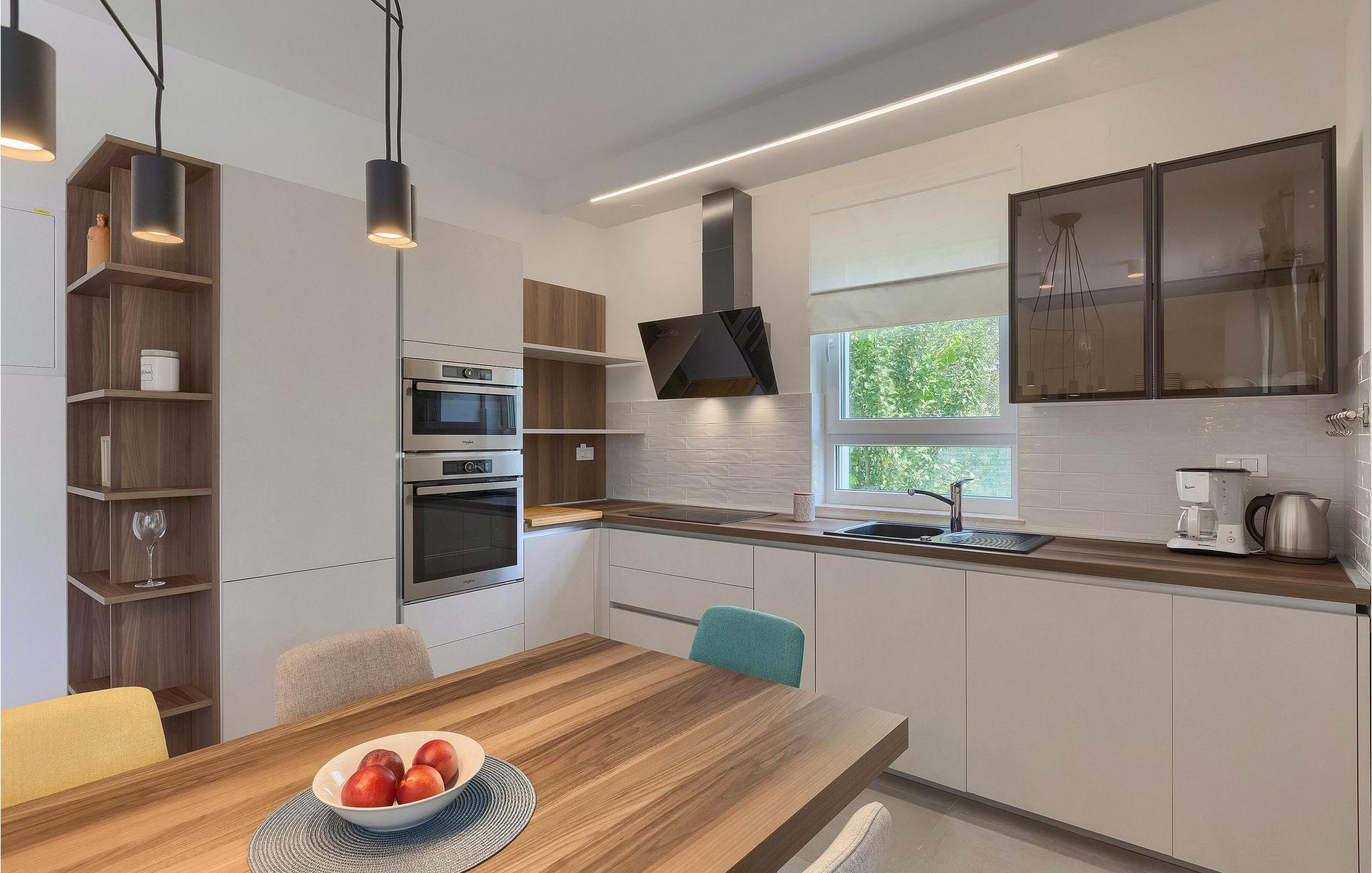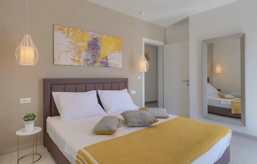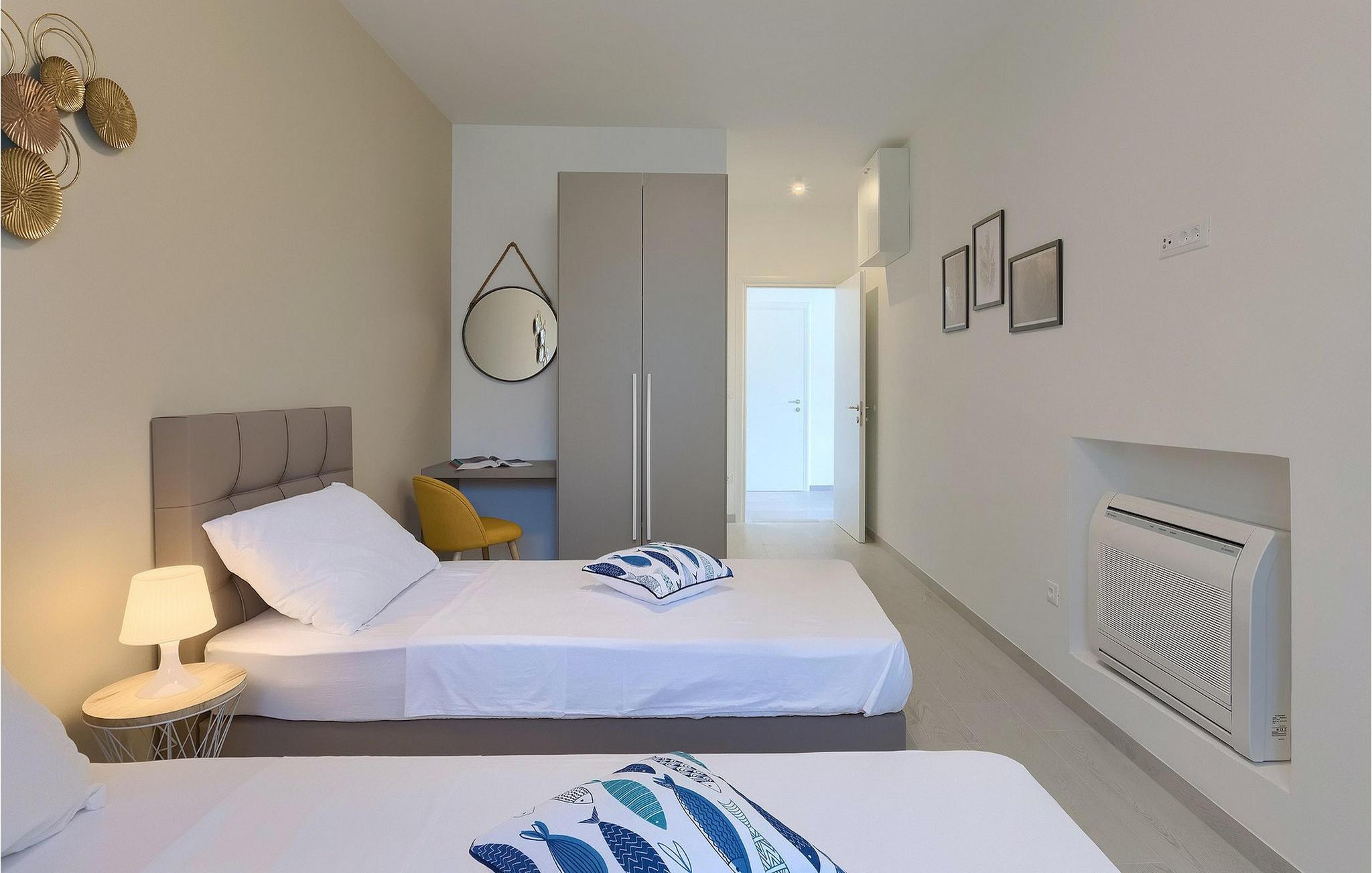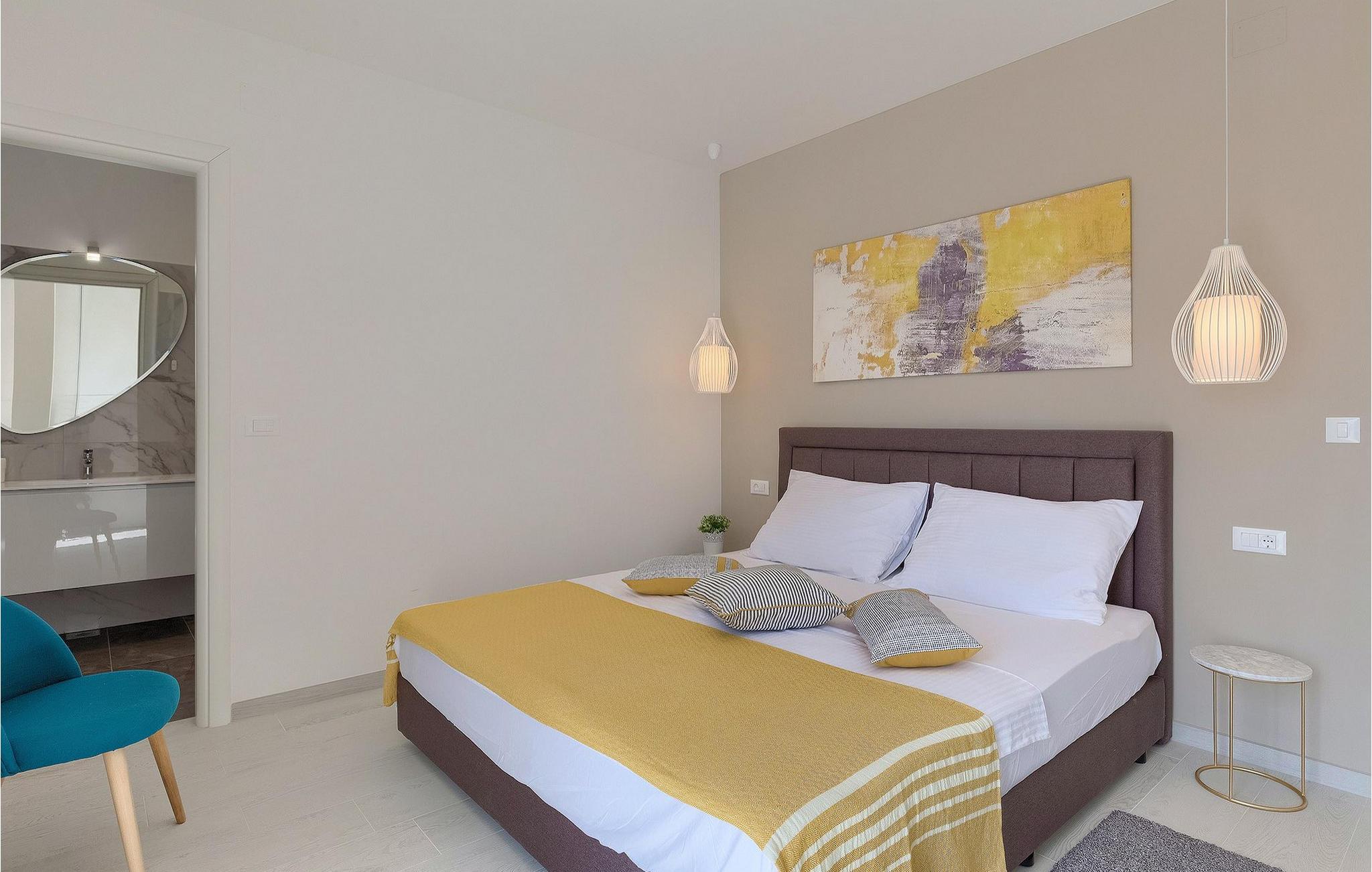 Die moderne Villa Elica ist die richtige Wahl, wenn Sie einen ruhigen Urlaub in der Nähe des Meeres im ruhigeren Teil des schönen Medulin verbringen möchten, besonders geeignet für Familien mit jüngeren Kindern. Villa Elica bietet Platz für bis zu 8 Personen. Das moderne Interieur bietet 4 komfortable, sonnendurchflutete Zimmer, die jeweils in verschiedenen dezenten Farben dekoriert sind was eine individuelle Note verleiht. Eines der Schlafzimmer verfügt über 2 Einzelbetten und befindet sich im Erdgeschoss. Die 3 anderen Schlafzimmer sind mit Doppelbetten ausgestattet und befinden sich im 1. Stock. Alle Schlafzimmer sind mit einem eigenen Bad ausgestattet.