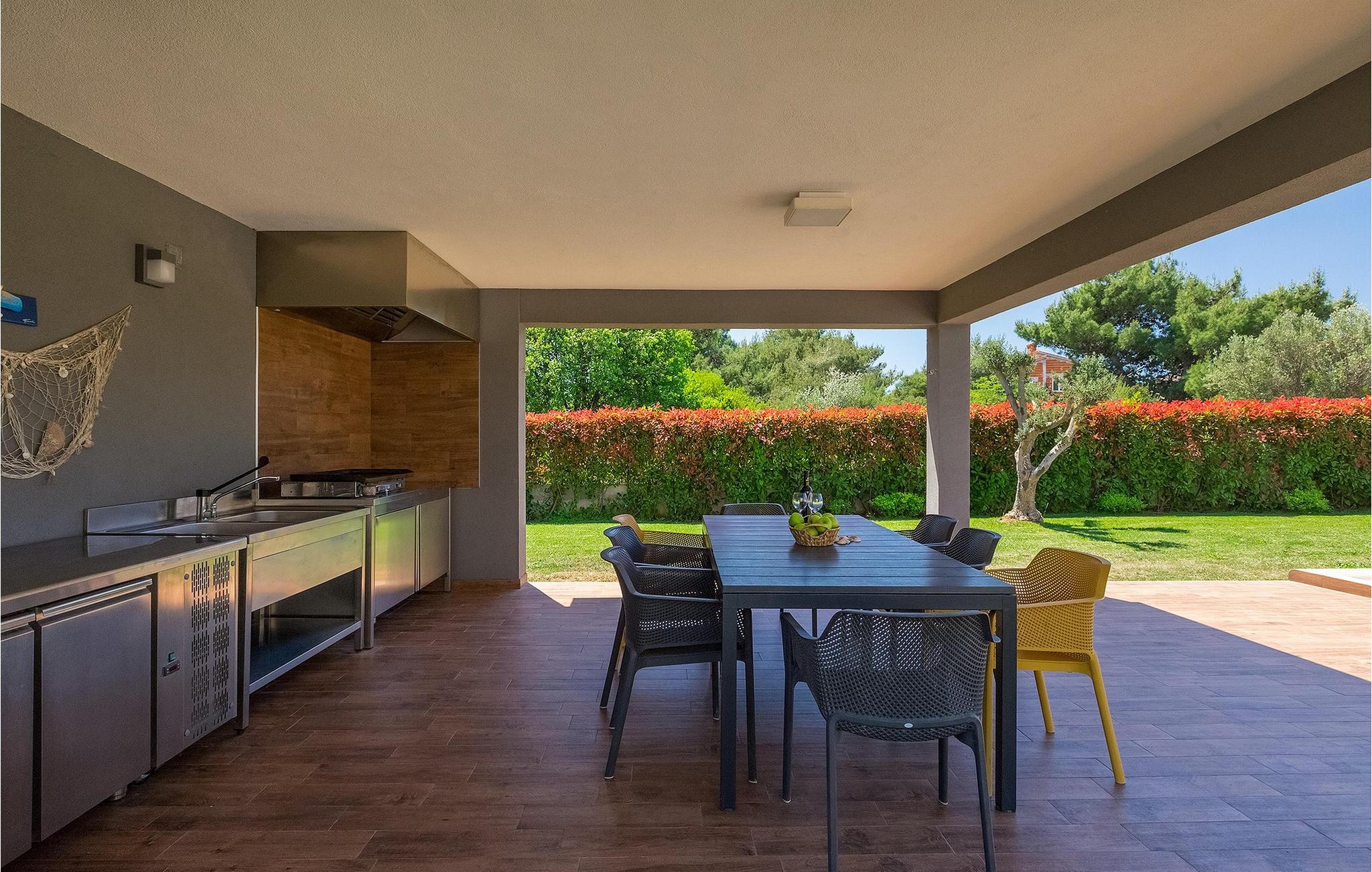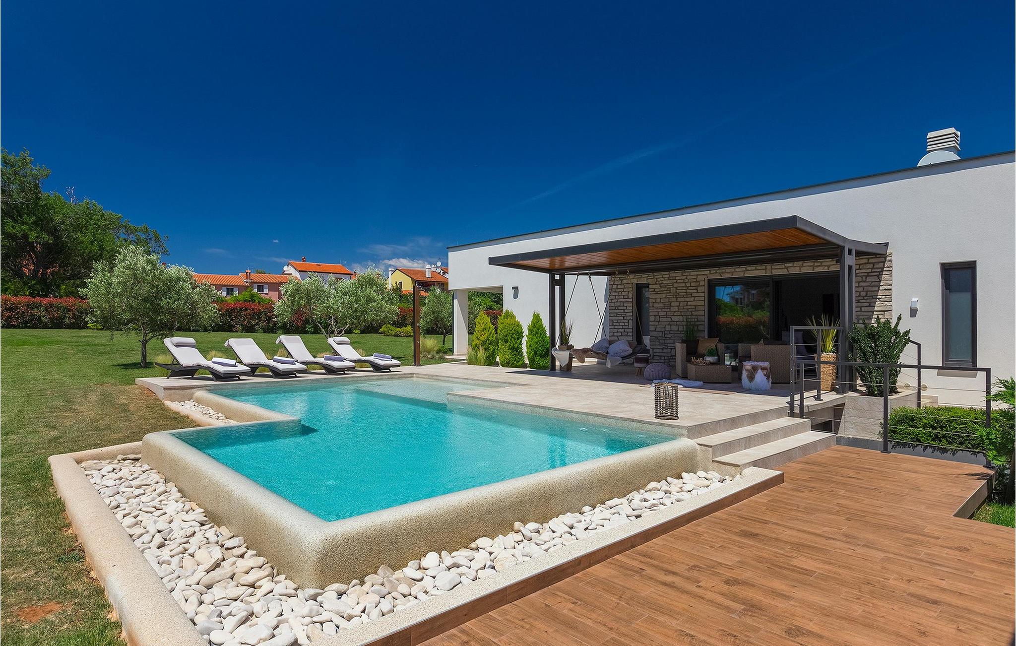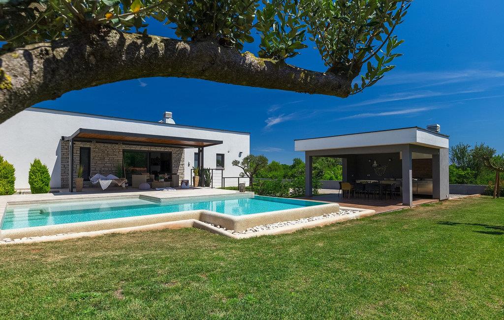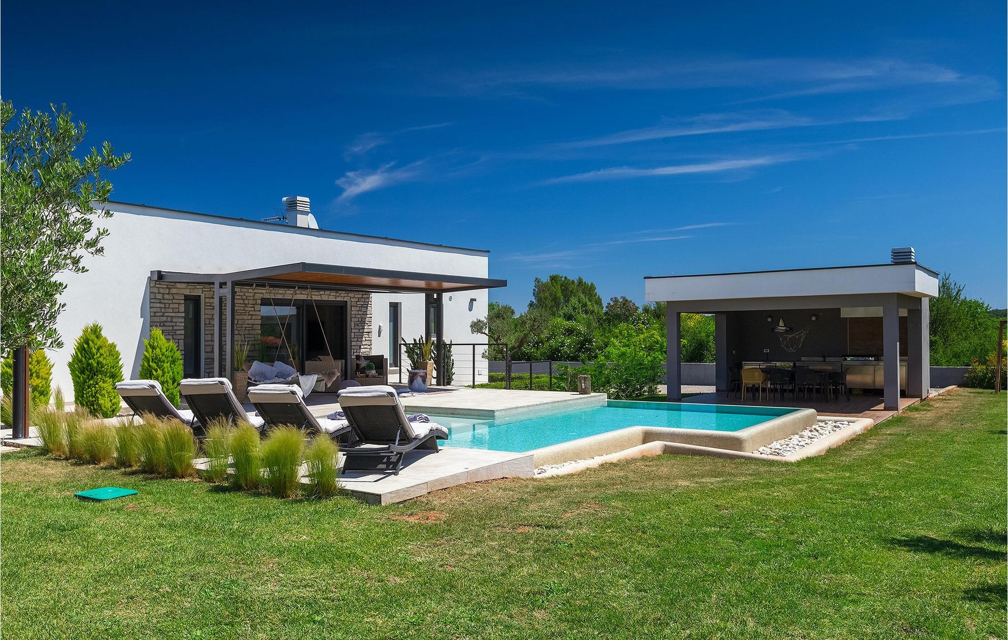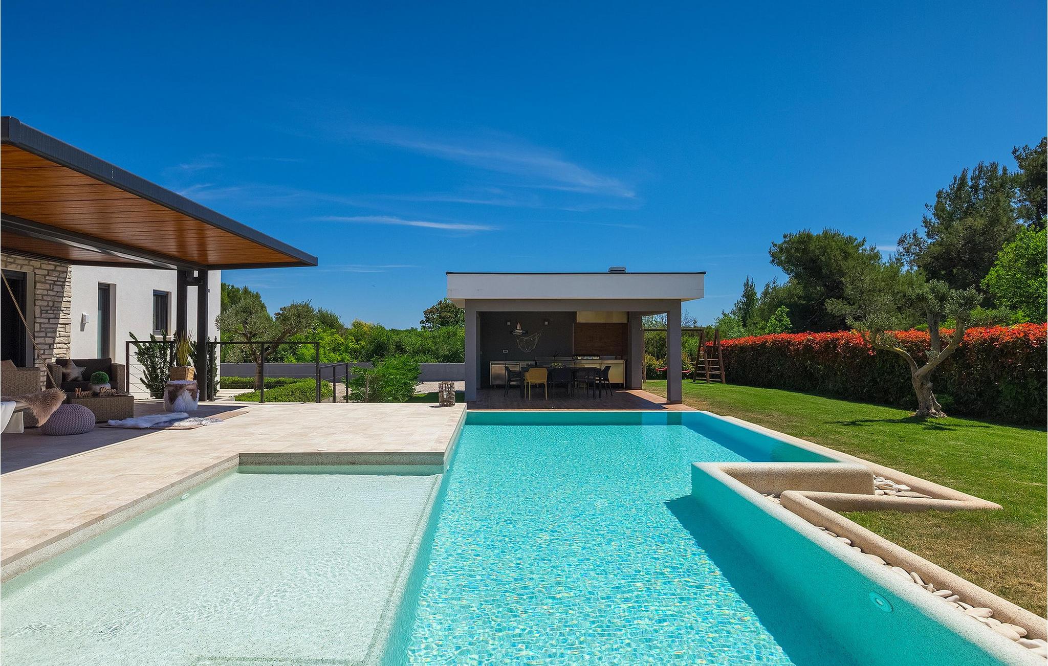 Die Villa Momare liegt in einem ruhigen Teil von Medulin, in der Nähe des türkisblauen Adriatischen Meeres. Diese Gegend ist bekannt für schöne Sandstrände, so dass Sie begeistert sein werden, dass der nächstgelegene Strand zu Fuß erreicht werden kann. Mit einer Gesamtwohnfläche von 180 Quadratmetern bietet es Platz für bis zu 6 Personen und eine liebevolle Inneneinrichtung. Das Interieur ist wirklich ein besonderer Anblick, da jeder Zentimeter der Villa mit viel Liebe und Sorgfalt eingerichtet wurde. Die Villa ist modern und komplett ausgestattet, um Ihren Urlaub noch schöner zu machen. Die Villa besteht aus einem modernen Wohnbereich, einem Essbereich und einer voll ausgestatteten Küche. Die Villa verfügt über 3 luxuriöse Doppelschlafzimmer mit eigenen Badezimmern. Im Außenbereich befinden sich ein einladender Pool sowie hochwertige Sonnenliegen, auf denen Sie die warme Sonne Istriens genießen können. Nur wenige Schritte entfernt befindet sich eine überdachte und gut ausgestattete Sommerküche mit einem Gasgrill. Dies ist der perfekte Ort für ein entspanntes Familientreffen. Während Sie die Gesellschaft Ihrer zum Essen eingeladenen Freunde genießen, können Ihre Kinder im Garten auf der Schaukel spielen. Die Villa ist die perfekte Wahl für Familien und Gruppen von Freunden.