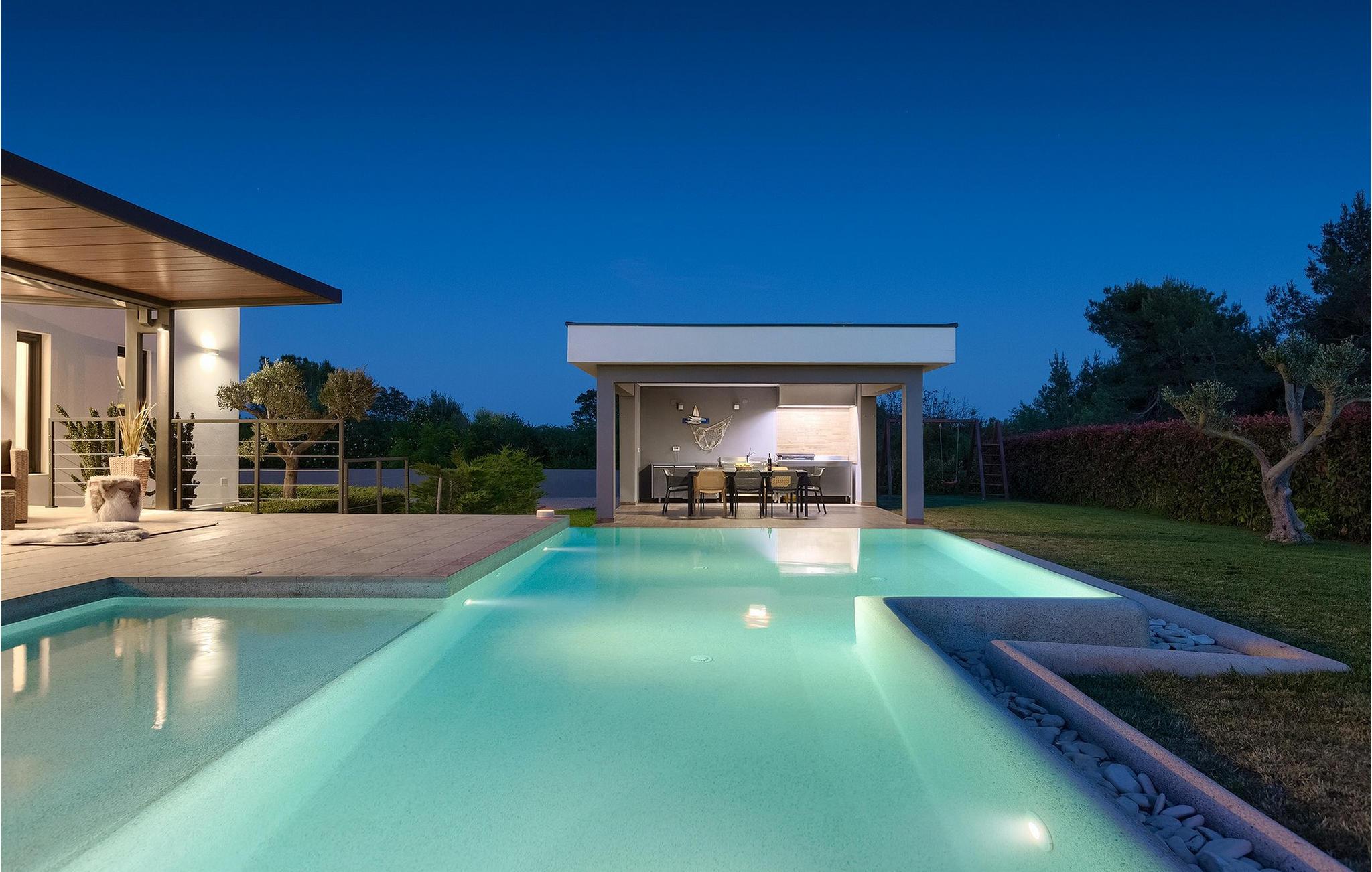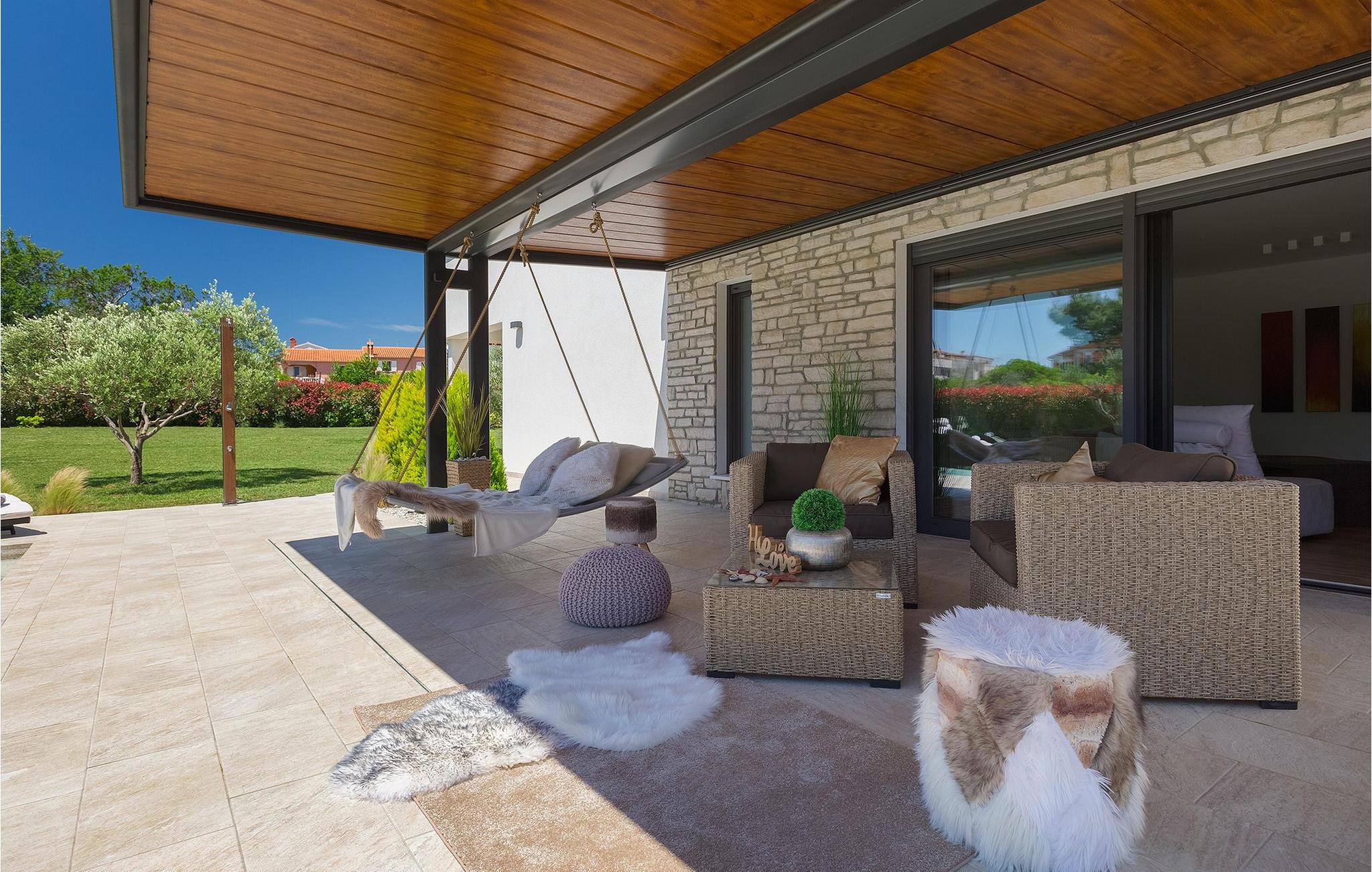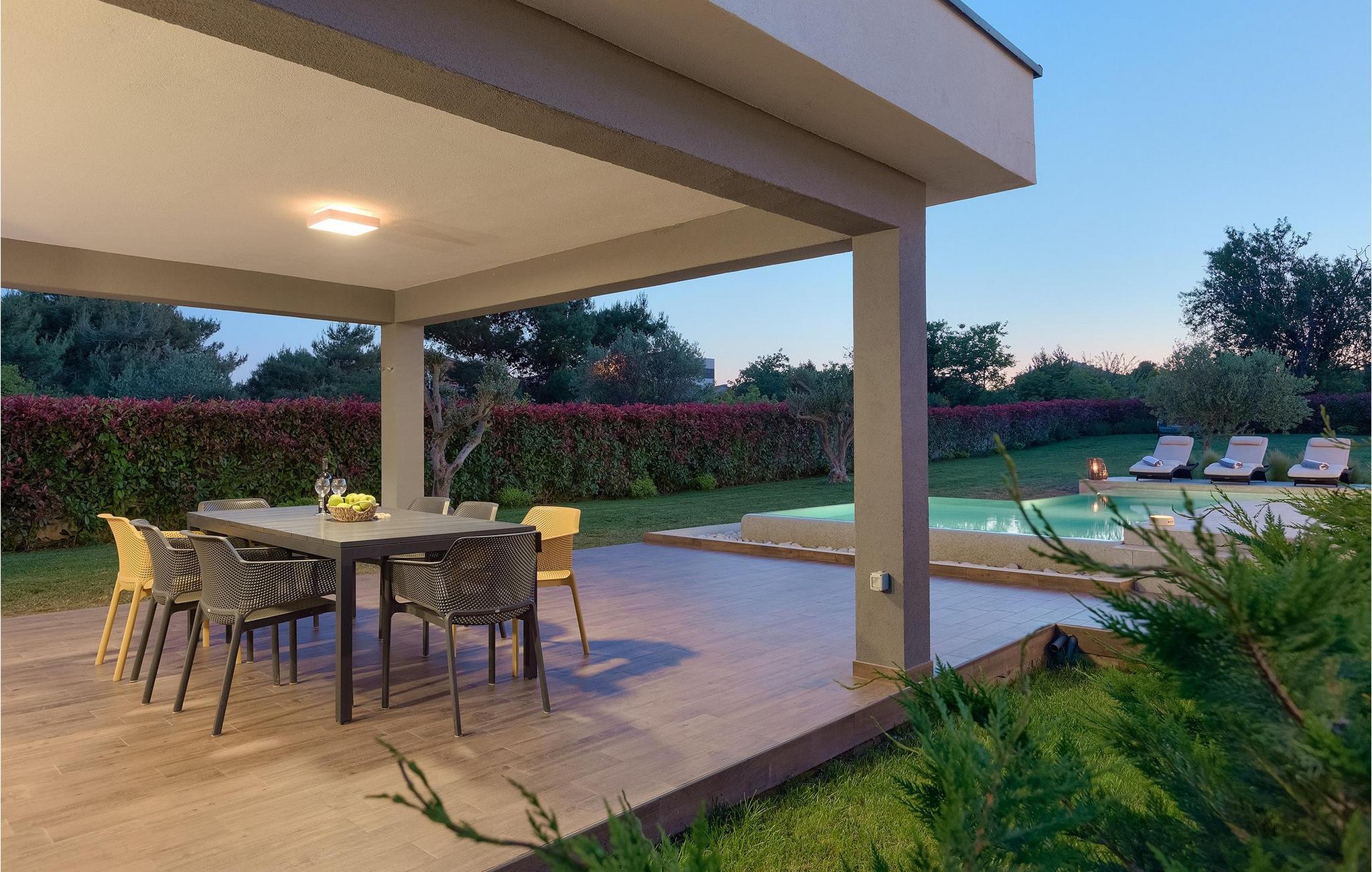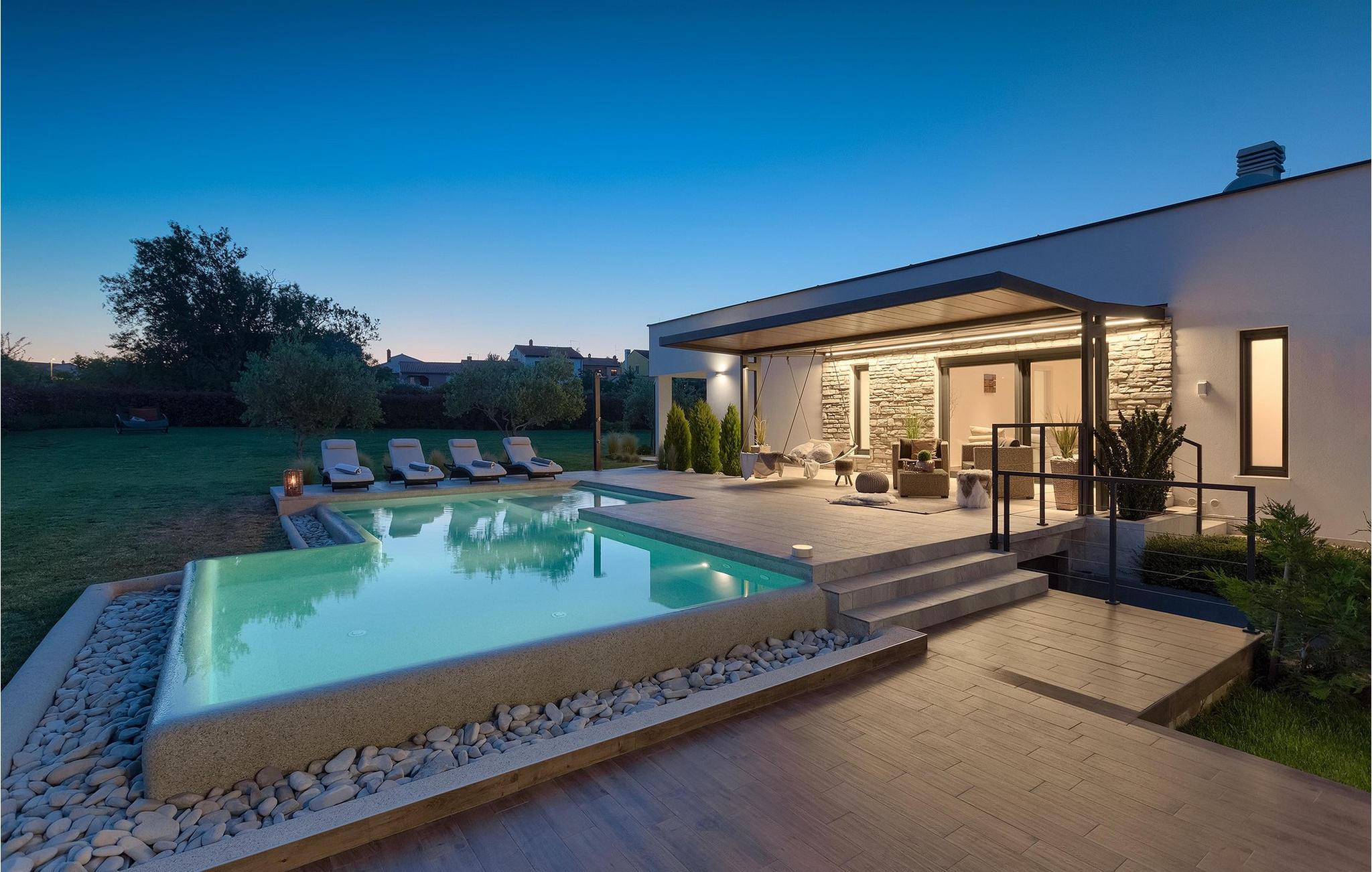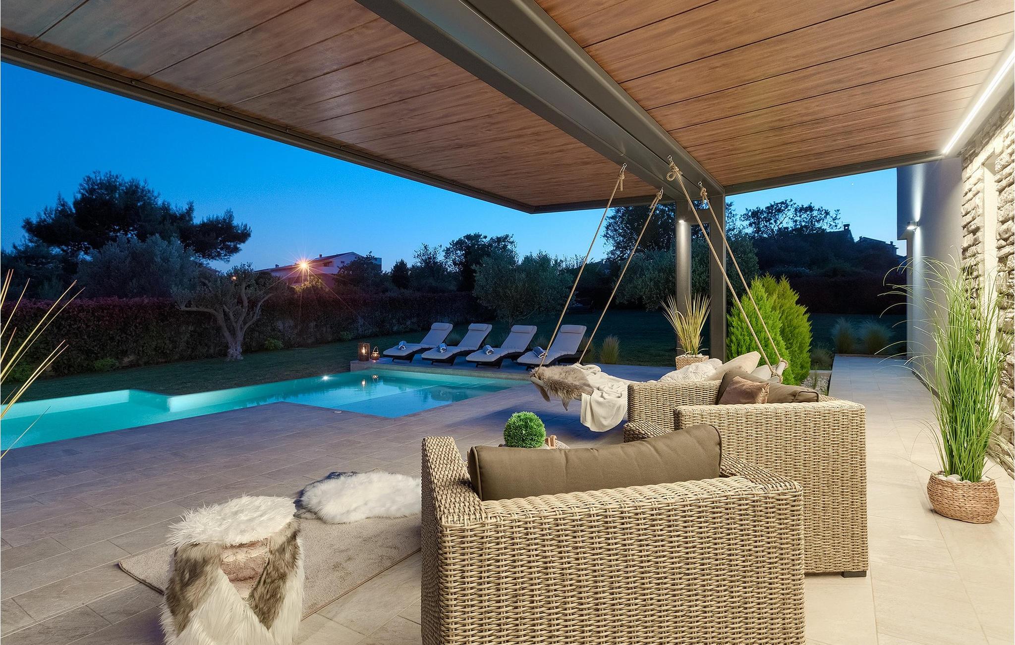 Die Villa Momare liegt in einem ruhigen Teil von Medulin, in der Nähe des türkisblauen Adriatischen Meeres. Diese Gegend ist bekannt für schöne Sandstrände, so dass Sie begeistert sein werden, dass der nächstgelegene Strand zu Fuß erreicht werden kann. Mit einer Gesamtwohnfläche von 180 Quadratmetern bietet es Platz für bis zu 6 Personen und eine liebevolle Inneneinrichtung. Das Interieur ist wirklich ein besonderer Anblick, da jeder Zentimeter der Villa mit viel Liebe und Sorgfalt eingerichtet wurde. Die Villa ist modern und komplett ausgestattet, um Ihren Urlaub noch schöner zu machen. Die Villa besteht aus einem modernen Wohnbereich, einem Essbereich und einer voll ausgestatteten Küche. Die Villa verfügt über 3 luxuriöse Doppelschlafzimmer mit eigenen Badezimmern. Im Außenbereich befinden sich ein einladender Pool sowie hochwertige Sonnenliegen, auf denen Sie die warme Sonne Istriens genießen können. Nur wenige Schritte entfernt befindet sich eine überdachte und gut ausgestattete Sommerküche mit einem Gasgrill. Dies ist der perfekte Ort für ein entspanntes Familientreffen. Während Sie die Gesellschaft Ihrer zum Essen eingeladenen Freunde genießen, können Ihre Kinder im Garten auf der Schaukel spielen. Die Villa ist die perfekte Wahl für Familien und Gruppen von Freunden.