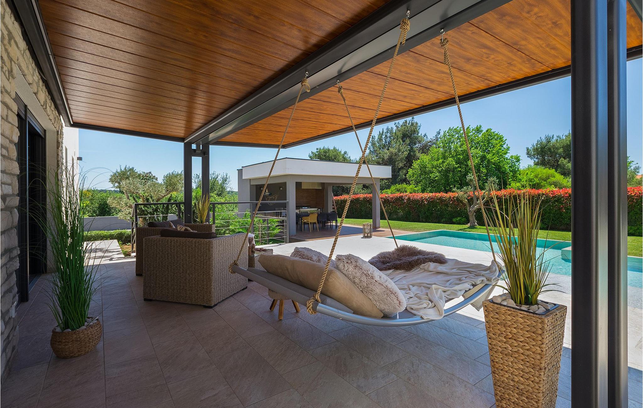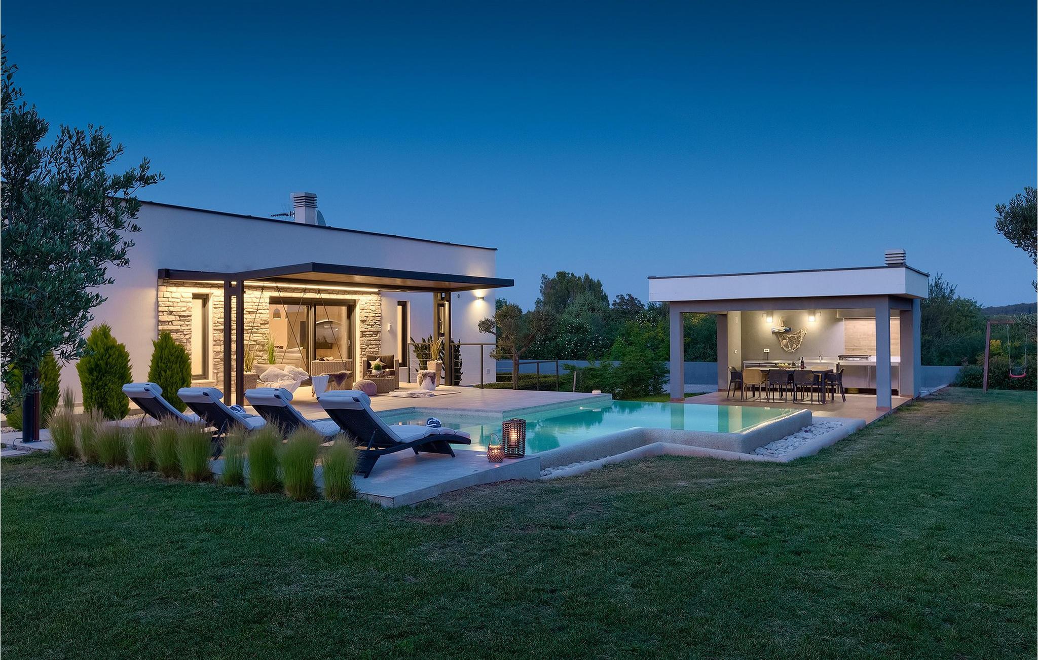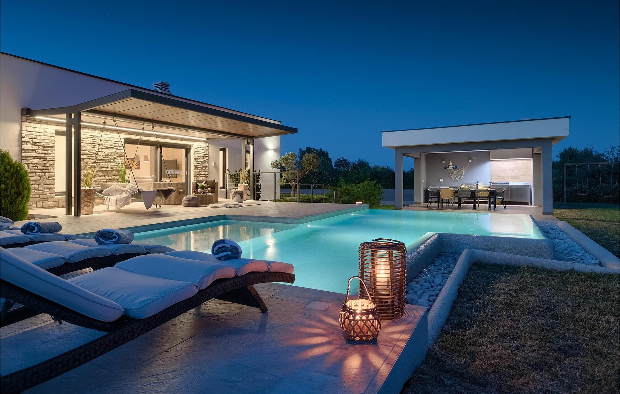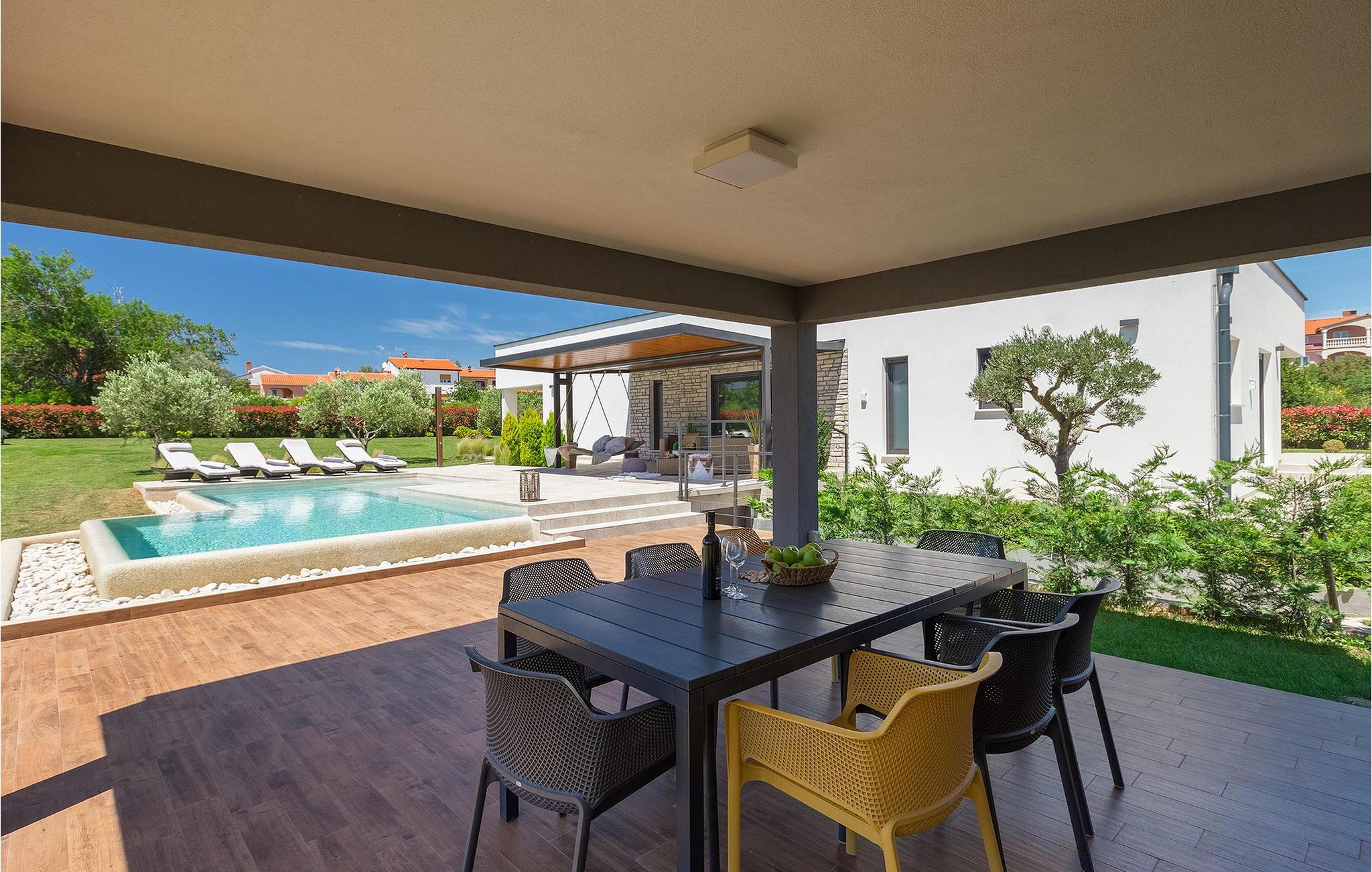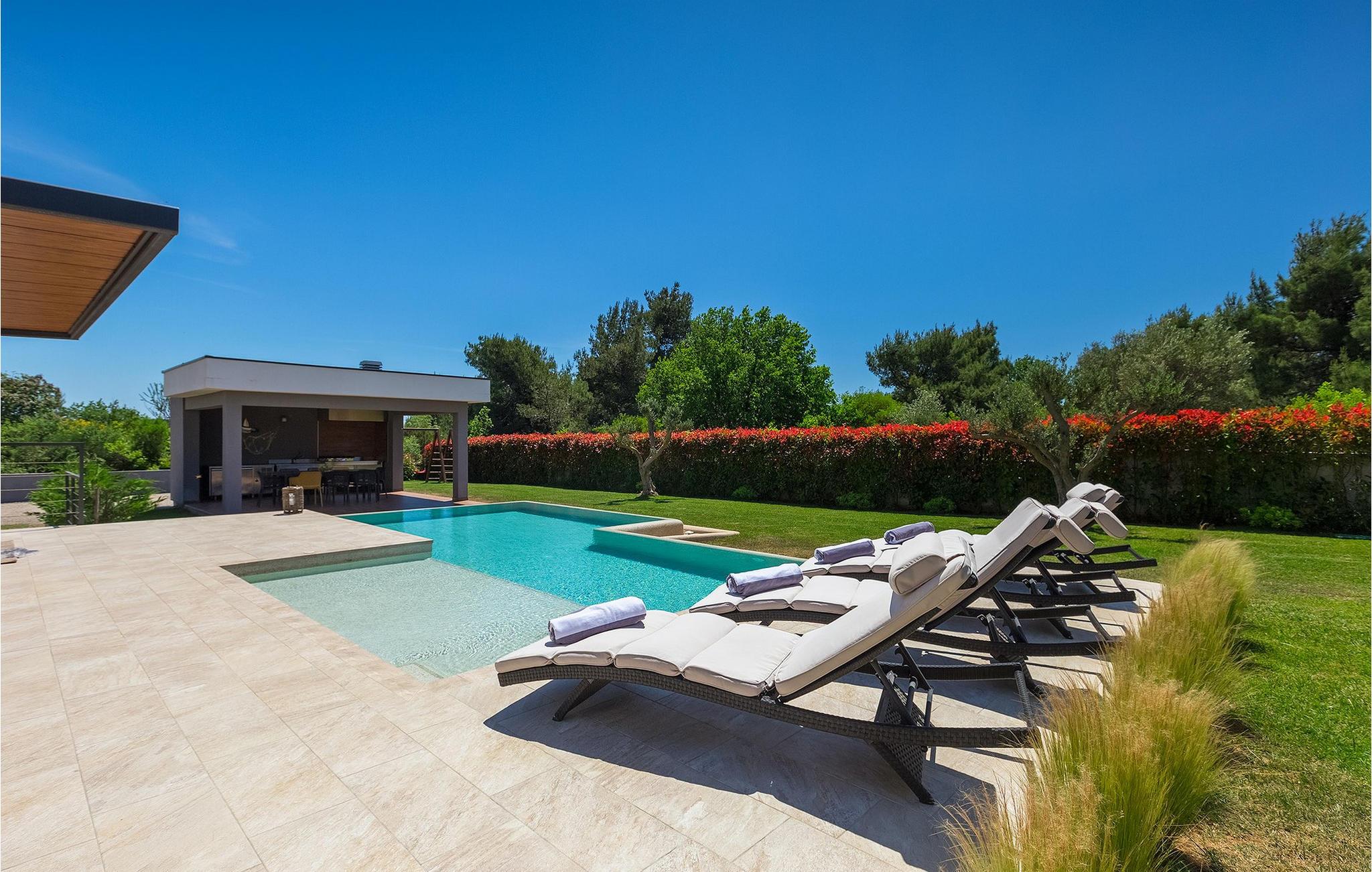Die Villa Momare liegt in einem ruhigen Teil von Medulin, in der Nähe des türkisblauen Adriatischen Meeres. Diese Gegend ist bekannt für schöne Sandstrände, so dass Sie begeistert sein werden, dass der nächstgelegene Strand zu Fuß erreicht werden kann. Mit einer Gesamtwohnfläche von 180 Quadratmetern bietet es Platz für bis zu 6 Personen und eine liebevolle Inneneinrichtung. Das Interieur ist wirklich ein besonderer Anblick, da jeder Zentimeter der Villa mit viel Liebe und Sorgfalt eingerichtet wurde. Die Villa ist modern und komplett ausgestattet, um Ihren Urlaub noch schöner zu machen. Die Villa besteht aus einem modernen Wohnbereich, einem Essbereich und einer voll ausgestatteten Küche. Die Villa verfügt über 3 luxuriöse Doppelschlafzimmer mit eigenen Badezimmern. Im Außenbereich befinden sich ein einladender Pool sowie hochwertige Sonnenliegen, auf denen Sie die warme Sonne Istriens genießen können. Nur wenige Schritte entfernt befindet sich eine überdachte und gut ausgestattete Sommerküche mit einem Gasgrill. Dies ist der perfekte Ort für ein entspanntes Familientreffen. Während Sie die Gesellschaft Ihrer zum Essen eingeladenen Freunde genießen, können Ihre Kinder im Garten auf der Schaukel spielen. Die Villa ist die perfekte Wahl für Familien und Gruppen von Freunden.