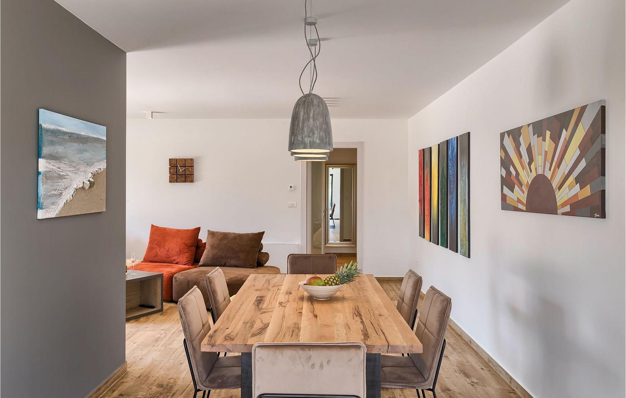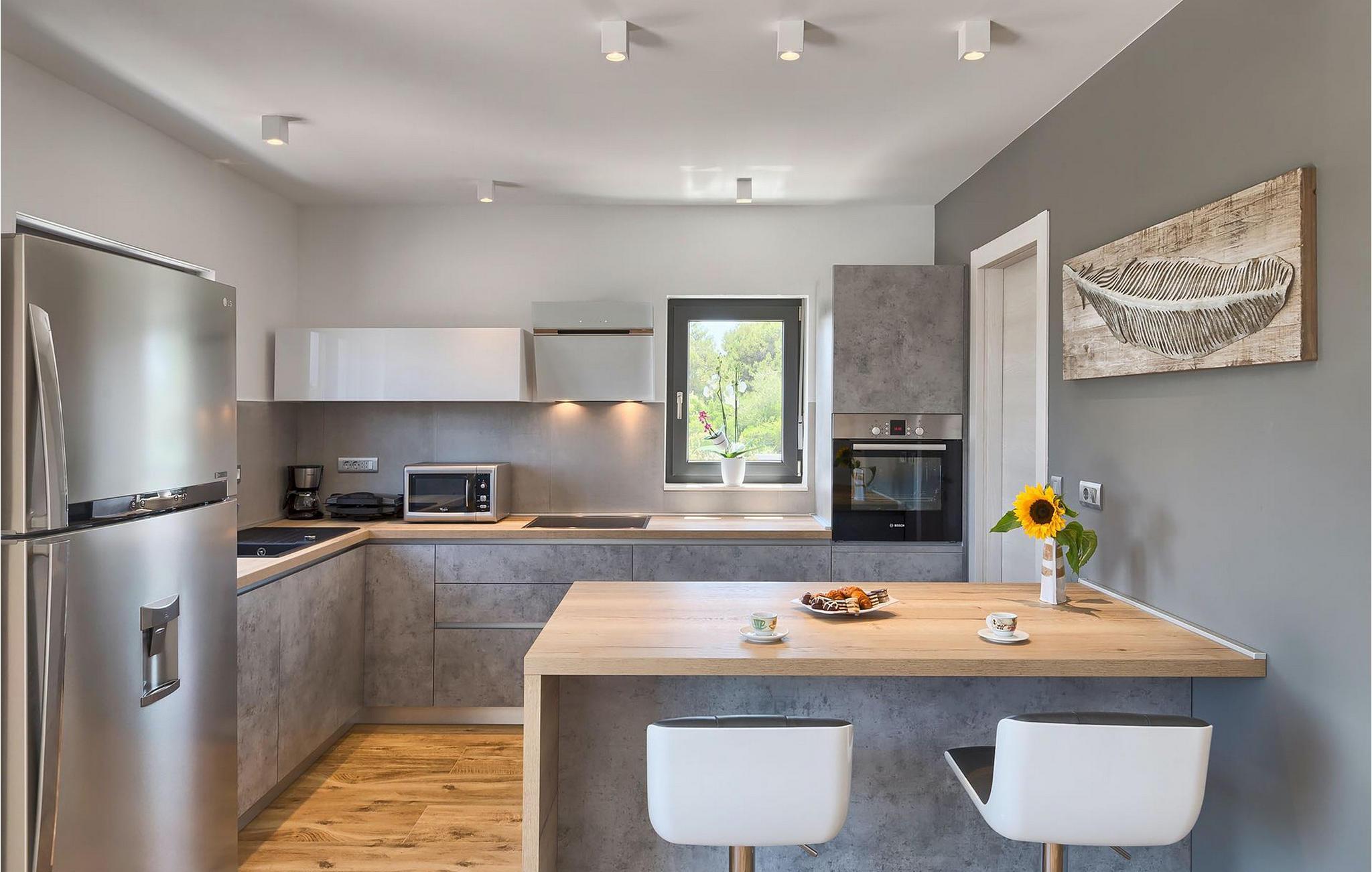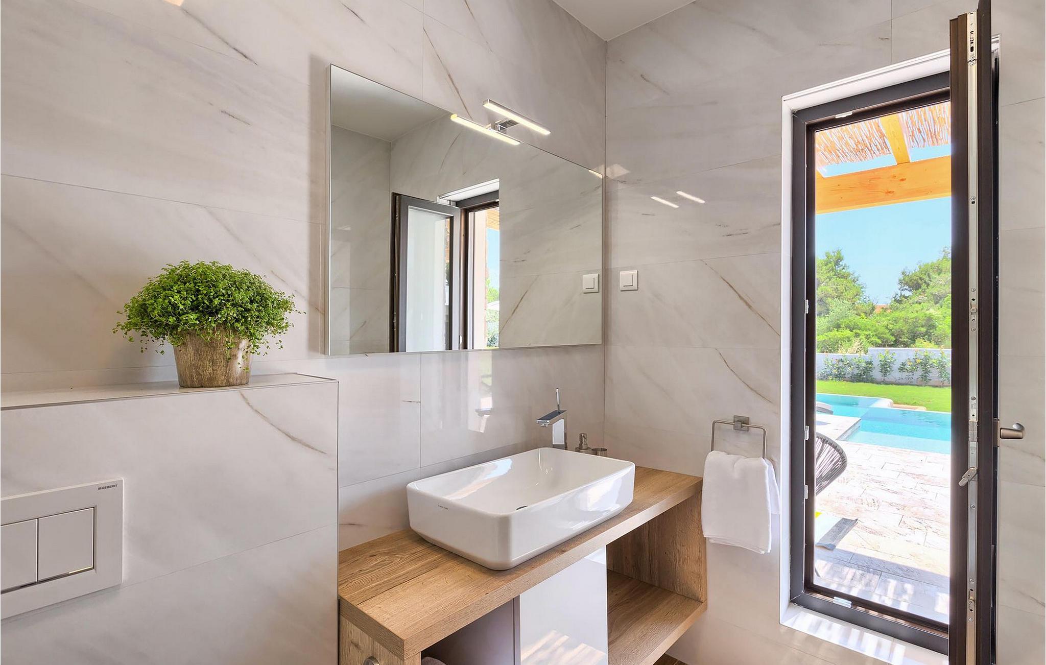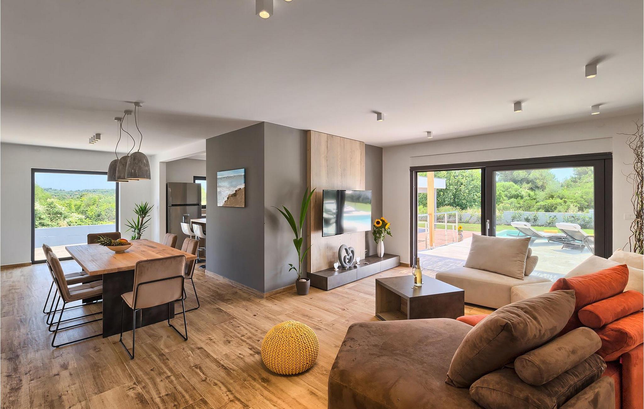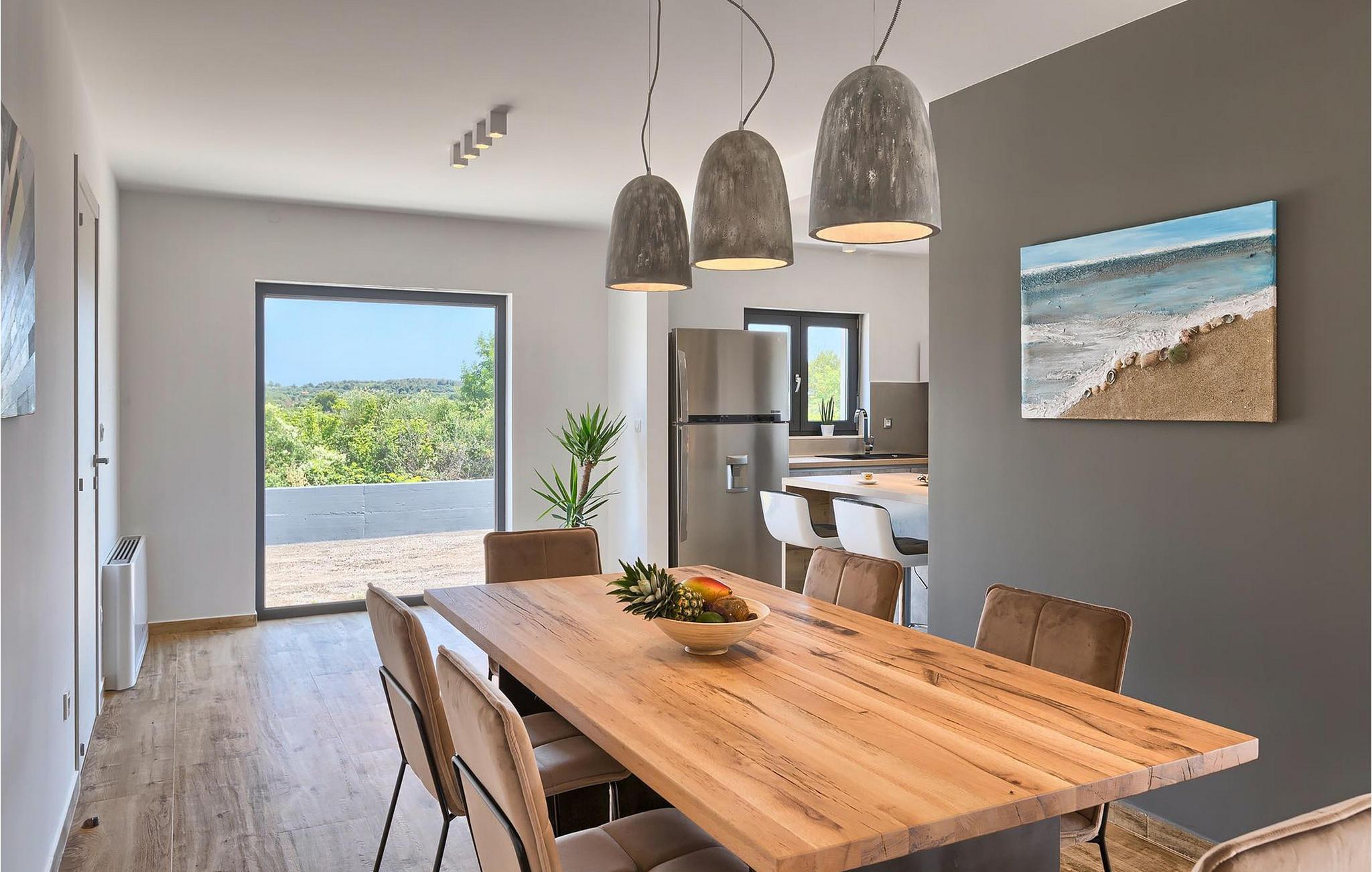 Die Villa Momare liegt in einem ruhigen Teil von Medulin, in der Nähe des türkisblauen Adriatischen Meeres. Diese Gegend ist bekannt für schöne Sandstrände, so dass Sie begeistert sein werden, dass der nächstgelegene Strand zu Fuß erreicht werden kann. Mit einer Gesamtwohnfläche von 180 Quadratmetern bietet es Platz für bis zu 6 Personen und eine liebevolle Inneneinrichtung. Das Interieur ist wirklich ein besonderer Anblick, da jeder Zentimeter der Villa mit viel Liebe und Sorgfalt eingerichtet wurde. Die Villa ist modern und komplett ausgestattet, um Ihren Urlaub noch schöner zu machen. Die Villa besteht aus einem modernen Wohnbereich, einem Essbereich und einer voll ausgestatteten Küche. Die Villa verfügt über 3 luxuriöse Doppelschlafzimmer mit eigenen Badezimmern. Im Außenbereich befinden sich ein einladender Pool sowie hochwertige Sonnenliegen, auf denen Sie die warme Sonne Istriens genießen können. Nur wenige Schritte entfernt befindet sich eine überdachte und gut ausgestattete Sommerküche mit einem Gasgrill. Dies ist der perfekte Ort für ein entspanntes Familientreffen. Während Sie die Gesellschaft Ihrer zum Essen eingeladenen Freunde genießen, können Ihre Kinder im Garten auf der Schaukel spielen. Die Villa ist die perfekte Wahl für Familien und Gruppen von Freunden.
