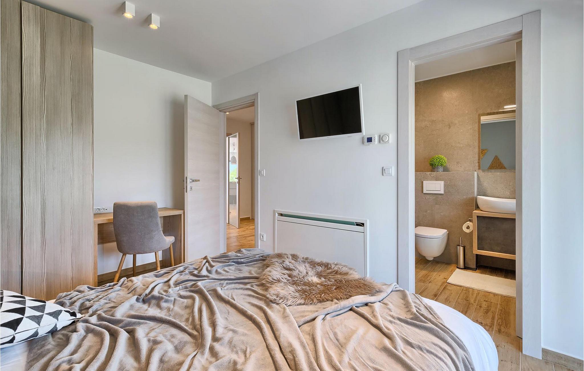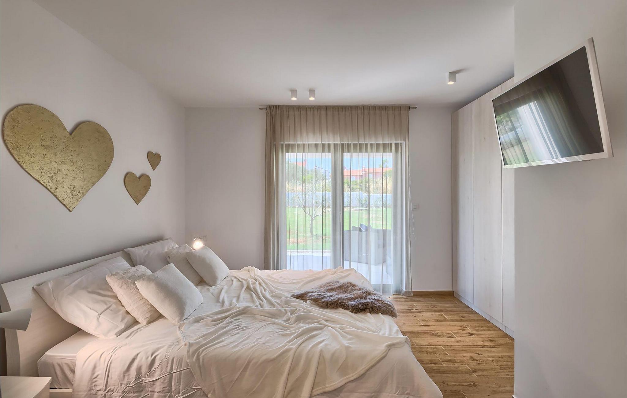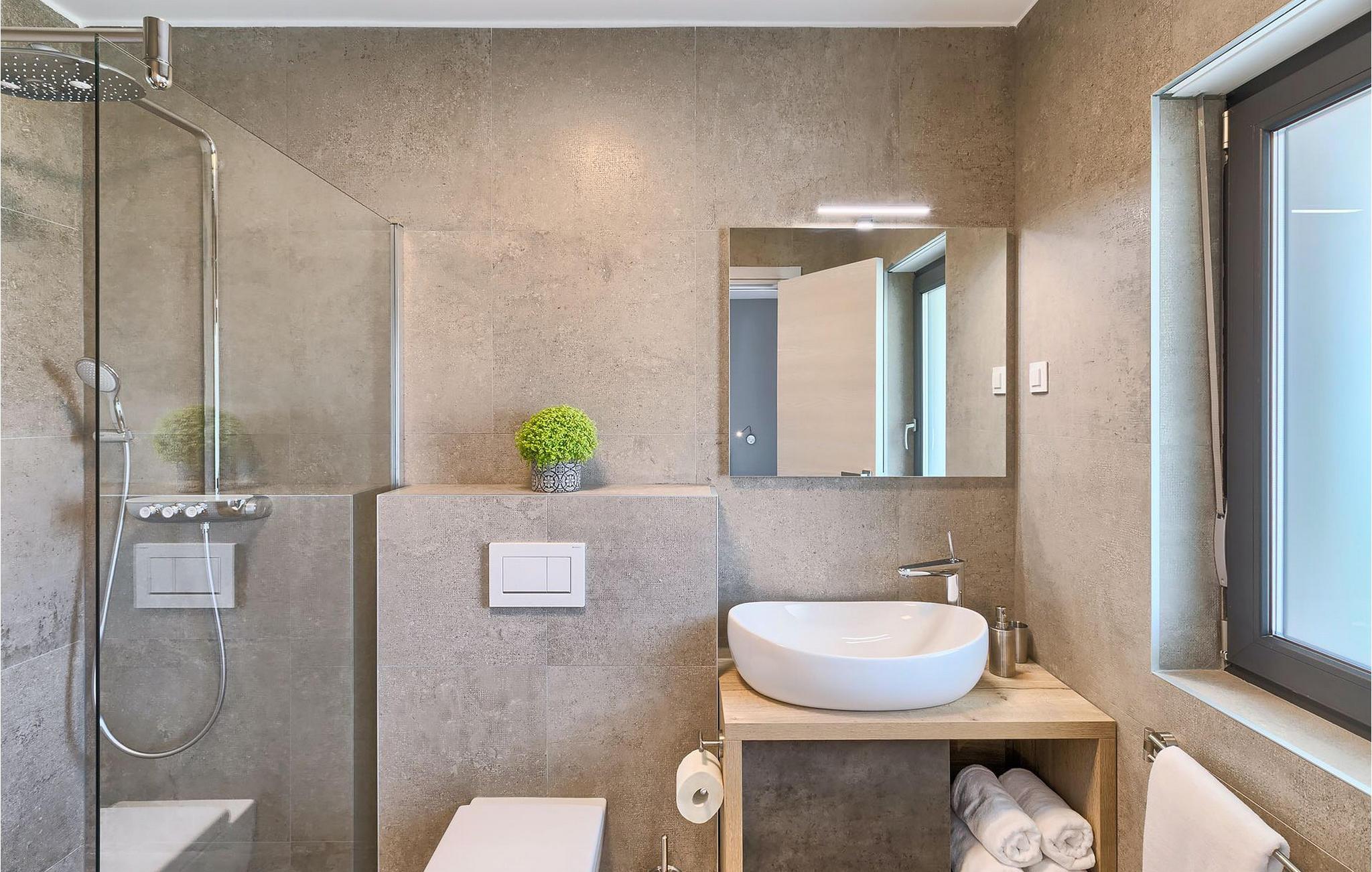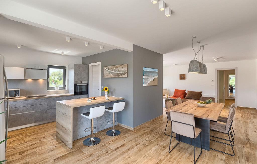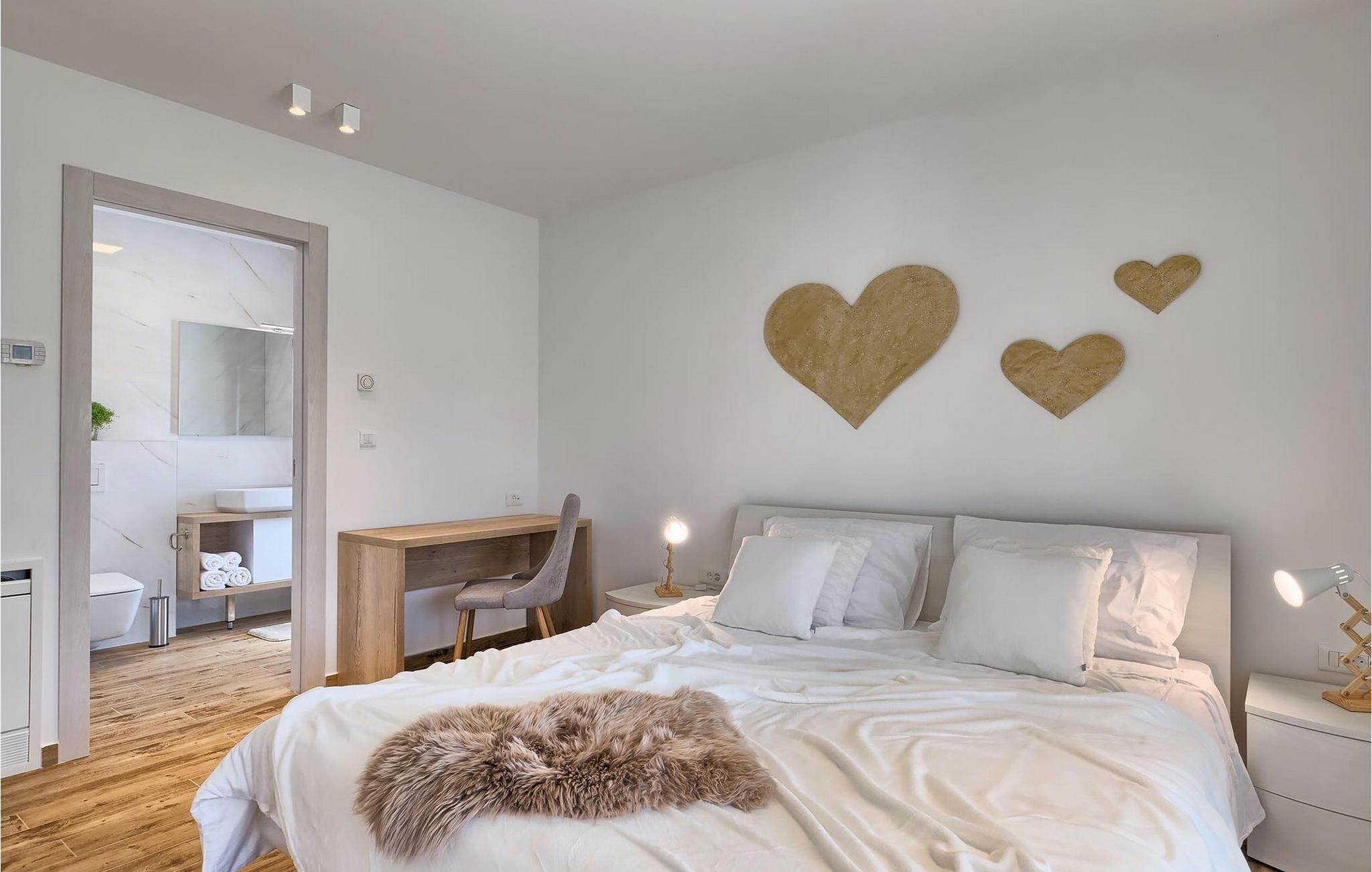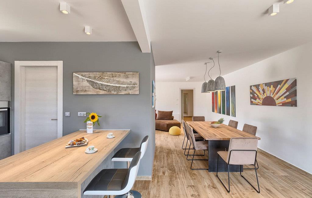 Die Villa Momare liegt in einem ruhigen Teil von Medulin, in der Nähe des türkisblauen Adriatischen Meeres. Diese Gegend ist bekannt für schöne Sandstrände, so dass Sie begeistert sein werden, dass der nächstgelegene Strand zu Fuß erreicht werden kann. Mit einer Gesamtwohnfläche von 180 Quadratmetern bietet es Platz für bis zu 6 Personen und eine liebevolle Inneneinrichtung. Das Interieur ist wirklich ein besonderer Anblick, da jeder Zentimeter der Villa mit viel Liebe und Sorgfalt eingerichtet wurde. Die Villa ist modern und komplett ausgestattet, um Ihren Urlaub noch schöner zu machen. Die Villa besteht aus einem modernen Wohnbereich, einem Essbereich und einer voll ausgestatteten Küche. Die Villa verfügt über 3 luxuriöse Doppelschlafzimmer mit eigenen Badezimmern. Im Außenbereich befinden sich ein einladender Pool sowie hochwertige Sonnenliegen, auf denen Sie die warme Sonne Istriens genießen können. Nur wenige Schritte entfernt befindet sich eine überdachte und gut ausgestattete Sommerküche mit einem Gasgrill. Dies ist der perfekte Ort für ein entspanntes Familientreffen. Während Sie die Gesellschaft Ihrer zum Essen eingeladenen Freunde genießen, können Ihre Kinder im Garten auf der Schaukel spielen. Die Villa ist die perfekte Wahl für Familien und Gruppen von Freunden.