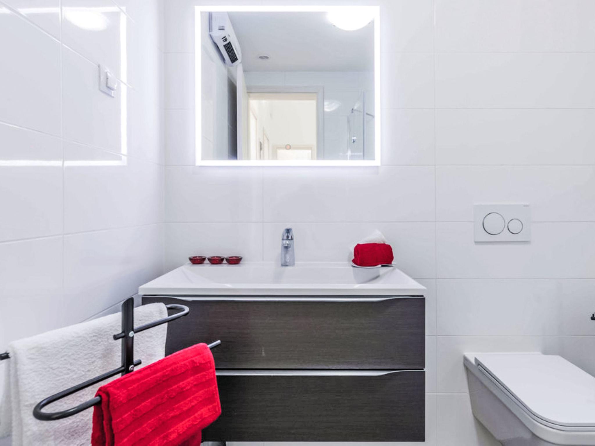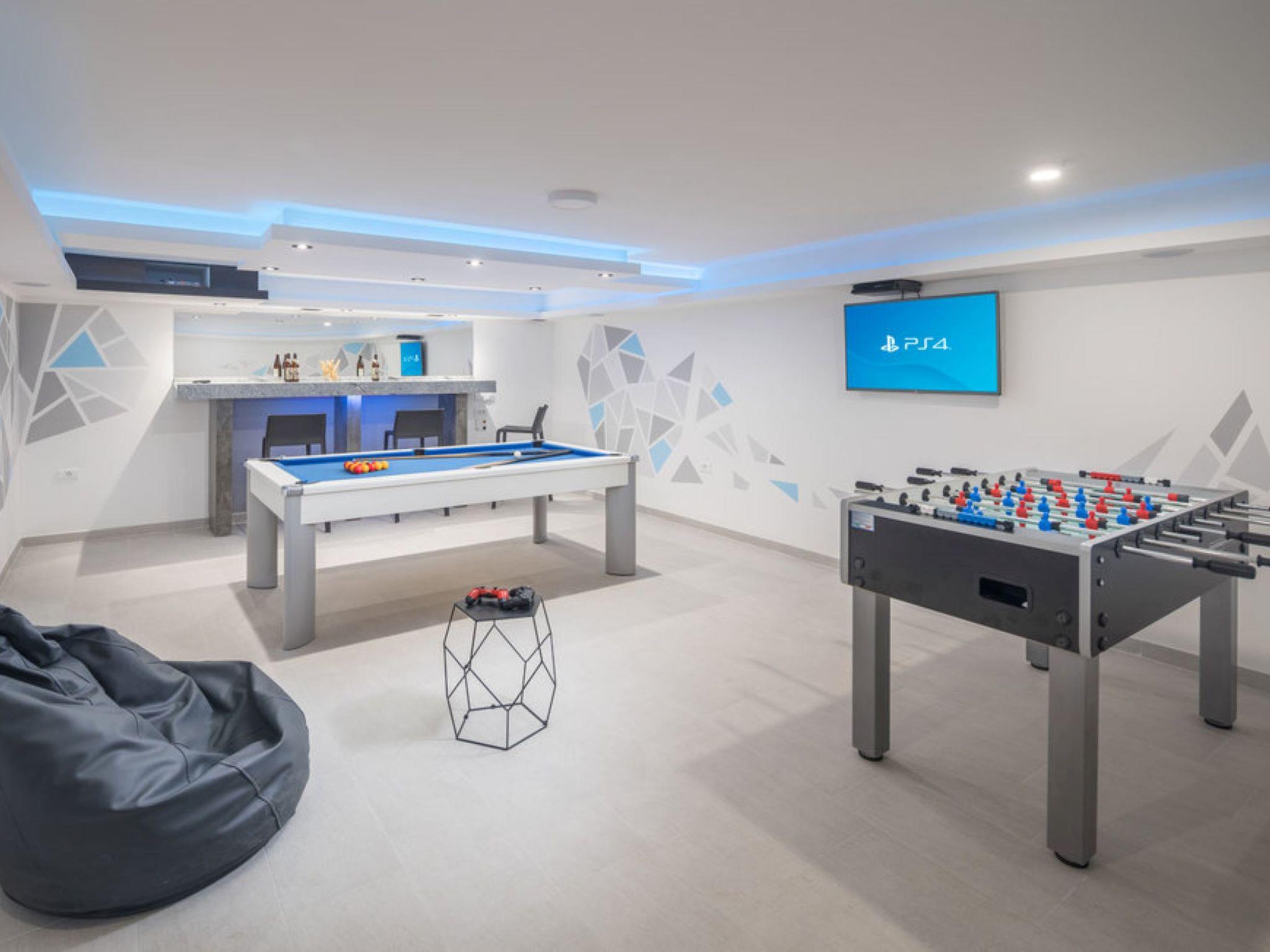 5-Zimmer-Villa 195 m2 auf 2 Stockwerken. Modern und luxuriös eingerichtet: Wohn-/Esszimmer mit Sat-TV (Flachbildschirm), Klimaanlage. Ausgang zur Terrasse, zum Schwimmbad. Offene Küche (Backofen, Geschirrspüler, 4 Glaskeramikplatten, Toaster, Wasserkocher, Mikrowelle, Tiefkühler, elektrische Kaffeemaschine). Dusche/WC. Obergeschoss: 1 Zimmer mit 1 franz. Bett (180 cm, Länge 200 cm), Dusche/WC und Sat-TV (Flachbildschirm), Klimaanlage. Ausgang zum Balkon. 1 Zimmer mit 1 franz. Bett (180 cm, Länge 200 cm), Dusche/WC und Sat-TV (Flachbildschirm), Klimaanlage. 1 Zimmer mit 1 franz. Bett (180 cm, Länge 200 cm), Klimaanlage. 1 Zimmer mit 2 Betten (90 cm, Länge 200 cm), Klimaanlage. Eingang mit Klimaanlage. Dusche/WC. Warmluftheizung. Balkon 4 m2. Terrassenmöbel, Balkonmöbel, Liegestühle. Schöne Sicht auf das Meer. Zur Verfügung: Internet (WLAN, gratis). Maximal 2 Haustiere/Hunde erlaubt.