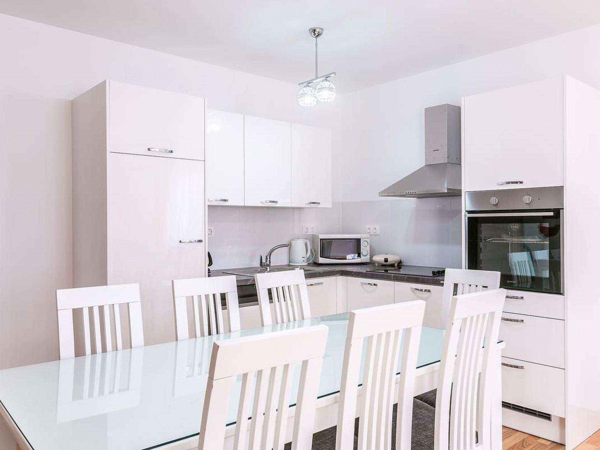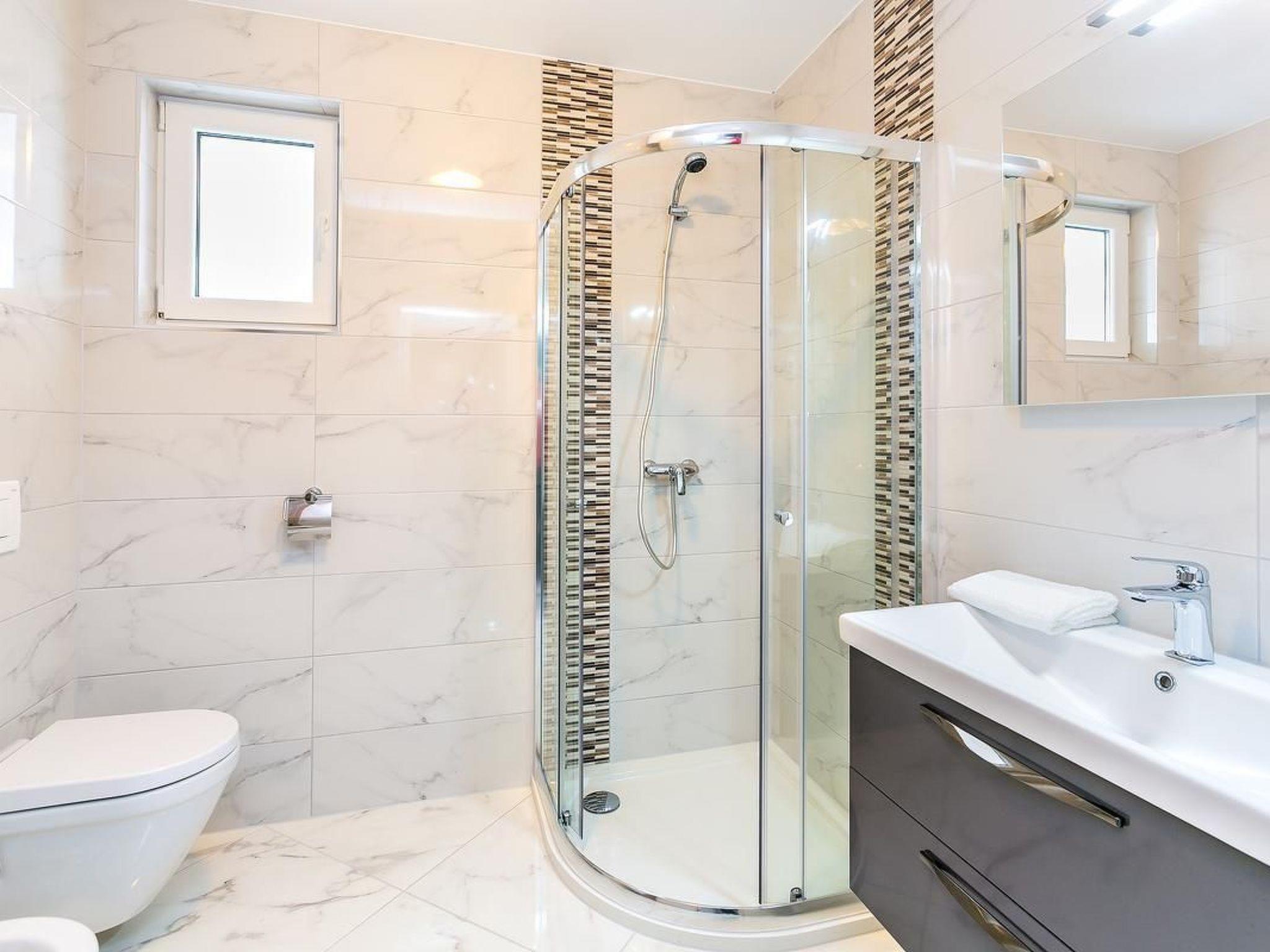 Das Apartment ist im 1. Stock und bietet Platz für 6-7 Personen. Das 100 m² große Apartment bietet drei Schlafzimmer (jedes mit eigenem Badezimmer), Wohnzimmer, Küche, Gästetoilette und Terrasse. Die Küche ist komplett eingerichtet und hat einen Kühlschrank, Elektroherd, Backofen, Geschirrspüler, Wasserkocher, eine Mikrowelle und Kaffeemaschine. Die Gäste haben auch eine Waschmaschine, SAT/TV, Internet per W-LAN und Grillmöglichkeit. Bettwäsche und Handtücher sind im Preis inklusive. Es gibt eine Klimaanlage im Wohnzimmer und eine im Flur. Parkplatz für zwei Autos steht zur Verfügung. Haustiere sind nicht erlaubt.