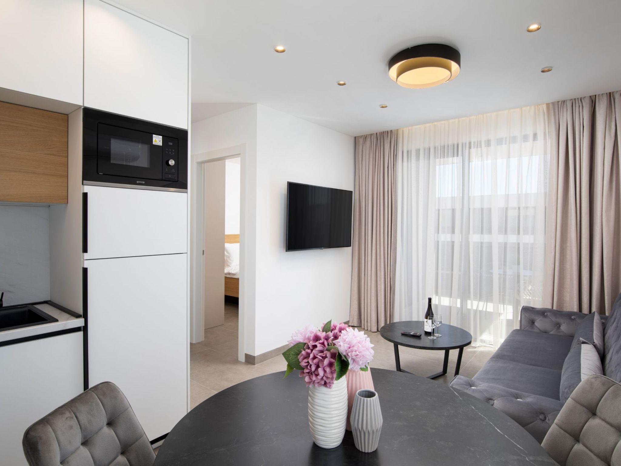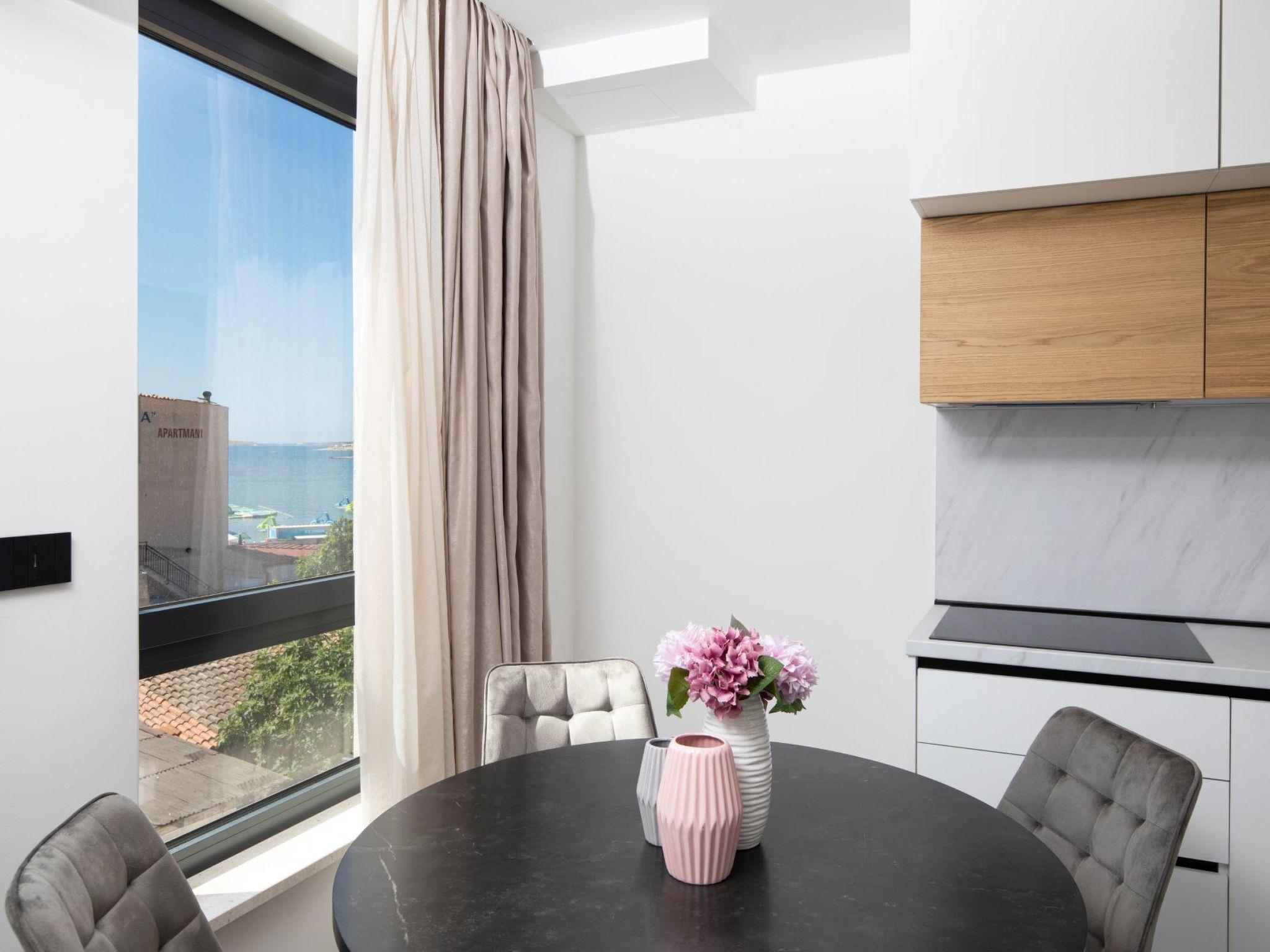 Direkt am Meer gelegen, nur 20m vom Sandstrand und 50m vom Zentrum entfernt, ist die neue elegante und stilvolle Wohnung "A'more Bijeca" die perfekte Wahl für Ihren nächsten Urlaub. Die 42m2 große Wohnung befindet sich im 2. Stock und ist für maximal 3 Personen geeignet. Es besteht aus: