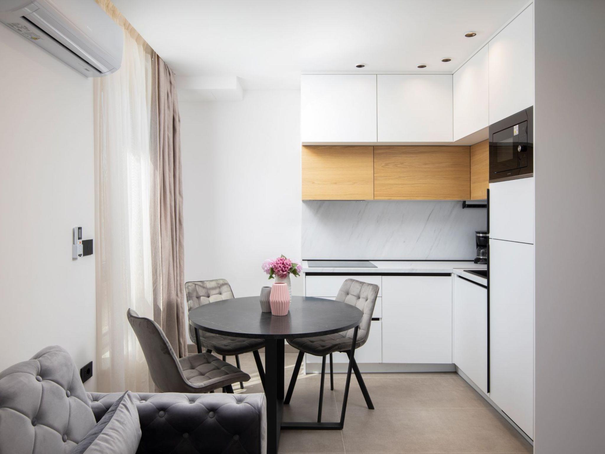 Ein Schlafzimmer mit Doppelbett (180x200), Wohnzimmer und Küche, Bad und Balkon. Eine Person hat die Möglichkeit, auf dem Schlafsofa im Wohnzimmer zu schlafen. Die Küche ist komplett ausgestattet mit Besteck und Kochgeschirr, Kühlschrank und Gefrierschrank, Geschirrspüler, Backofen und Mikrowelle (Combo), Wasserkocher und Filterkaffeemaschine. Alle Zimmer sind klimatisiert. Außerdem stehen den Gästen zur Verfügung: WiFi, Smart TV / Sat, Bettwäsche, Handtücher und ein Parkplatz. Die Gäste können eine gemeinsame Waschmaschine im Gebäude benutzen. Haustiere sind nicht erlaubt.