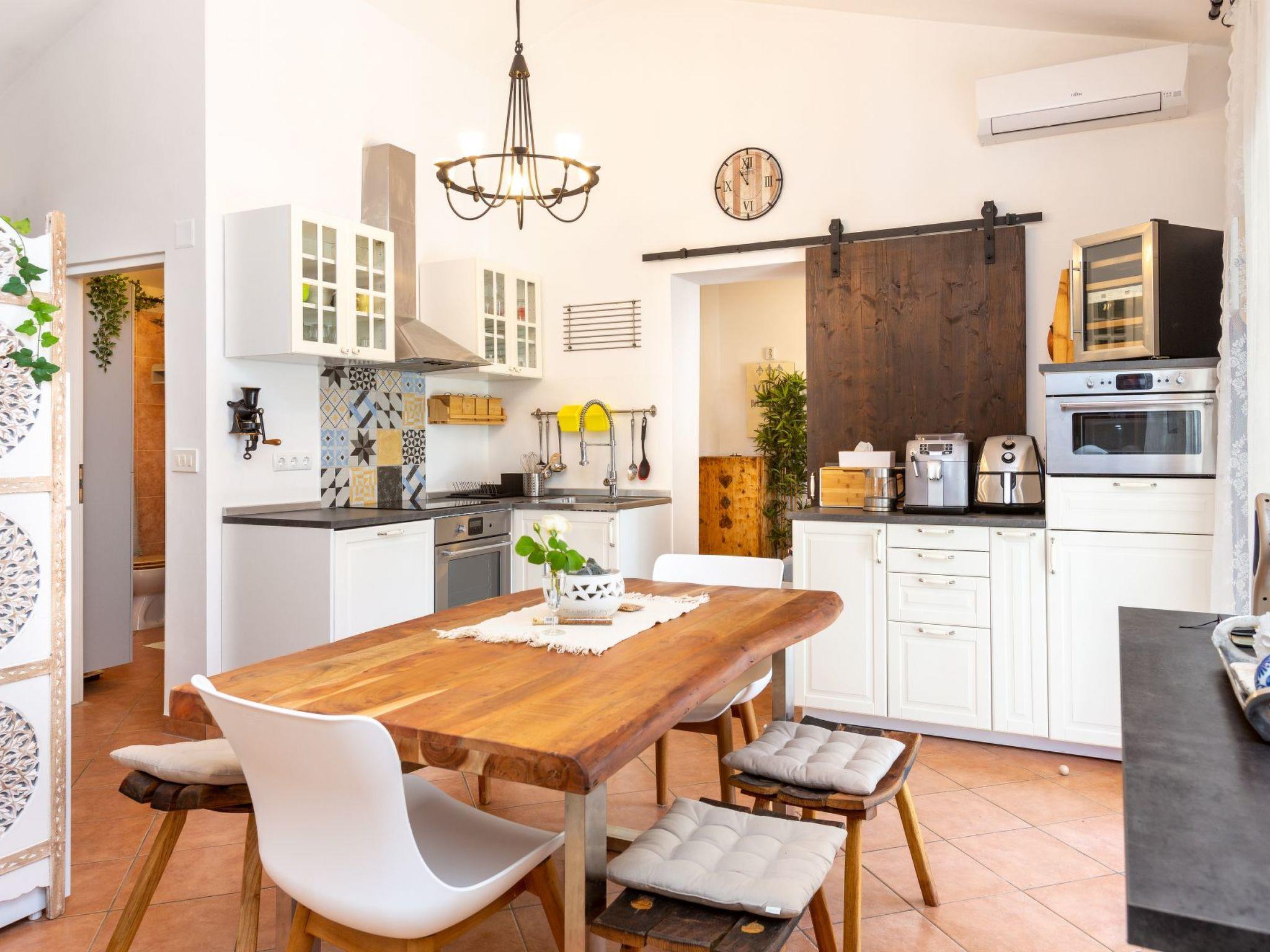 Im Inneren ist das Haus gut ausgestattet und bietet Platz für bis zu 6 Personen. Der Wohnbereich ist mit einer Klimaanlage ausgestattet, die an warmen Tagen das gesamte Haus kühlt und für ein angenehmes Raumklima sorgt. Zu den Unterhaltungsmöglichkeiten gehören ein TV-/SAT-System und Wi-Fi-Anschlüsse sowie praktische Annehmlichkeiten wie ein Schlafsofa für zusätzliche Schlafmöglichkeiten. Die Küche ist mit einer Reihe von Geräten ausgestattet, darunter ein Kühlschrank mit Gefrierfach, ein Elektroherd mit Backofen, eine Kaffeemaschine, ein Wasserkocher, eine Mikrowelle, ein Toaster sowie Besteck und Geschirr, um all Ihre kulinarischen Bedürfnisse zu befriedigen. Außerdem haben die Gäste exklusiven Zugang zu einer Waschmaschine, was Ihren Aufenthalt noch bequemer macht.