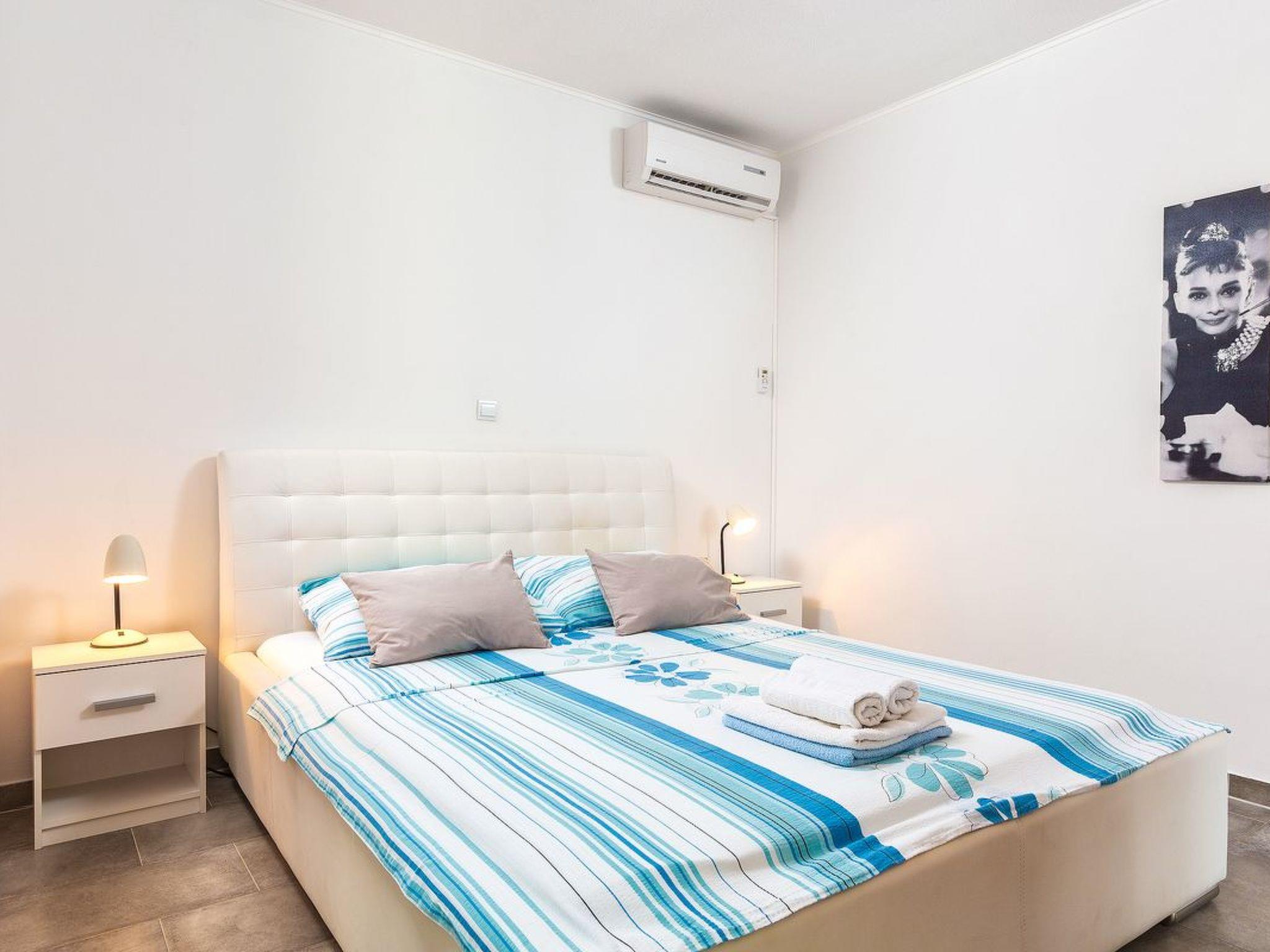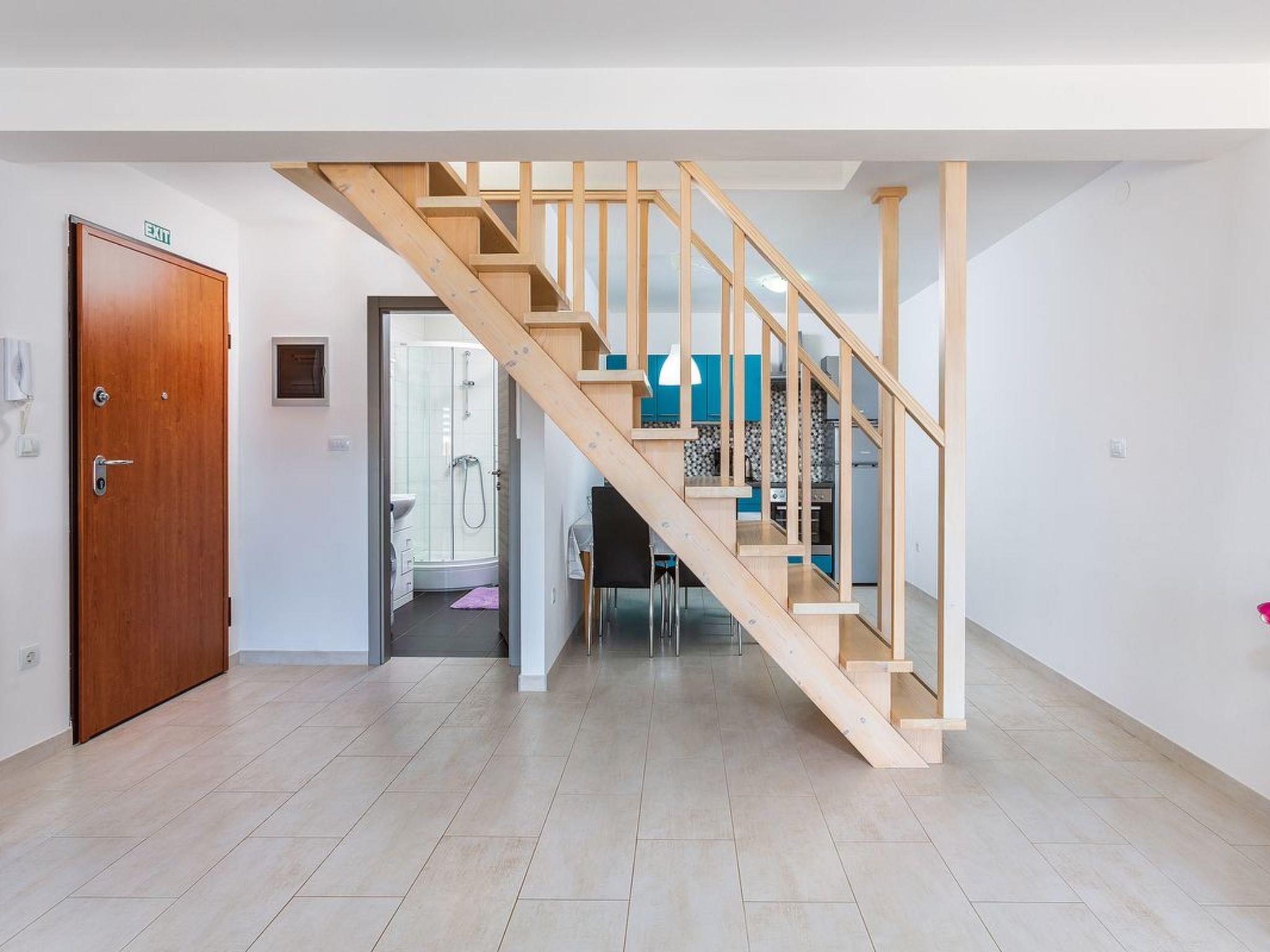 Im Inneren erstreckt sich die Wohnung über zwei wunderbare Ebenen, die allen Gästen ausreichend Platz und Privatsphäre bieten. Auf der unteren Ebene befindet sich ein gemütlicher, klimatisierter Wohnbereich mit einem Schlafsofa, der nach einem Tag voller Entdeckungen Entspannung verspricht. Die voll ausgestattete Küche lässt keine kulinarischen Wünsche offen und verfügt über einen Elektroherd, einen Backofen, einen Kühlschrank mit Gefrierfach und eine umfangreiche Sammlung von Geschirr. Auf dieser Ebene befindet sich auch ein praktisches Badezimmer und ein einladender Balkon, auf dem Sie Ihren Morgenkaffee genießen können. Auf der oberen Etage befindet sich das klimatisierte Schlafzimmer mit einem weiteren Badezimmer, das für einen komfortablen und erholsamen Schlaf sorgt. Eine Terrasse mit weitem Blick auf das Meer macht Ihre morgendliche oder abendliche Routine noch schöner.