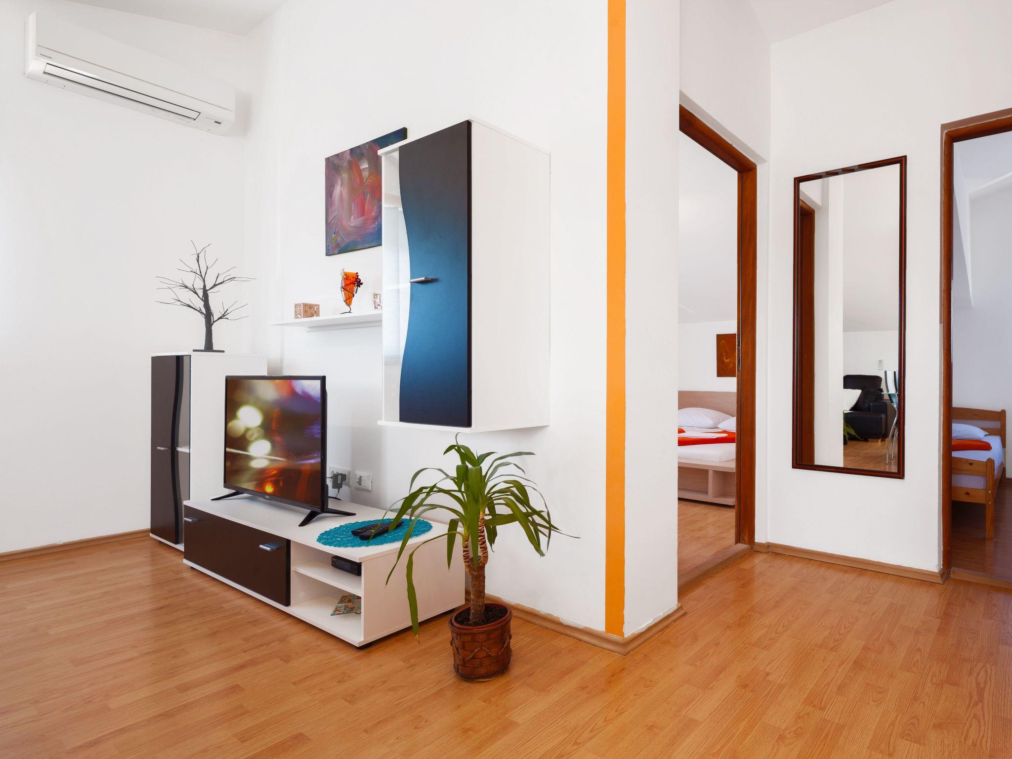 Einkaufsmöglichkeit und ein Restaurant gibt es in ca. 600 m, Medulin in 1,5 km, Fels-/Kiesstrand in zwei km.