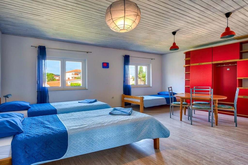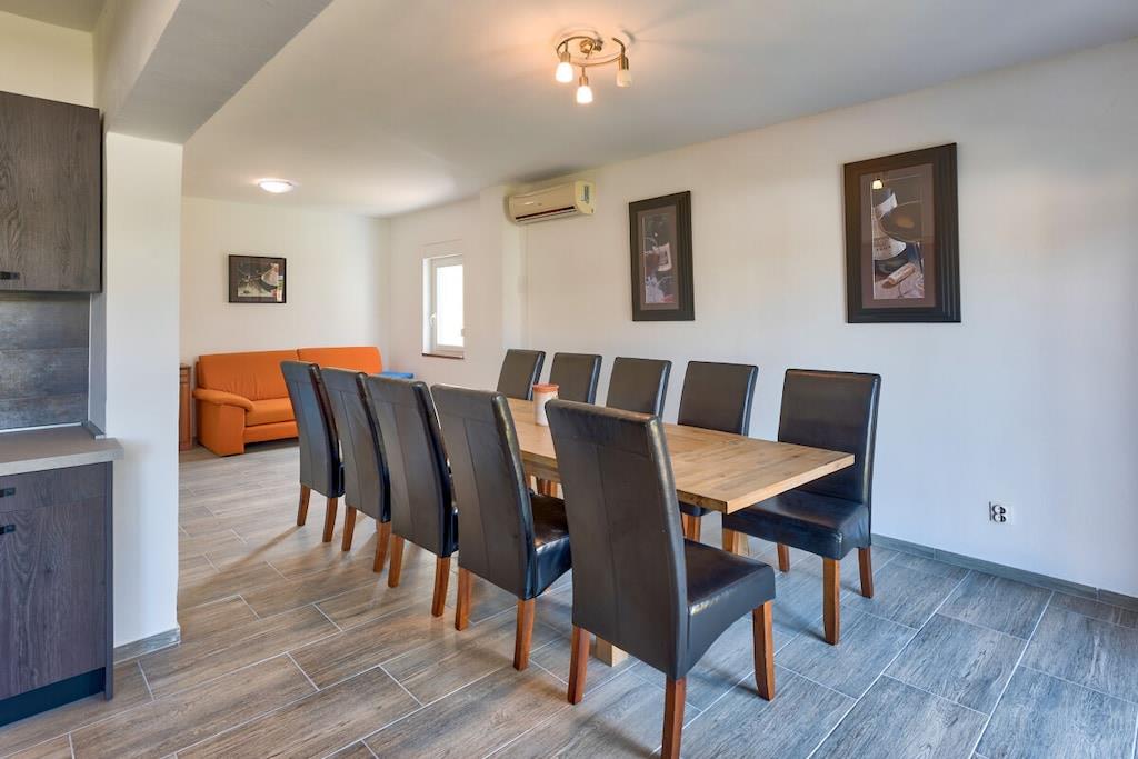 Ausgestattet mit Klimaanlage und kostenlosem WLAN. Großer Garten vor dem Parkplatz (3-4 Autos) und auf der Rückseite des Hauses Garten zum Grillen und Essen im Freien. 50 Meter zum Supermarkt, Bank und Cafe. Das Hotel liegt in der zweiten Reihe von der Hauptstraße in der Nähe von allem aber ruhig. House it self verfügt über viel Platz auf insgesamt 180 Quadratmetern und rund 700m2 Garten. Es verfügt über 3 Schlafzimmer mit Doppelbetten, 1 Schlafzimmer mit 2 Einzelbetten und 1 Schlafzimmer mit 3 Einzelbetten . Die Küche ist komplett ausgestattet und wird von einem Essbereich für 12Personen begleitet. Ihnen stehen 2 Badezimmer mit einem großen Wohnzimmer und zwei Balkonen zur Verfügung.