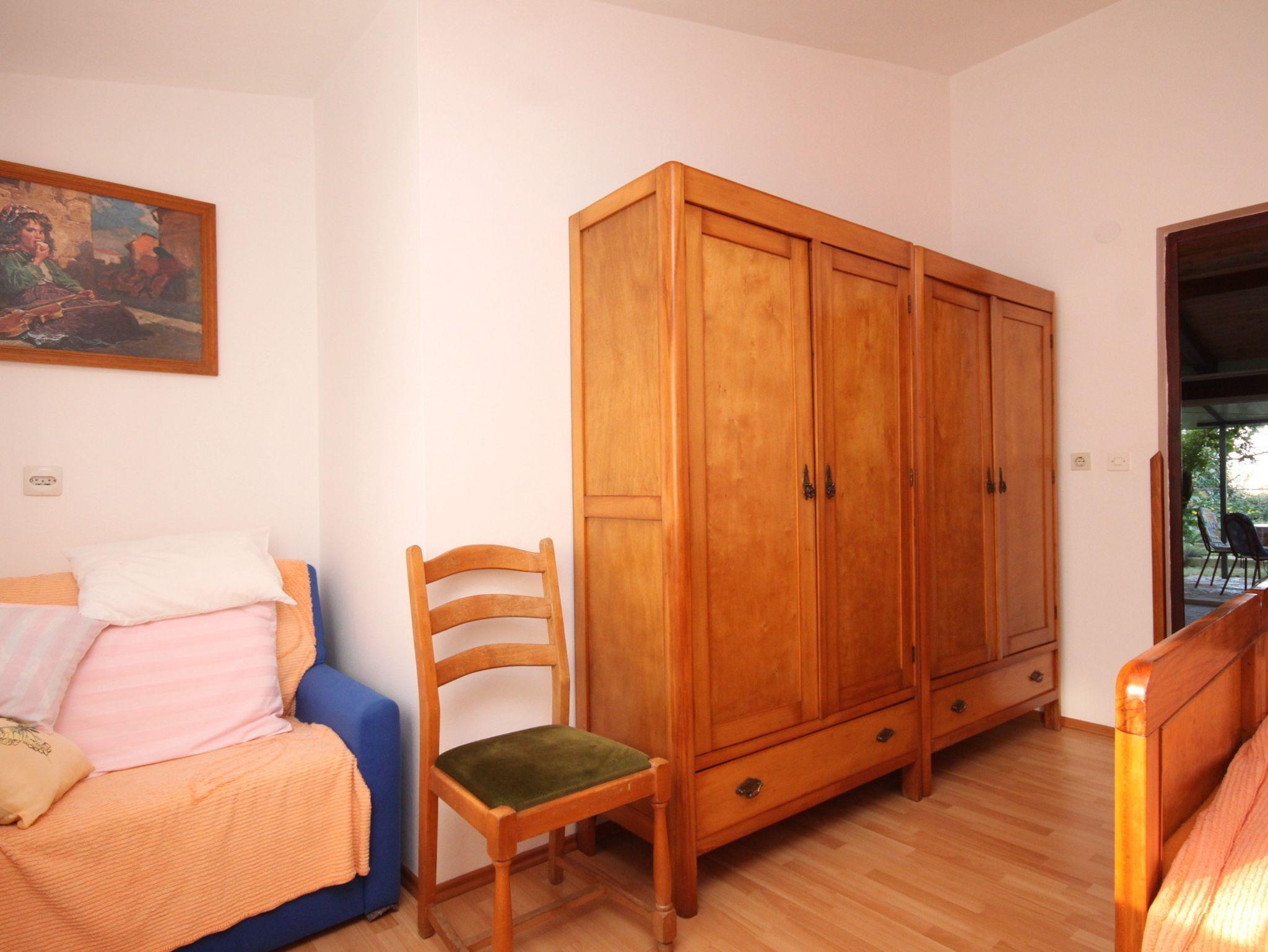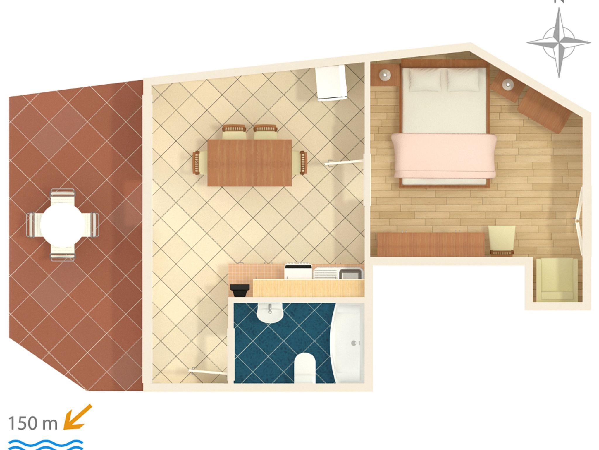Ferienwohnung bietet Platz für 2 Gäste. Die Betten sind in Schlafzimmern, die es 1 gibt, innerhalb einer Gesamtfläche von 33m2, angeordnet. Die Gäste haben eine eigene Terrasse zur Verfügung, auf der sie in warmen Sommernächten genießen können. Es ist erlaubt, Speisen auf dem Gemeinschafts-Grill vorzubereiten. In der Unterkunftseinheit besteht die Möglichkeit des Mitbringens von Haustieren gegen Aufpreis. IM PREIS INBEGRIFFEN: Kurtaxe, Endreinigung, Klimatisierung, Parkplatz, Internet, Fahrrad, Kinderbett, Bügeleisen, Bügelbrett, Föhn, tragbarer Grill. VERBINDLICHE ZUSÄTZLICHE KOSTEN: Aufzahlung für Kurzaufenthalte (prozentualer Zuschlag pro Nächtigungsanzahl: 30% - 1, 20% - 2, 10% - 3). UNVERBINDLICHE ZUSÄTZLICHE KOSTEN: Haustiere (3,00 € pro Nacht). Die Verfügbarkeit zusätzlicher Dienstleistungen in Ihrem reservierten Termin und die Preise derselben (falls nicht aufgeführt) müssen im Voraus überprüft werden. Zusätzliche Dienstleistungen die in der Zahlungsaufforderung nicht aufgeführt sind werden direkt beim Vermieter bezahlt, angenommen der Gast nutzt auch diese. Ermäßigung auf den Grundpreis: Gratistag 14=13 (bei einem Aufenthalt von 14 Tagen oder mehr erhalten Sie einen Gratistag für den Aufenthalt bis 31.12.26).