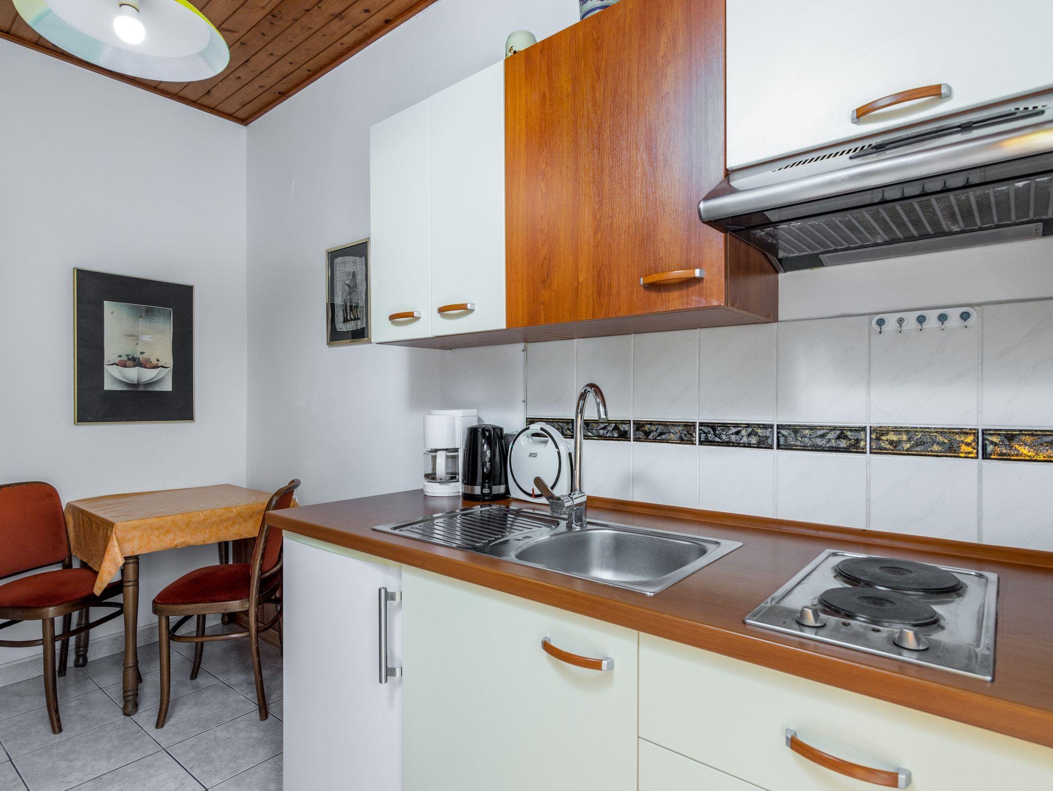 Ferienwohnung bietet Platz für 2 Gäste. Die Betten sind in Schlafzimmern, die es 1 gibt, innerhalb einer Gesamtfläche von 24m2, angeordnet. Die Gäste haben eine eigene Terrasse zur Verfügung, auf der sie in warmen Sommernächten genießen können. Es ist erlaubt, Speisen auf dem Gemeinschafts-Grill vorzubereiten. Unterkunftseinheit hat Räume, die von dem Rest der Einheit abgetrennt werden. IM PREIS INBEGRIFFEN: Kurtaxe, Endreinigung, Klimatisierung, Parkplatz, Internet, Kinderbett, Bügeleisen, Bügelbrett, Föhn. VERBINDLICHE ZUSÄTZLICHE KOSTEN: Aufzahlung für Kurzaufenthalte (prozentualer Zuschlag pro Nächtigungsanzahl: 30% - 1, 20% - 2, 10% - 3). UNVERBINDLICHE ZUSÄTZLICHE KOSTEN: Wäschewaschen (5,00 € Waschen), Bootsanlegeplatz (5,00 € pro Nacht). Die Verfügbarkeit zusätzlicher Dienstleistungen in Ihrem reservierten Termin und die Preise derselben (falls nicht aufgeführt) müssen im Voraus überprüft werden. Zusätzliche Dienstleistungen die in der Zahlungsaufforderung nicht aufgeführt sind werden direkt beim Vermieter bezahlt, angenommen der Gast nutzt auch diese. Ermäßigung auf den Grundpreis: Gratistag 21=19 (bei einem Aufenthalt von 21 Tagen oder mehr erhalten Sie 2 Gratistage für den Aufenthalt bis 31.12.26).