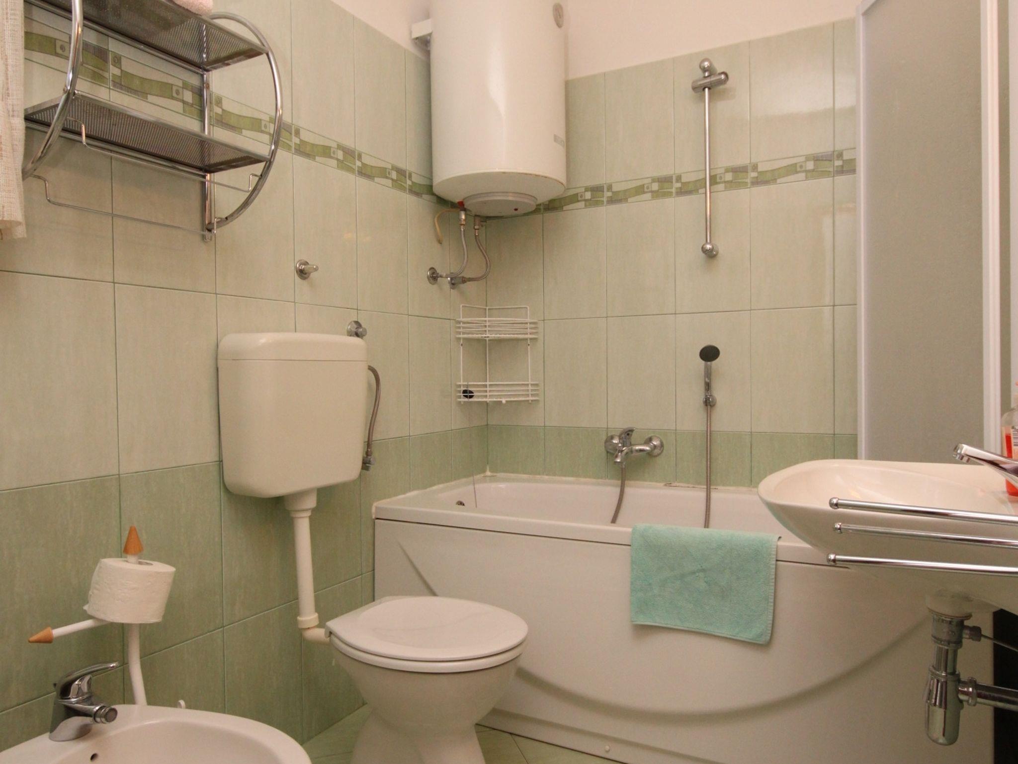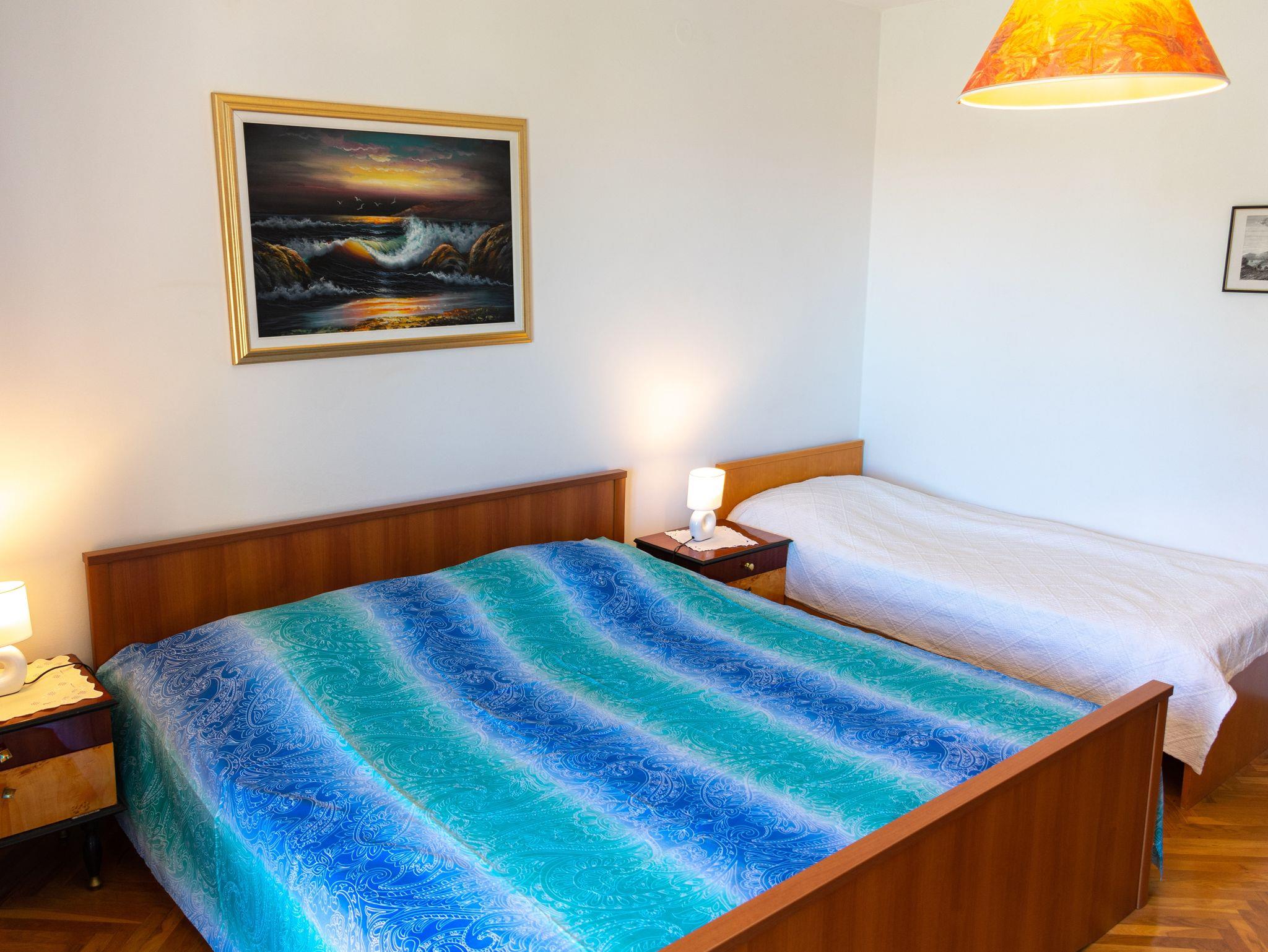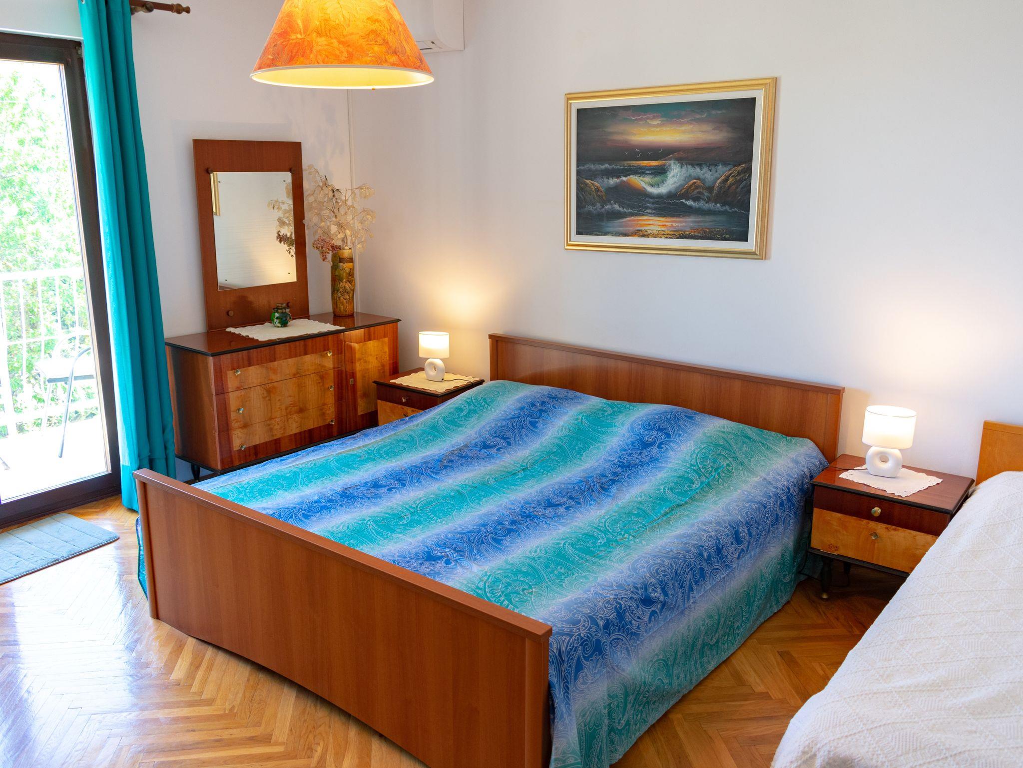 Ferienwohnung bietet Platz für 2 Gäste. Die Betten sind in Schlafzimmern, die es 1 gibt, innerhalb einer Gesamtfläche von 42m2, angeordnet. Die Gäste haben einen eigenen Balkon zur Verfügung, auf der sie in warmen Sommernächten genießen können. Das Apartment bietet Meerblick. Es ist erlaubt, Speisen auf dem Gemeinschafts-Grill vorzubereiten. IM PREIS INBEGRIFFEN: Kurtaxe, Endreinigung, Klimatisierung, Parkplatz, Internet, Fahrrad, Kinderbett, Bügeleisen, Bügelbrett, Föhn, tragbarer Grill. VERBINDLICHE ZUSÄTZLICHE KOSTEN: Aufzahlung für Kurzaufenthalte (prozentualer Zuschlag pro Nächtigungsanzahl: 30% - 1, 20% - 2, 10% - 3). Die Verfügbarkeit zusätzlicher Dienstleistungen in Ihrem reservierten Termin und die Preise derselben (falls nicht aufgeführt) müssen im Voraus überprüft werden. Zusätzliche Dienstleistungen die in der Zahlungsaufforderung nicht aufgeführt sind werden direkt beim Vermieter bezahlt, angenommen der Gast nutzt auch diese. Ermäßigung auf den Grundpreis: Gratistag 14=13 (bei einem Aufenthalt von 14 Tagen oder mehr erhalten Sie einen Gratistag für den Aufenthalt bis 31.12.26).