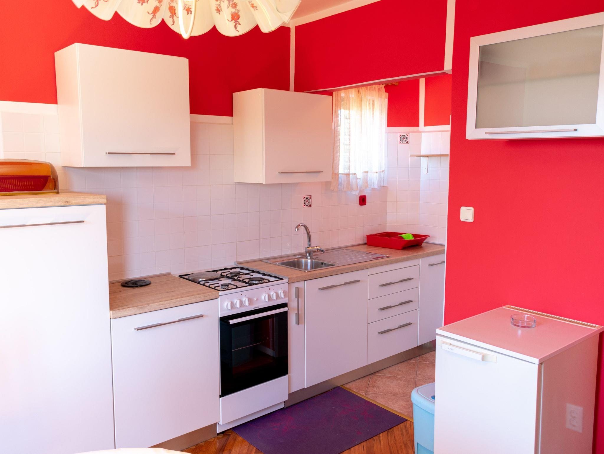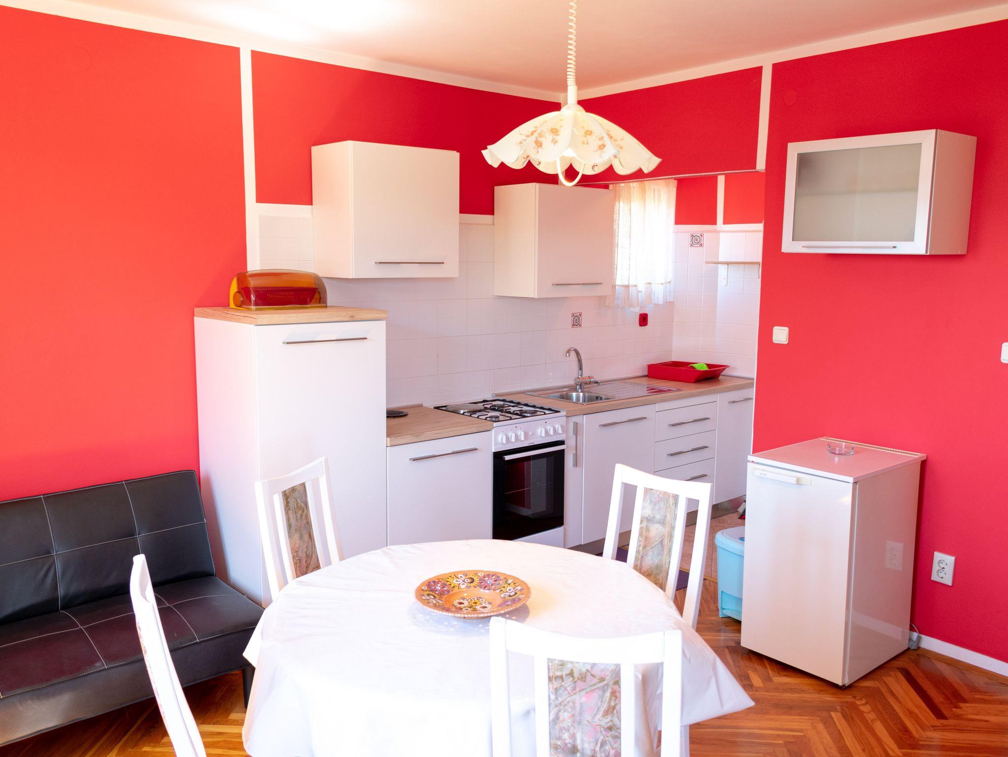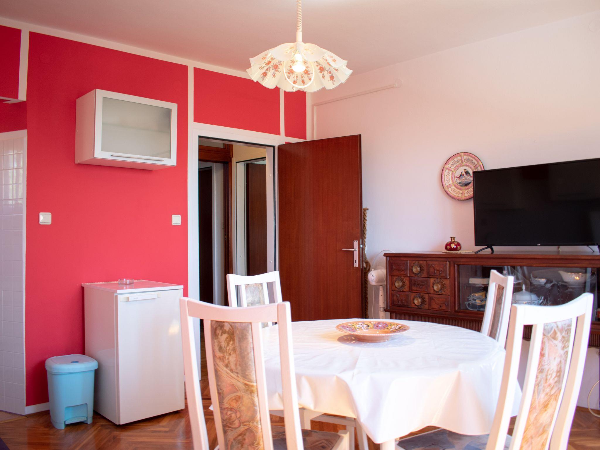 Ferienwohnung bietet Platz für 2 Gäste. Die Betten sind in Schlafzimmern, die es 1 gibt, innerhalb einer Gesamtfläche von 42m2, angeordnet. Die Gäste haben einen eigenen Balkon zur Verfügung, auf der sie in warmen Sommernächten genießen können. Das Apartment bietet Meerblick. Es ist erlaubt, Speisen auf dem Gemeinschafts-Grill vorzubereiten. IM PREIS INBEGRIFFEN: Kurtaxe, Endreinigung, Klimatisierung, Parkplatz, Internet, Fahrrad, Kinderbett, Bügeleisen, Bügelbrett, Föhn, tragbarer Grill. VERBINDLICHE ZUSÄTZLICHE KOSTEN: Aufzahlung für Kurzaufenthalte (prozentualer Zuschlag pro Nächtigungsanzahl: 30% - 1, 20% - 2, 10% - 3). Die Verfügbarkeit zusätzlicher Dienstleistungen in Ihrem reservierten Termin und die Preise derselben (falls nicht aufgeführt) müssen im Voraus überprüft werden. Zusätzliche Dienstleistungen die in der Zahlungsaufforderung nicht aufgeführt sind werden direkt beim Vermieter bezahlt, angenommen der Gast nutzt auch diese. Ermäßigung auf den Grundpreis: Gratistag 14=13 (bei einem Aufenthalt von 14 Tagen oder mehr erhalten Sie einen Gratistag für den Aufenthalt bis 31.12.26).