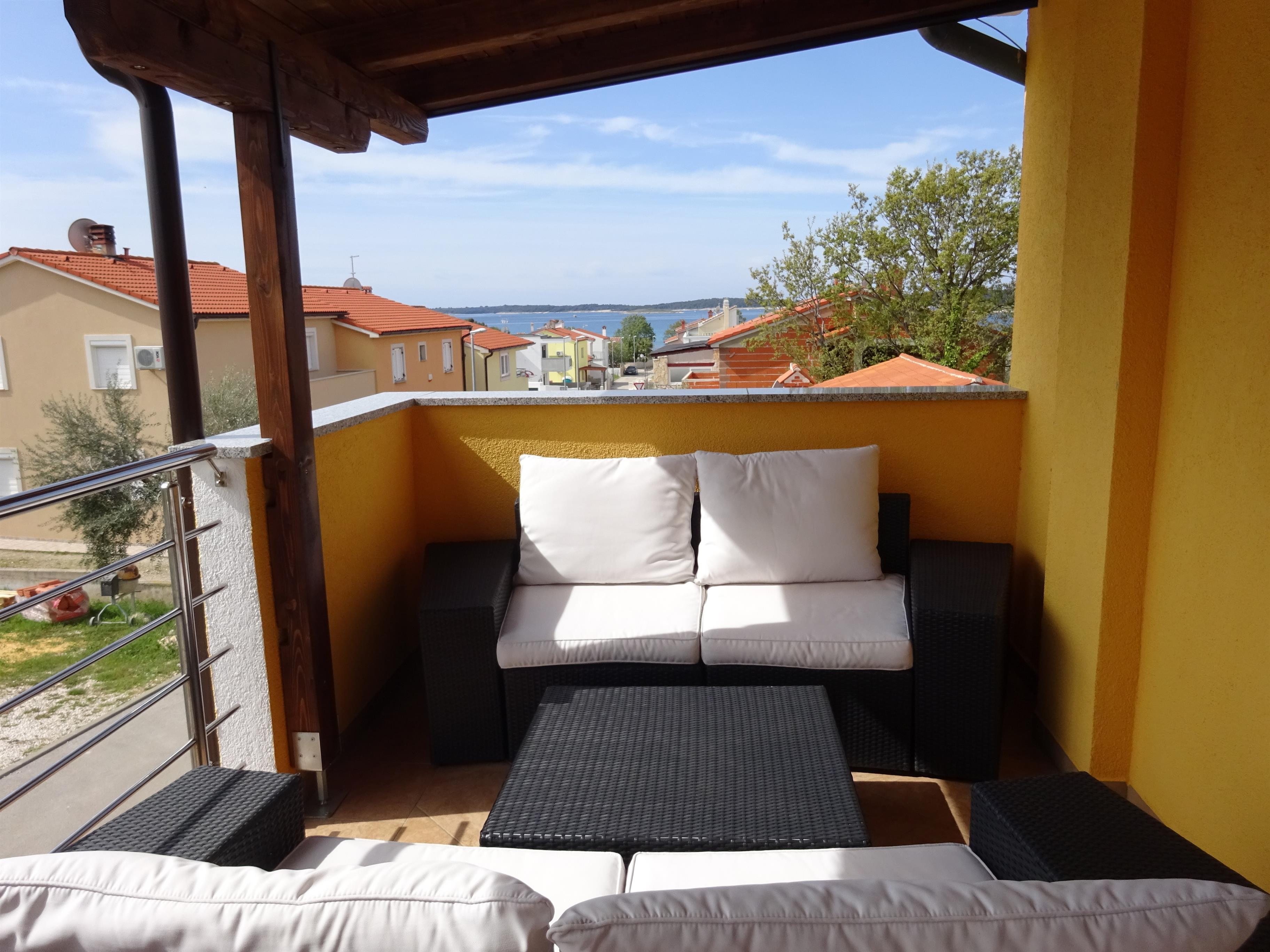 Das liebenswerte Apartment ist ca. 60 m² groß und verfügt über einen ca. 20m² großen überdachten Balkon, von dem Sie einen herrlichen Blick aufs Meer haben. Das Apartment befindet sich in Medulin, im Ortsbereich Posesi.