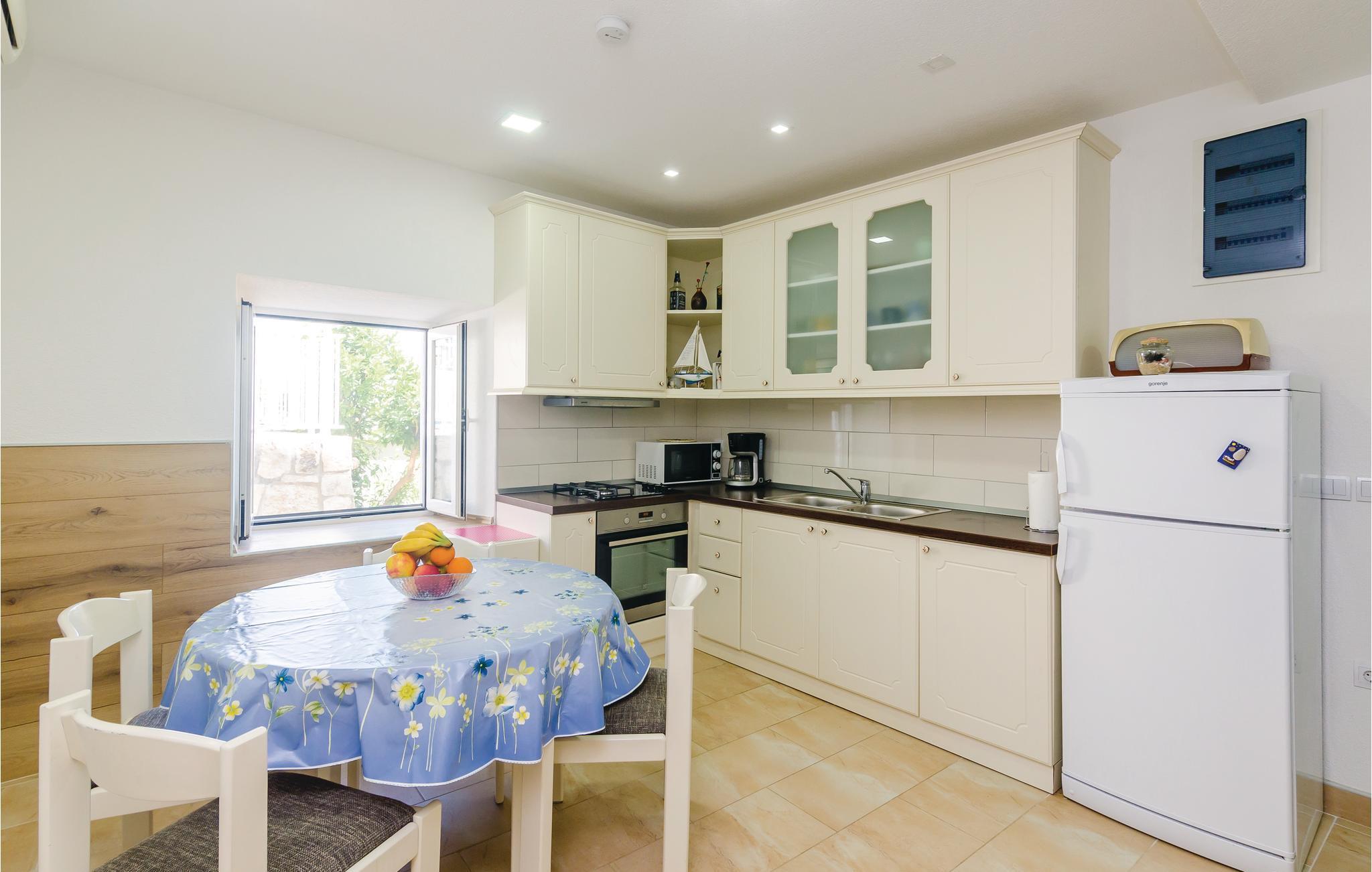 Diese einfach eingerichtete Doppelhaushälfte in Babino Polje, auf der Insel Mljet, ist der richtige Ort für einen erholsamen Urlaub. Auf seinen zwei Etagen bietet es viel Platz für eine größere Familien. Zur Verfügung stehen zwei Terrassen, die überdachte Terrasse hat einen Grill und die andere beherbergt den Swimmingpool. Erleben Sie die Schönheit der unberührten Natur Nationalparks Mljet auf der Insel. Zur Insel Mljet kommen Sie mit der Fähre von Prapratno auf der Halbinsel Peljesac. Eine schnelle Überfahrt ist auch von Dubrovnik möglich. Zwischen dem Haus und der Poolterrasse verläuft die Zufahrt zum Nachbarhaus.