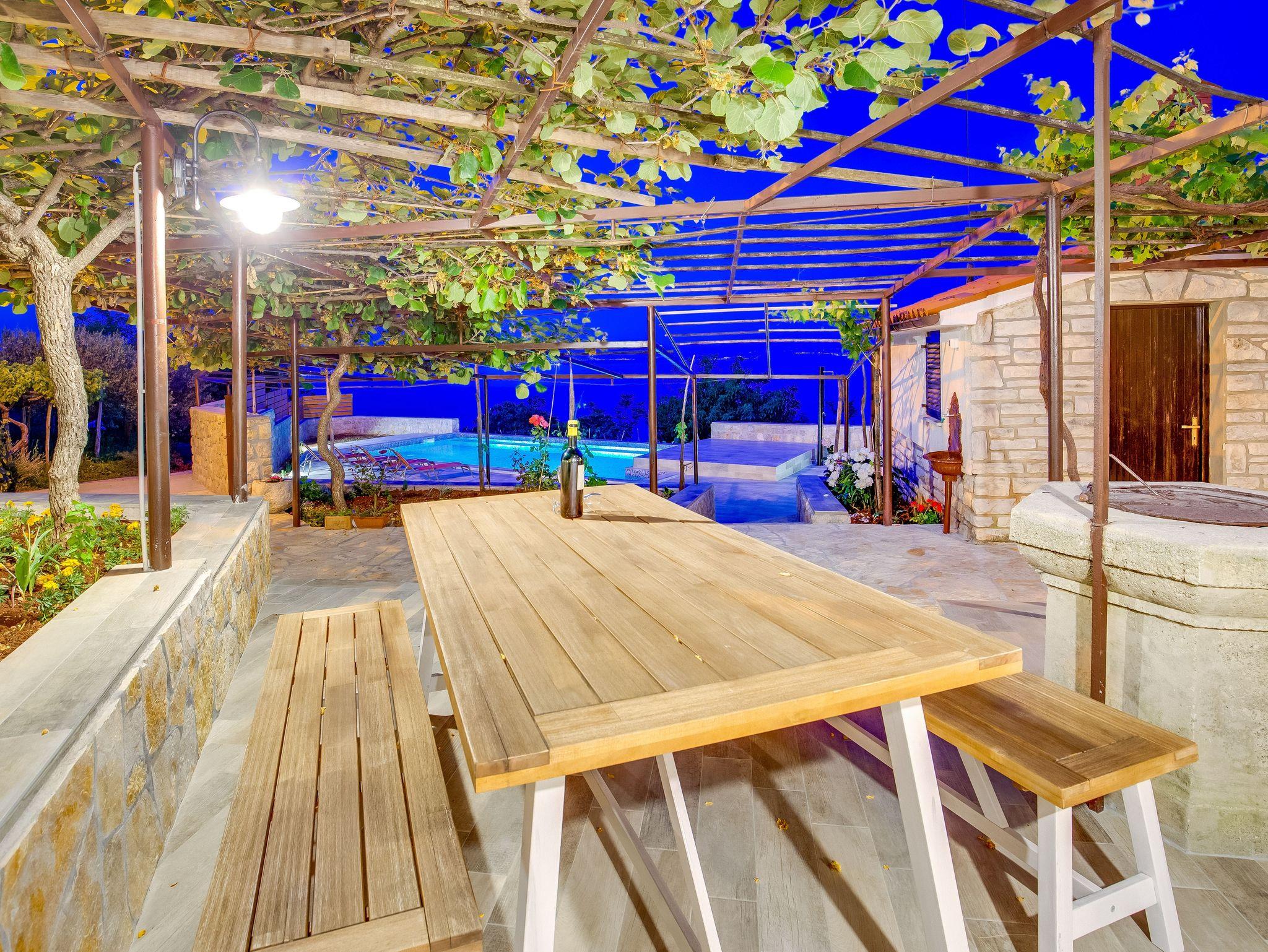 Haus bietet Platz für 5 Gäste. Die Betten sind in Schlafzimmern, die es 3 gibt, innerhalb einer Gesamtfläche von 73m2, angeordnet. Die Gäste haben eine eigene Terrasse zur Verfügung, auf der sie in warmen Sommernächten genießen können. Das Haus bietet Meerblick. Für vollen Genuss und Entspannung gibt es einen privaten Grill für Gäste dieser Unterkunft. Während ihres Aufenthalts können sich Gäste im privaten Schwimmbad entspannen. In der Unterkunftseinheit besteht die Möglichkeit des Mitbringens von Haustieren gegen Aufpreis. In der gebuchten Unterkunftseinheit zahlt man am Ort ein Depositum ( der Preis ist an der Internetseite angeführt ). IM PREIS INBEGRIFFEN: Kurtaxe, Endreinigung, Klimatisierung, Zentralheizung, Pool, Parkplatz, Internet, Kinderbett, Bügeleisen, Föhn. VERBINDLICHE ZUSÄTZLICHE KOSTEN: Kaution (200,00 € Einmalzahlung). UNVERBINDLICHE ZUSÄTZLICHE KOSTEN: Wäschewaschen (15,00 € Waschen), Haustiere (10,00 € pro Nacht). Die Verfügbarkeit zusätzlicher Dienstleistungen in Ihrem reservierten Termin und die Preise derselben (falls nicht aufgeführt) müssen im Voraus überprüft werden. Zusätzliche Dienstleistungen die in der Zahlungsaufforderung nicht aufgeführt sind werden direkt beim Vermieter bezahlt, angenommen der Gast nutzt auch diese. Ermäßigung auf den Grundpreis: Gratistag 21=19 (bei einem Aufenthalt von 21 Tagen oder mehr erhalten Sie 2 Gratistage für den Aufenthalt bis 31.12.26).