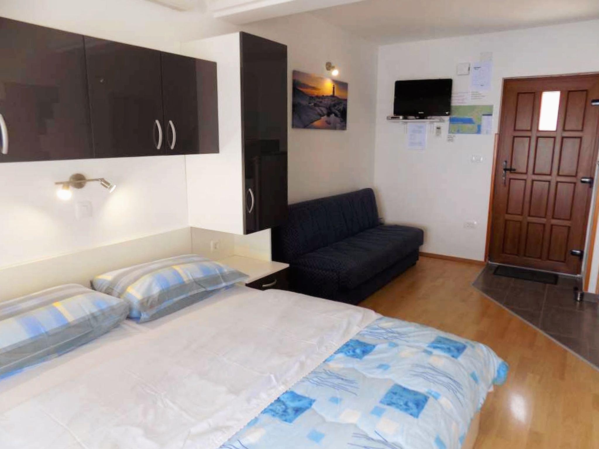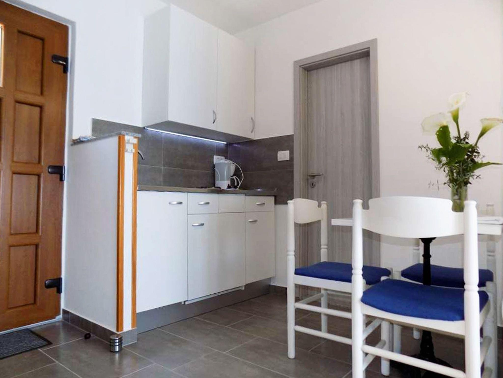 Studio bietet Platz für 2 Gäste. Die Betten sind in Schlafzimmern, die es 1 gibt, innerhalb einer Gesamtfläche von 21m2, angeordnet. Die Gäste haben eine eigene Terrasse zur Verfügung, auf der sie in warmen Sommernächten genießen können. Das Studio-Apartment bietet Meerblick. Es ist erlaubt, Speisen auf dem Gemeinschafts-Grill vorzubereiten. IM PREIS INBEGRIFFEN: Kurtaxe, Endreinigung, Parkplatz, Internet, Bügeleisen, Bügelbrett, Föhn, tragbarer Grill. VERBINDLICHE ZUSÄTZLICHE KOSTEN: Aufzahlung für Kurzaufenthalte (prozentualer Zuschlag pro Nächtigungsanzahl: 30% - 1, 20% - 2, 10% - 3). UNVERBINDLICHE ZUSÄTZLICHE KOSTEN: Klimatisierung (7,00 € pro Nacht). Die Verfügbarkeit zusätzlicher Dienstleistungen in Ihrem reservierten Termin und die Preise derselben (falls nicht aufgeführt) müssen im Voraus überprüft werden. Zusätzliche Dienstleistungen die in der Zahlungsaufforderung nicht aufgeführt sind werden direkt beim Vermieter bezahlt, angenommen der Gast nutzt auch diese.